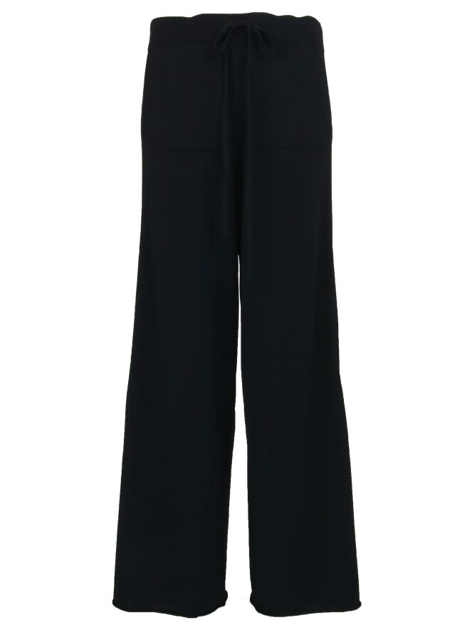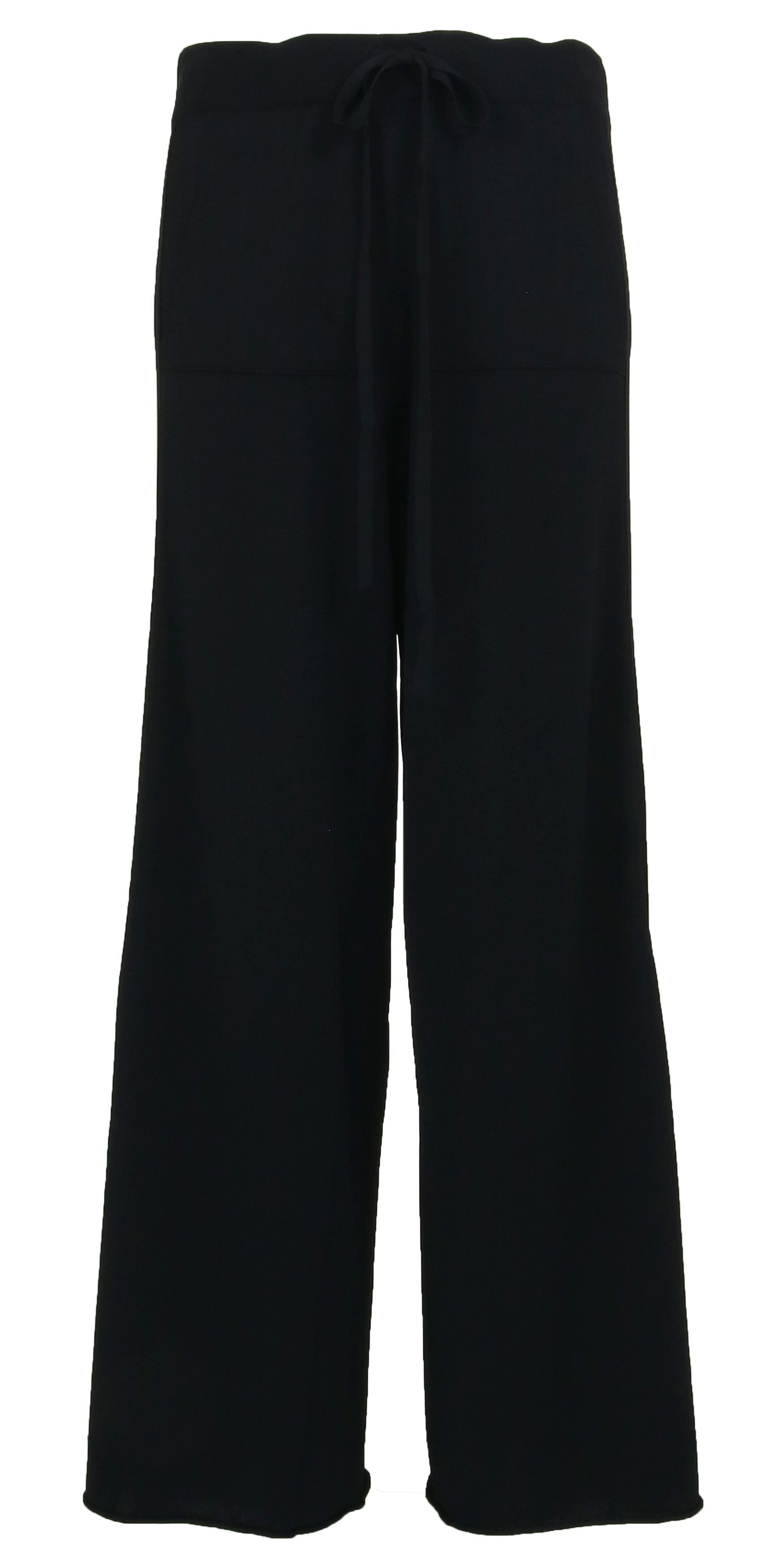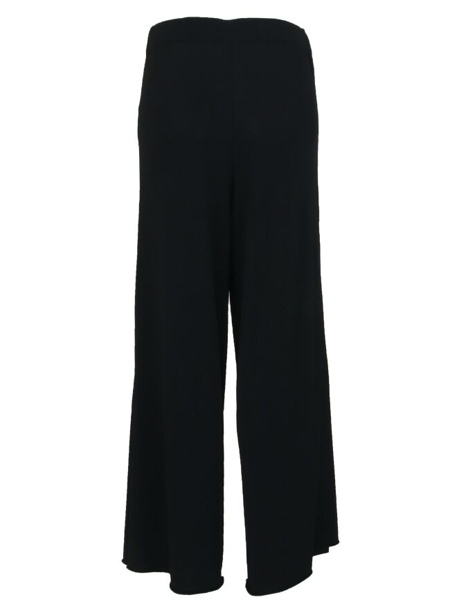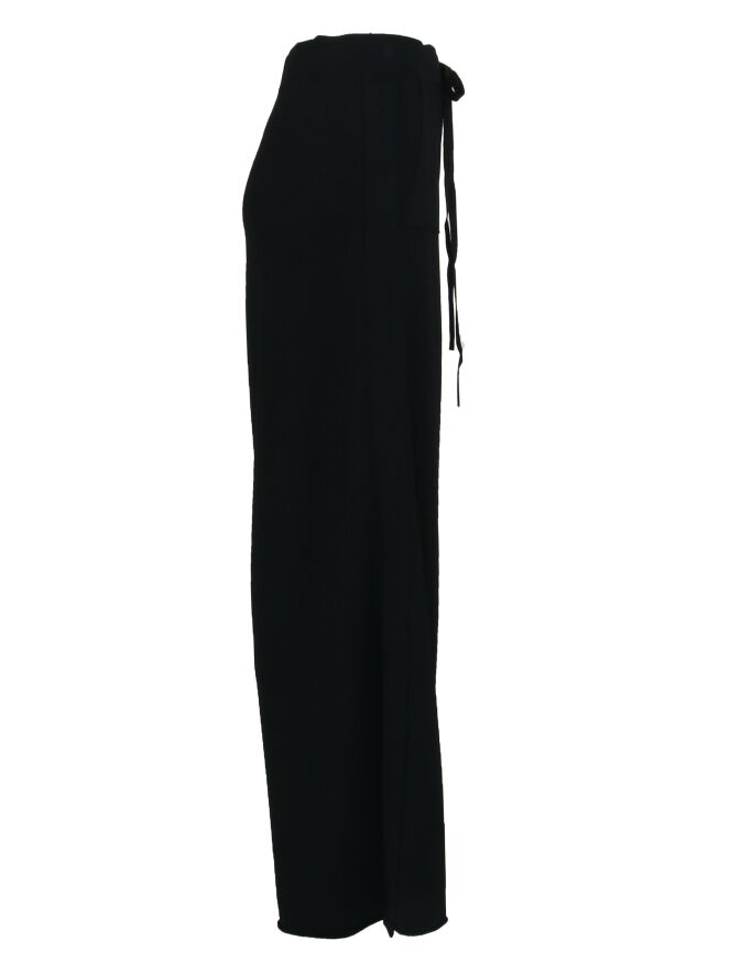 Pantalon large de la marque Annette Görtz, de couleur noire, équipé à la taille d'un large élastique d'où descend un ruban noir sur le devant. Il dispose de 2 poches sous la taille et d’un large passepoil côtelé sur les côtés. Lavage à 30 degrés.
