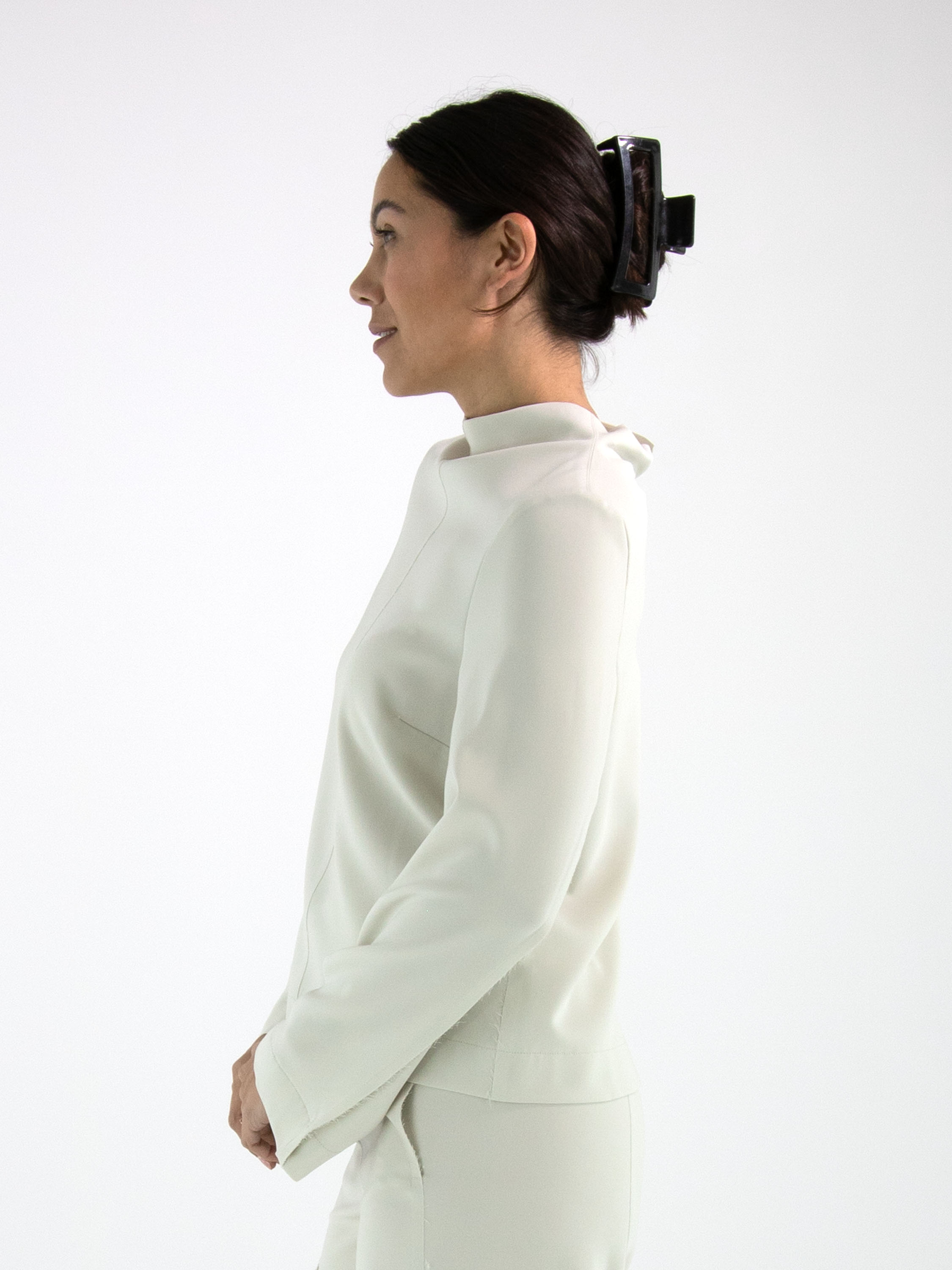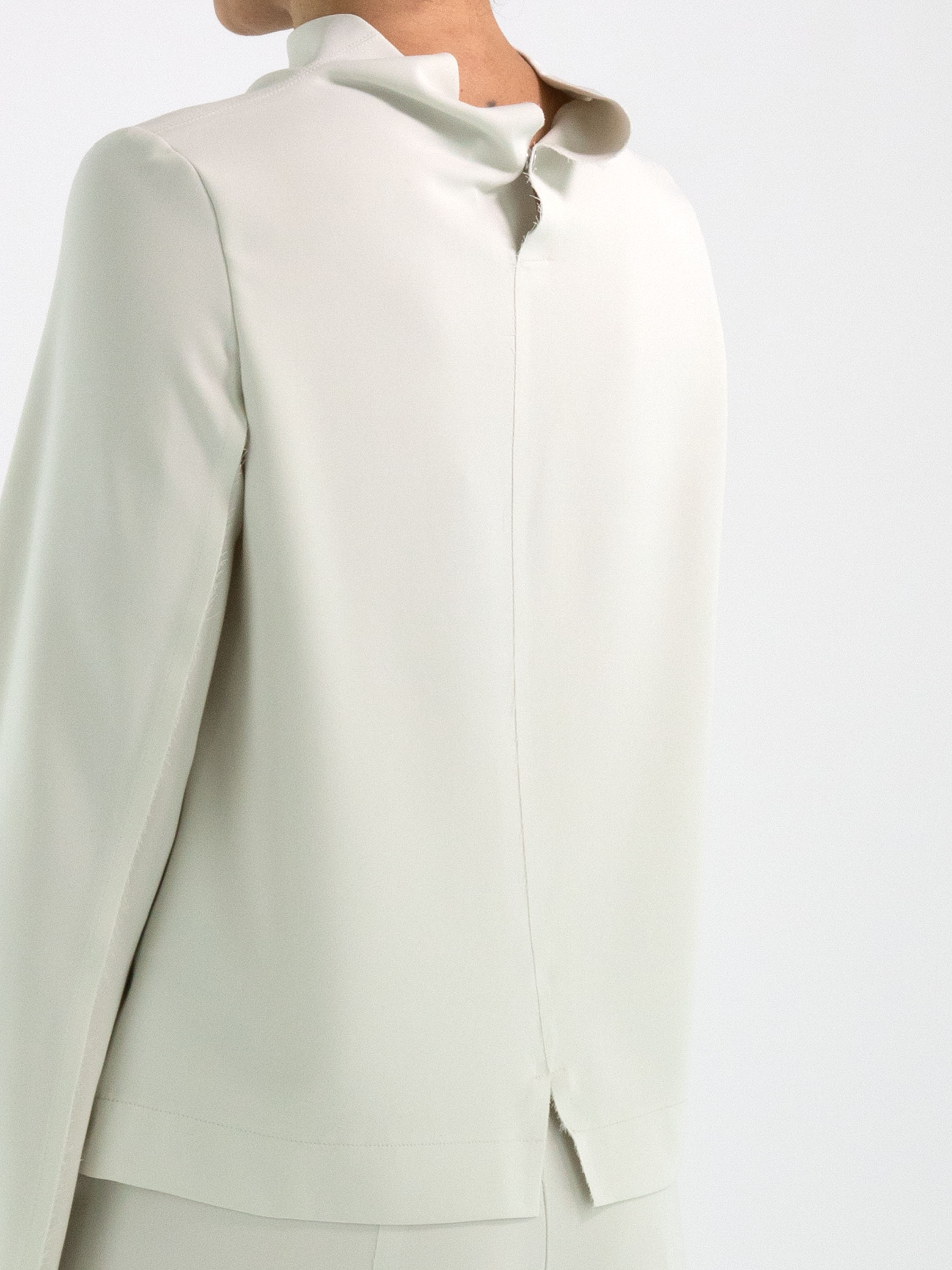 Un shirt d’Annette Görtz en coloris kit. Depuis le centre du col montant, une couture inversée décorative descend à l’avant comme à l’arrière, apportant un détail moderne et raffiné. Les bords de ces coutures sont légèrement effilochés, ajoutant une touche décontractée. Ce shirt exclusif peut être lavé à la main.