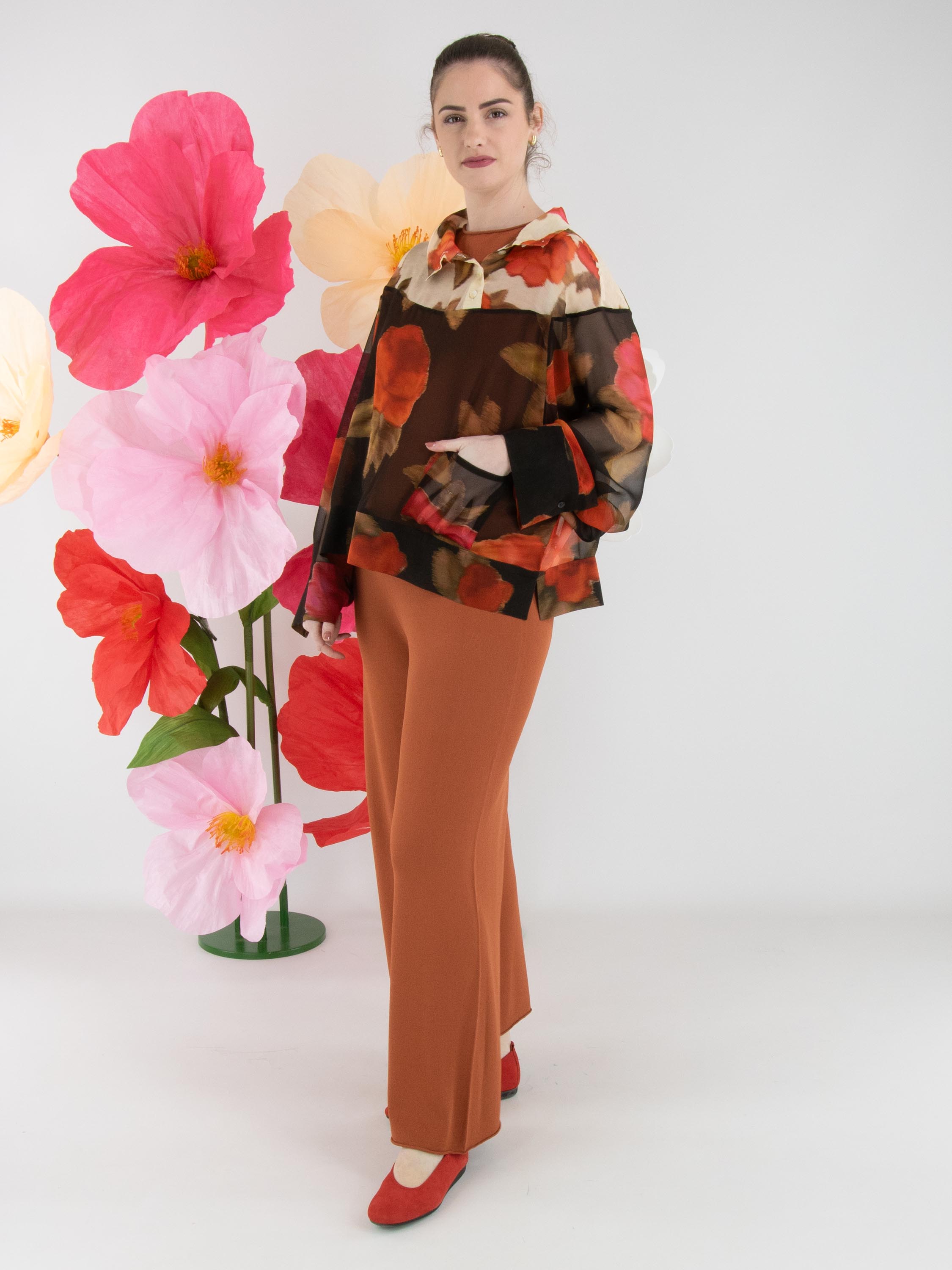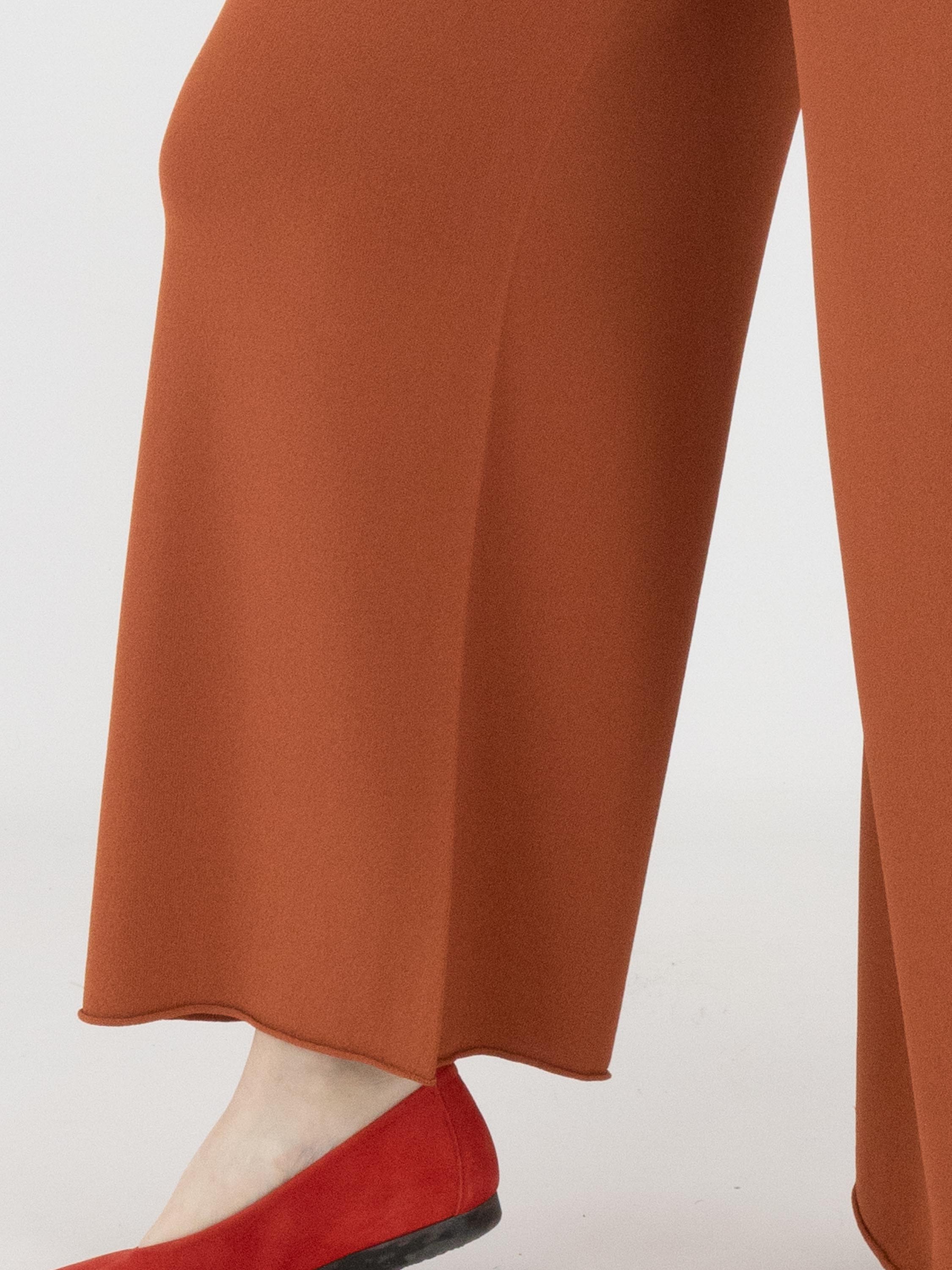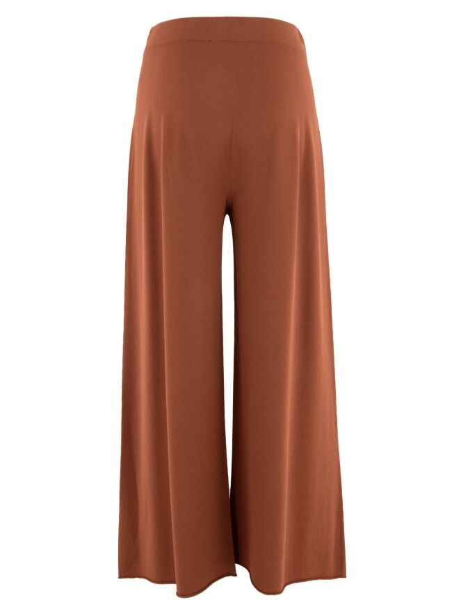 Un pantalon en maille fine à coupe large d’Annette Görtz dans une teinte brun rouille. La taille est dotée d’une ceinture élastique. Le bas des jambes est terminé par un bord roulotté. Ce pantalon peut être lavé à 30 degrés.