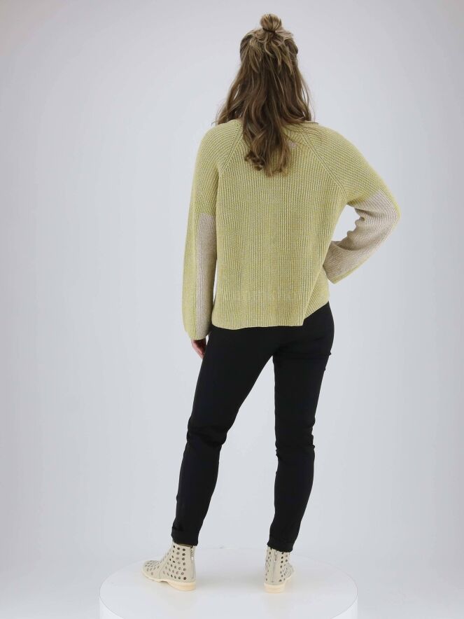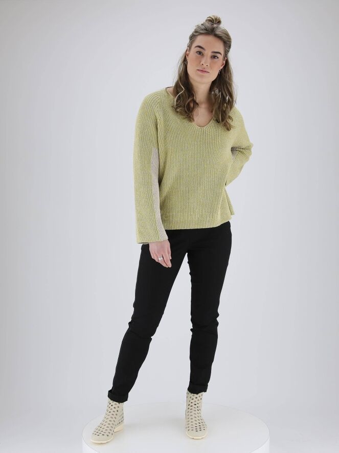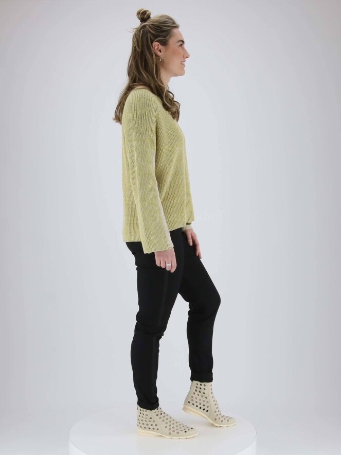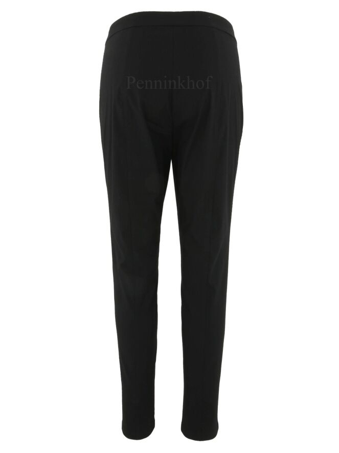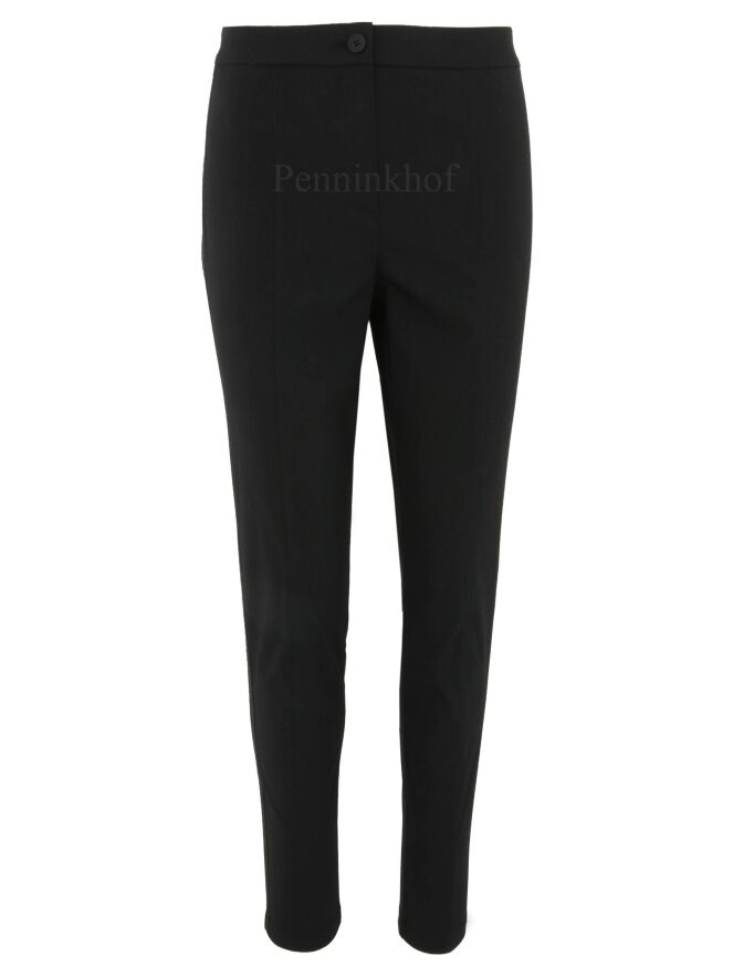 Pantalon de la marque Annette Görtz, de couleur noire. Une fine bande côtelée de la même couleur que le pantalon orne les côtés extérieurs des jambes. Lavage à 30 degrés.