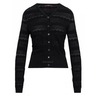 Robe d'Annette Görtz de couleur noire. Sur les côtés, le tissu est ouvert, avec en dessous un tissu noir profond qui apparaît également au bas de la robe. La robe a un col rond et peut être lavée à la main.