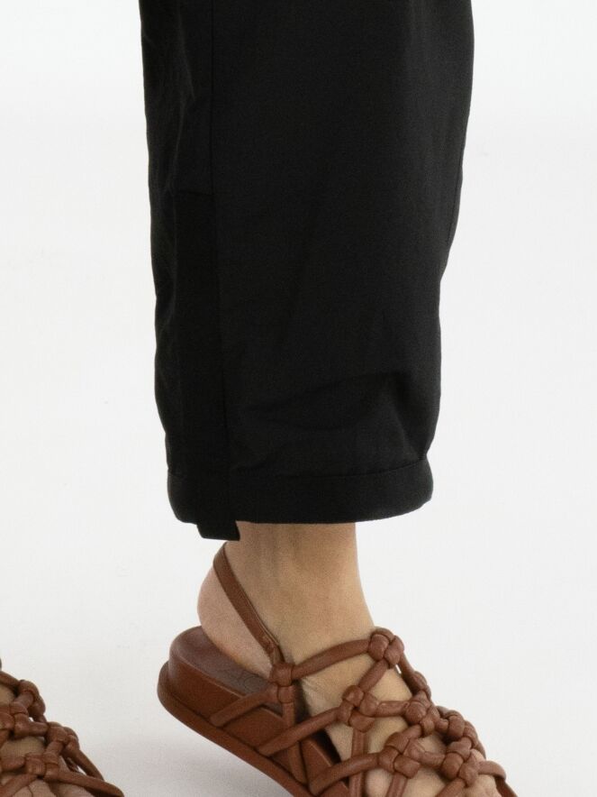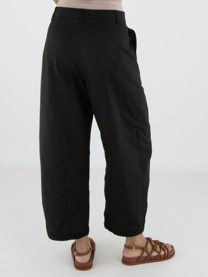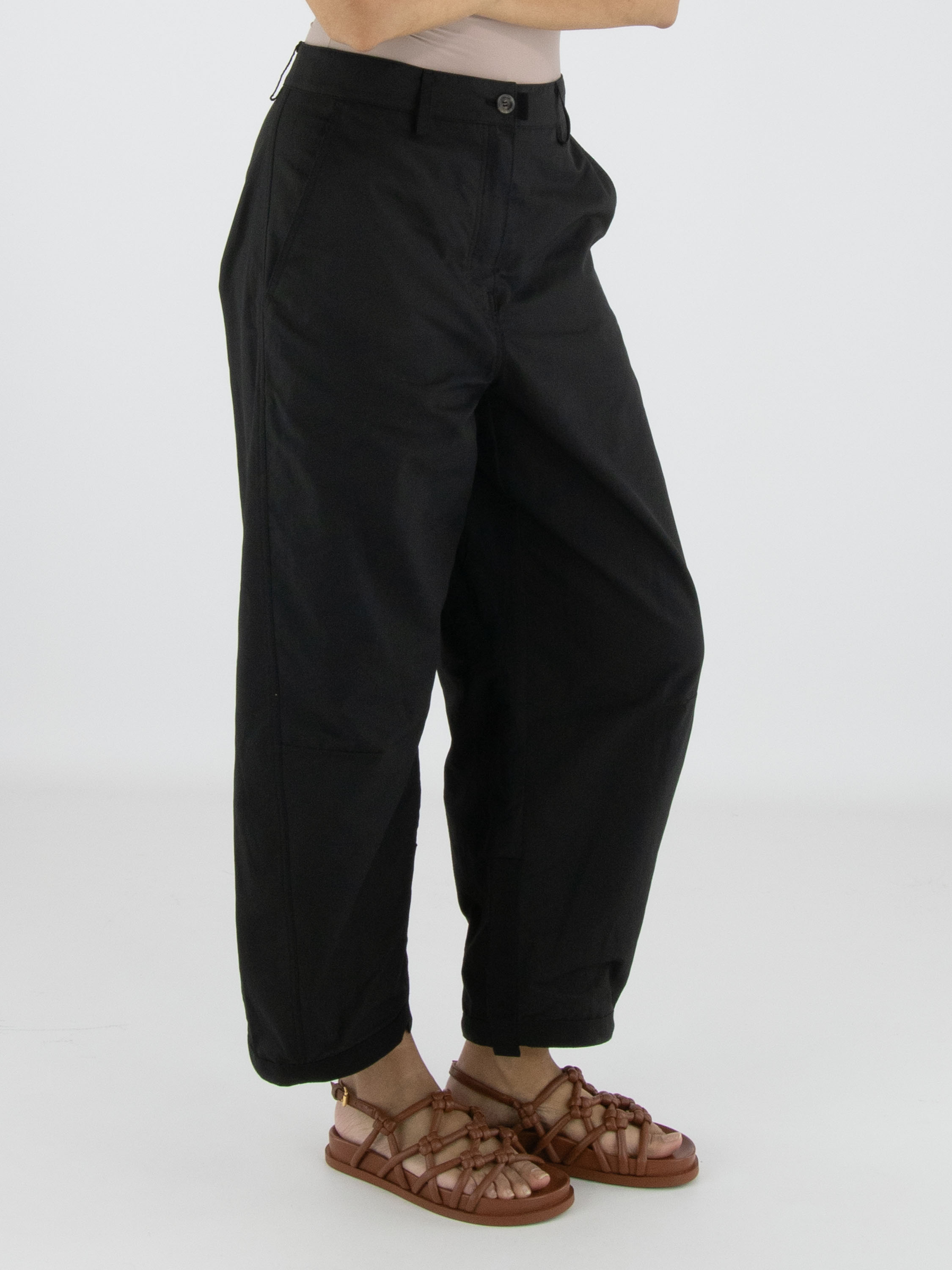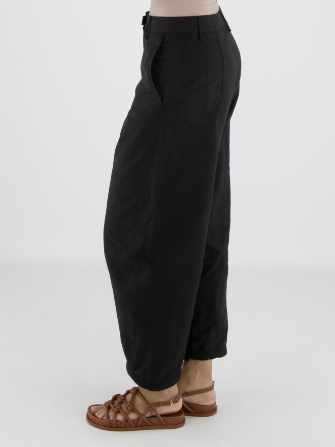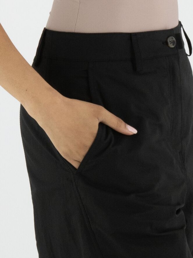 Un pantalon d’Annette Görtz en noir. Le pantalon possède des poches latérales. Un fil métallique souple est intégré dans l’ourlet des jambes, permettant de modeler la forme des jambes selon vos envies. Ce pantalon peut être lavé à 30 degrés.