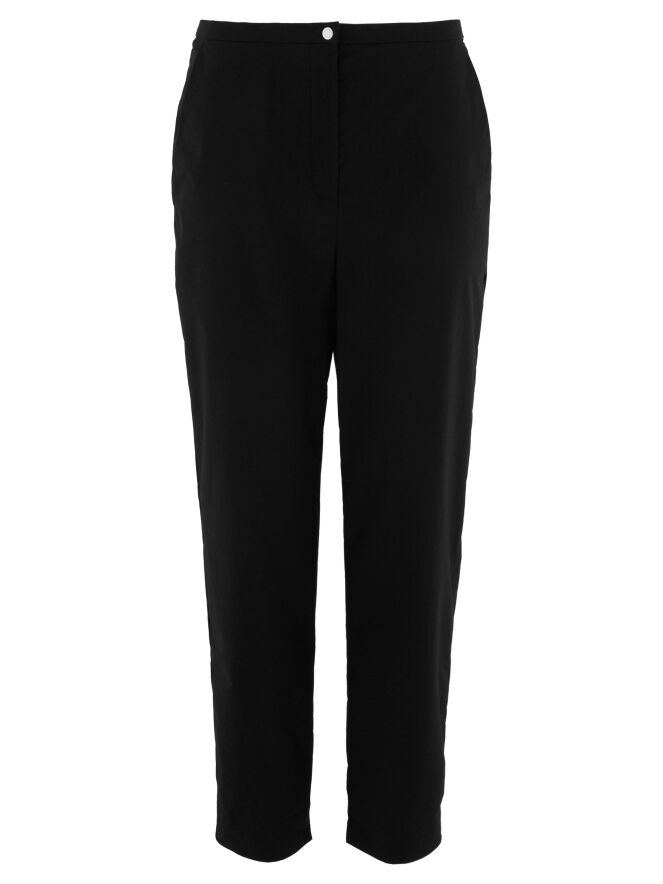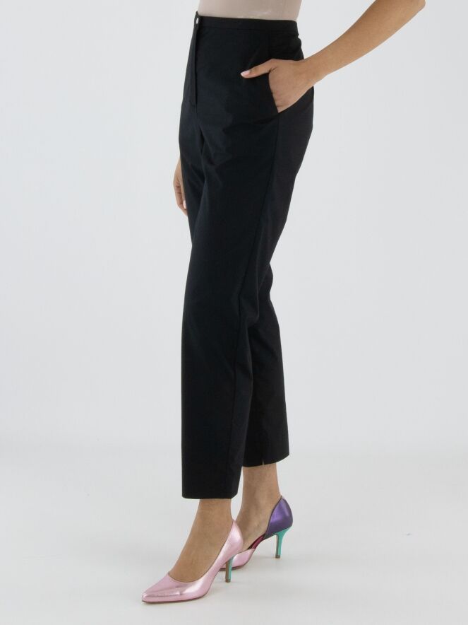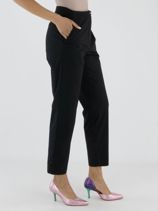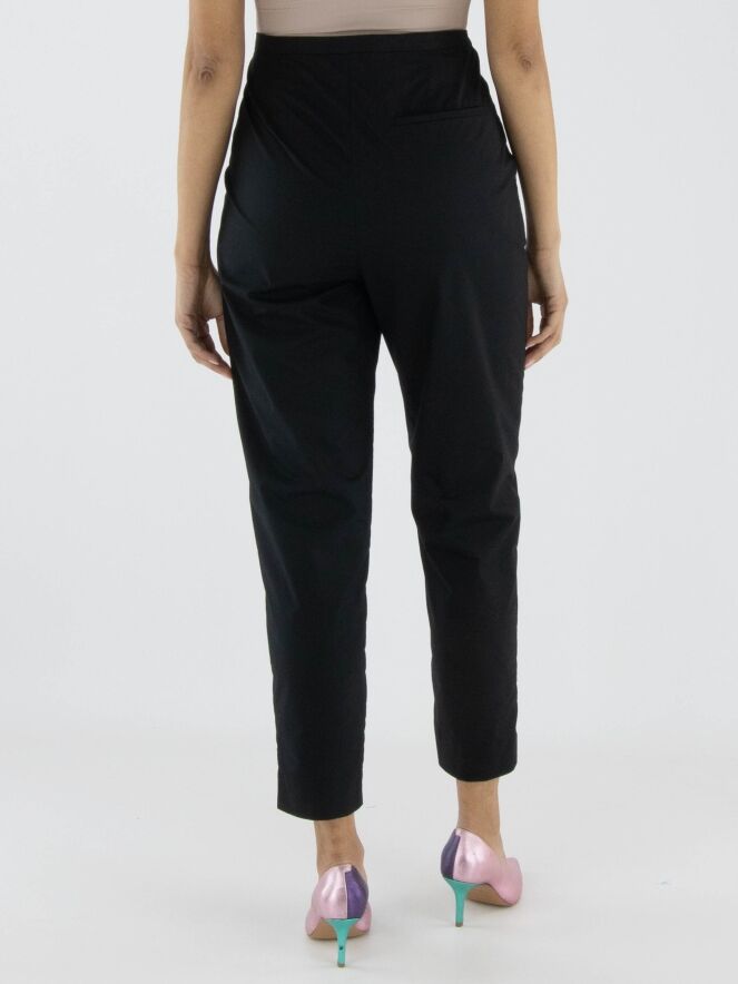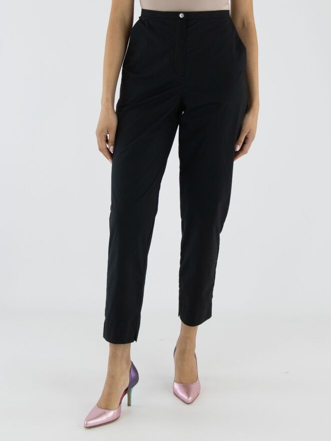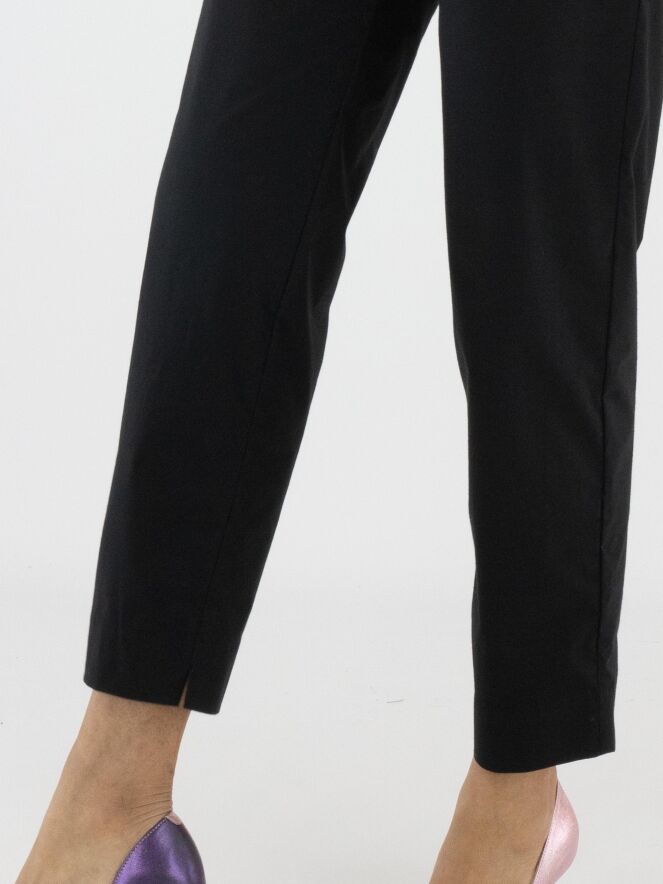 Un pantalon d'Annette Görtz en noir. Ce pantalon est doté de poches latérales et d'une petite fente au bas des jambes. Ce pantalon peut être lavé à 30 degrés.