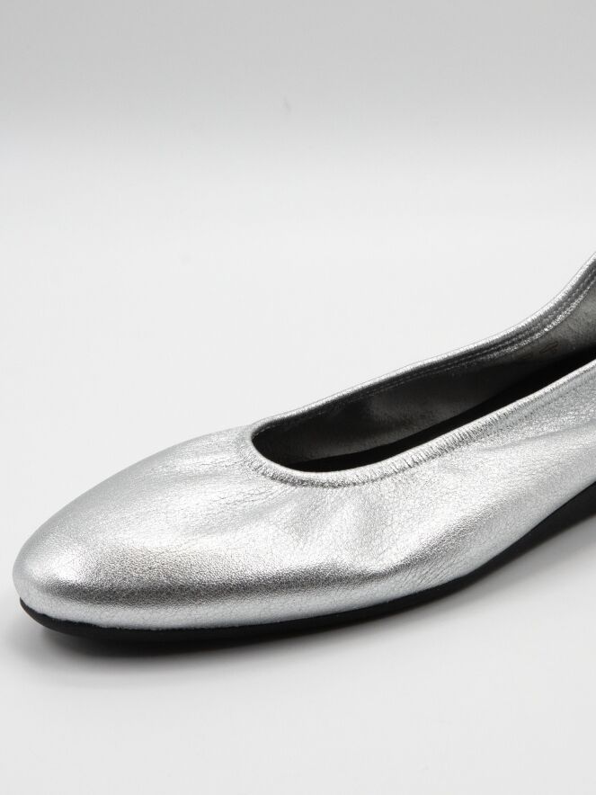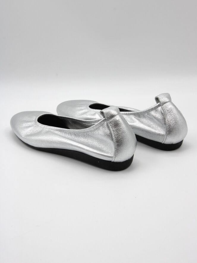 Le modèle Laius de Arche est un intemporel essentiel dans une élégante teinte argentée. Confectionnée en veau cuir de haute qualité et réalisée en coloris uni, cette ballerine offre une allure raffinée et polyvalente. Le bout est délicatement arrondi et l’intérieur non doublé assure souplesse et confort naturel. La semelle en latex flexible garantit un excellent amorti, tandis que l’arrière légèrement surélevé apporte un confort supplémentaire.