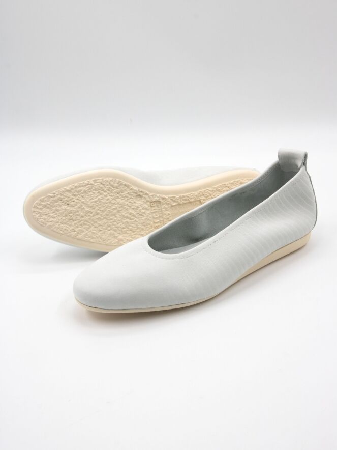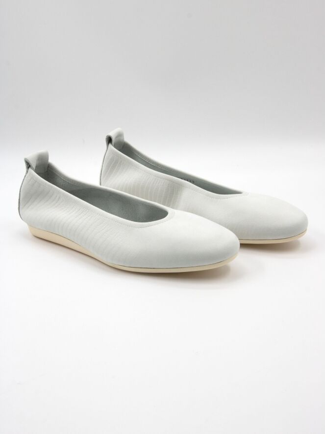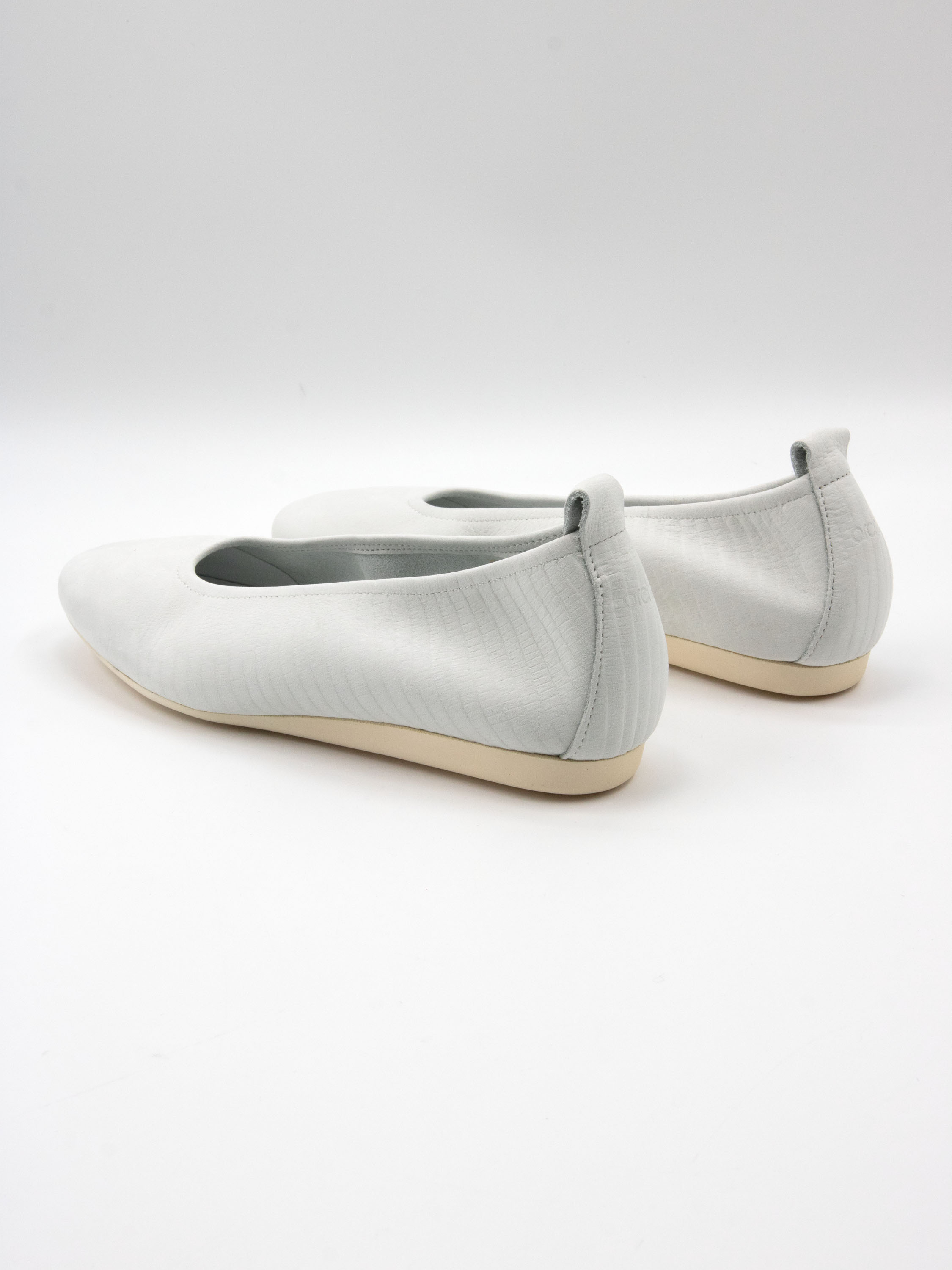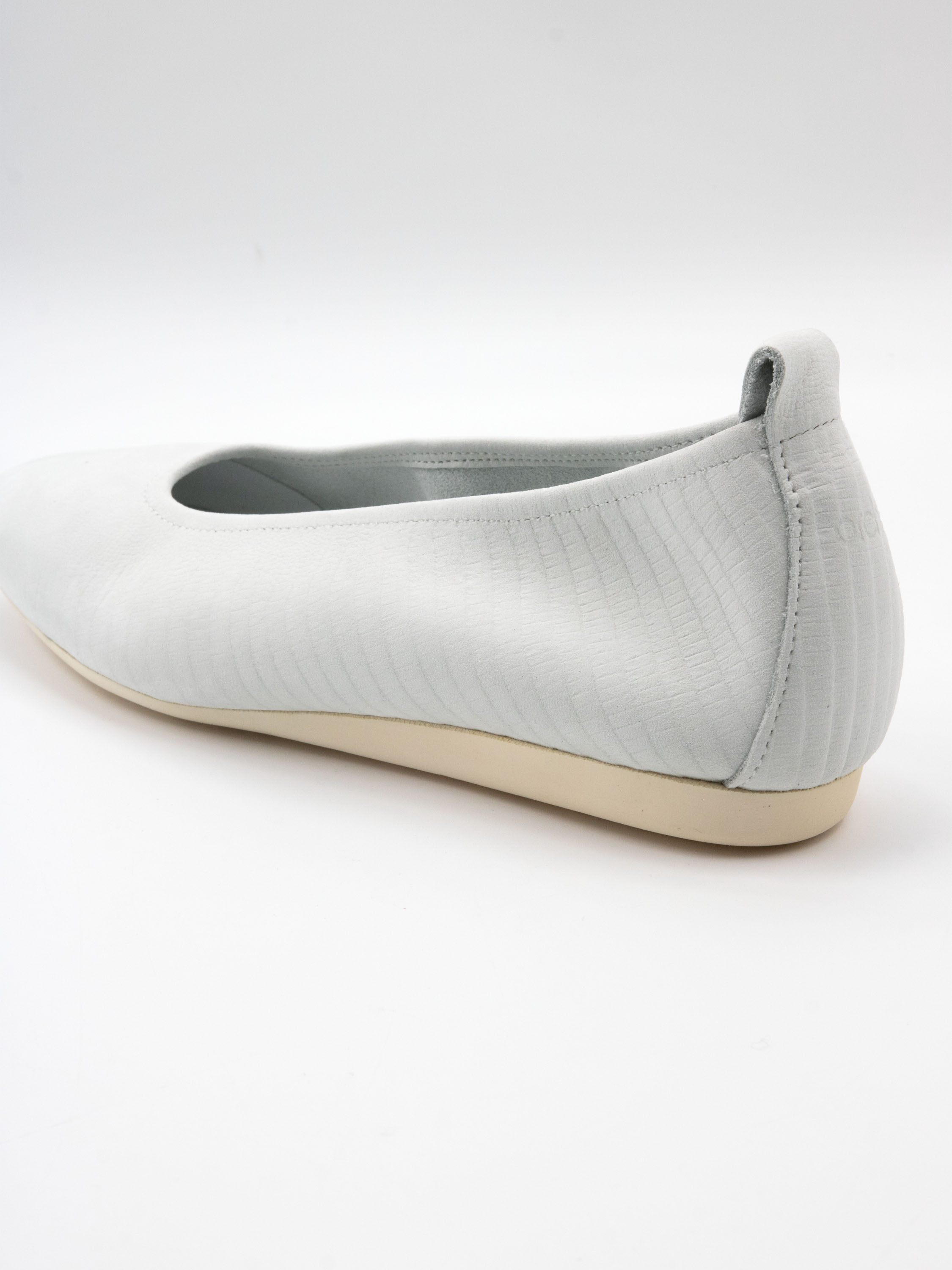Le modèle Laius de Arche est un modèle emblématique et intemporel, décliné dans un imprimé reptile raffiné aux nuances de blanc crème. Confectionnée en daim de veau de haute qualité et dotée d’une semelle en latex flexible, cette ballerine offre un confort exceptionnel. Le bout est élégamment arrondi et l’intérieur non doublé assure une souplesse et un ajustement naturel. L’arrière légèrement surélevé de la semelle apporte un confort supplémentaire.
