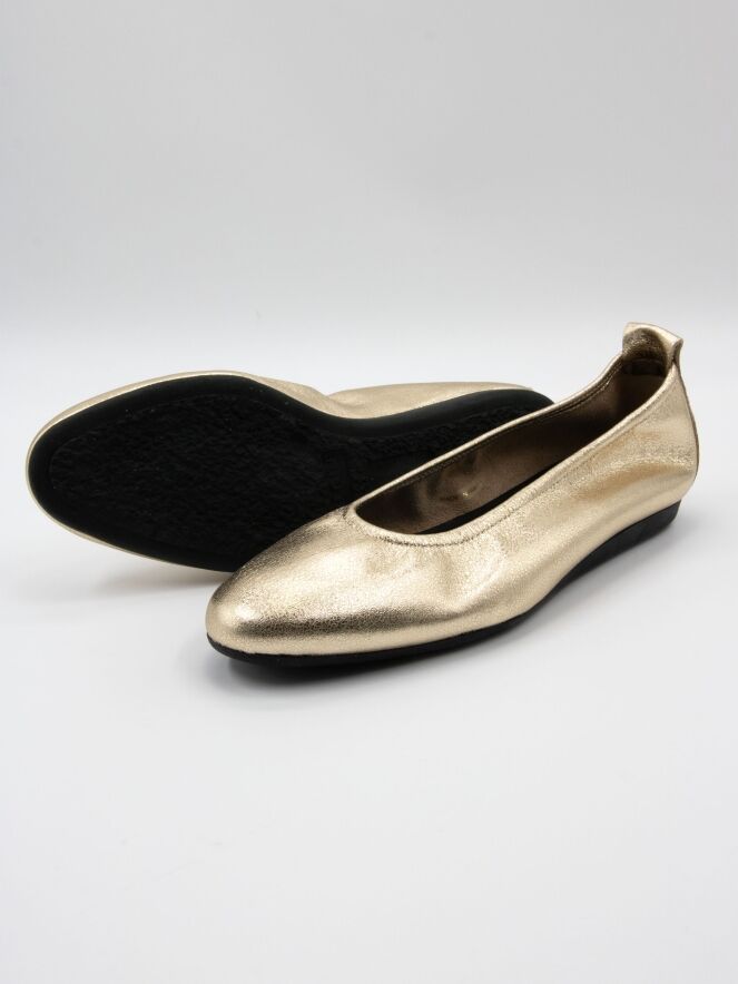 Le modèle Laius de Arche est un modèle intemporel dans une douce teinte dorée. Confectionnée en cuir de veau de haute qualité et dotée d’une semelle en latex flexible, cette ballerine offre un confort optimal. Le bout élégamment arrondi souligne son allure féminine et raffinée. L’intérieur non doublé garantit une grande souplesse et un chaussant naturel, tandis que l’arrière légèrement surélevé de la semelle apporte un confort supplémentaire.