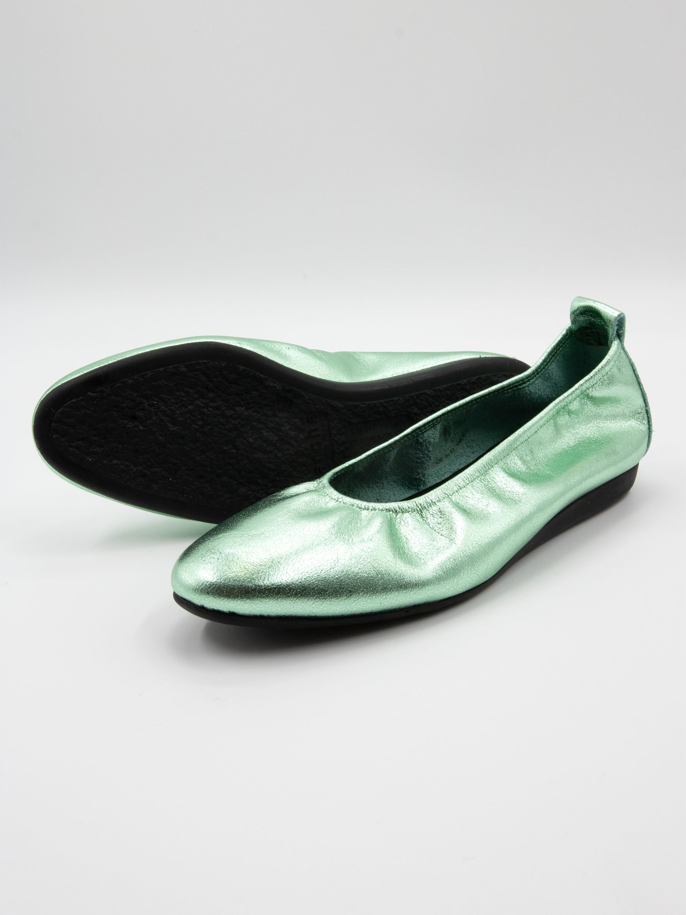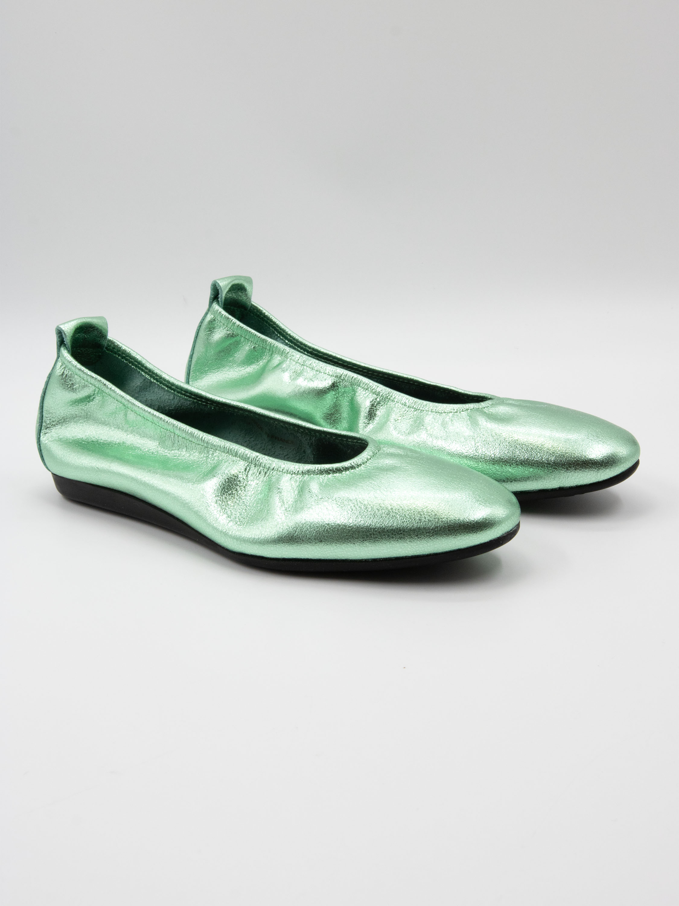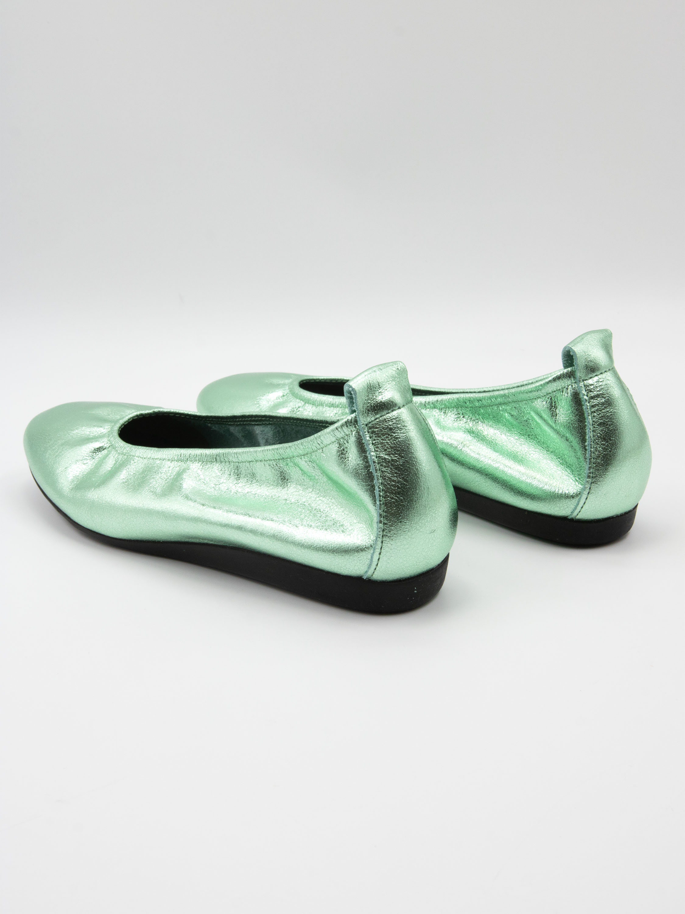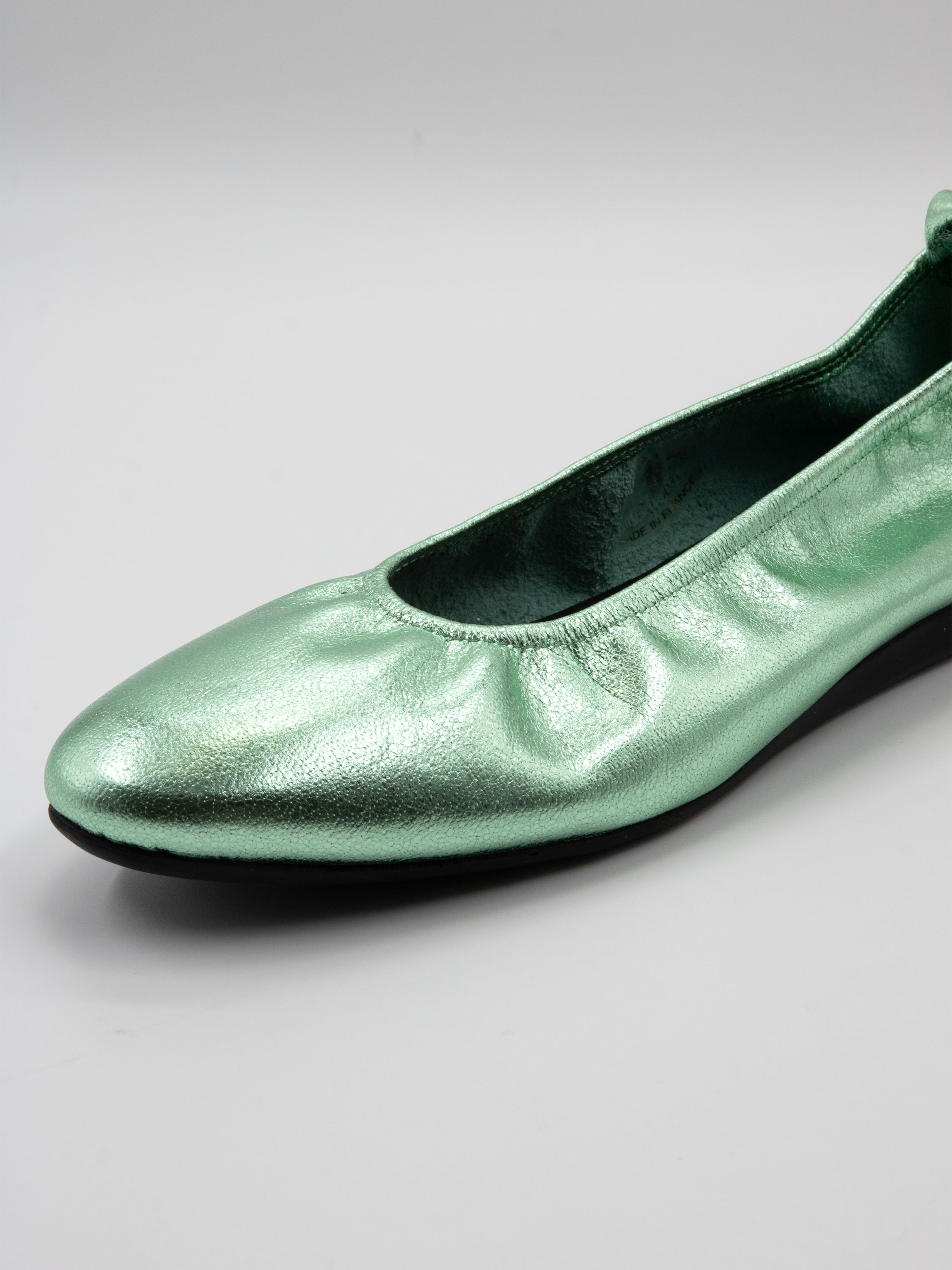 Le modèle Laius est un modèle emblématique d’Arche dans une fraîche teinte vert pomme métallisé. Confectionnée en cuir de veau haut de gamme et dotée d’une semelle en latex flexible, cette ballerine offre un confort de marche exceptionnel. Le bout élégamment arrondi souligne son allure intemporelle et raffinée. L’intérieur non doublé garantit une souplesse accrue et un chaussant naturel, tandis que la partie arrière légèrement surélevée de la semelle apporte un confort supplémentaire à chaque pas.