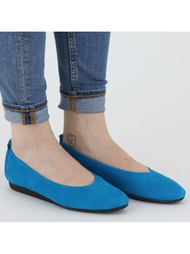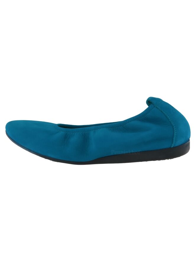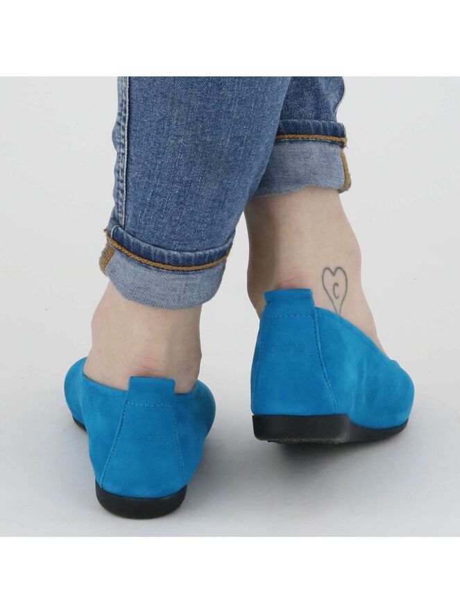 Le modèle Laïus en nubuck de couleur turquoise est un modèle de base de la marque Arche. Cette ballerine est d’une grande souplesse due à la qualité du cuir de veau choisi. Elle possède aussi une grande flexibilité et confort de marche due à sa semelle en latex. La ligne de cette ballerine vous fera un pied fin et long à l’œil. L'intérieur de la chaussure n’est pas doublé. Semelle légèrement rehaussée au niveau du talon.