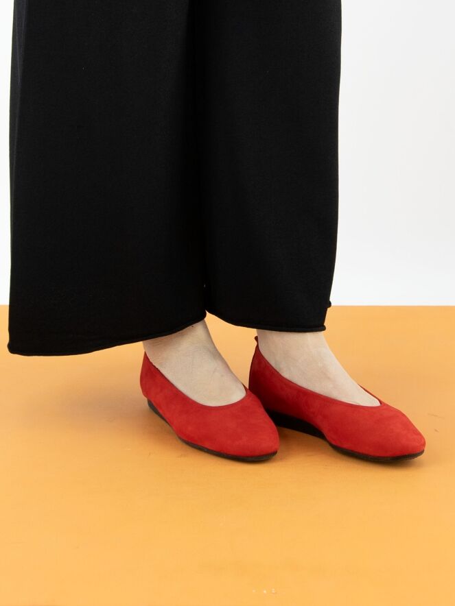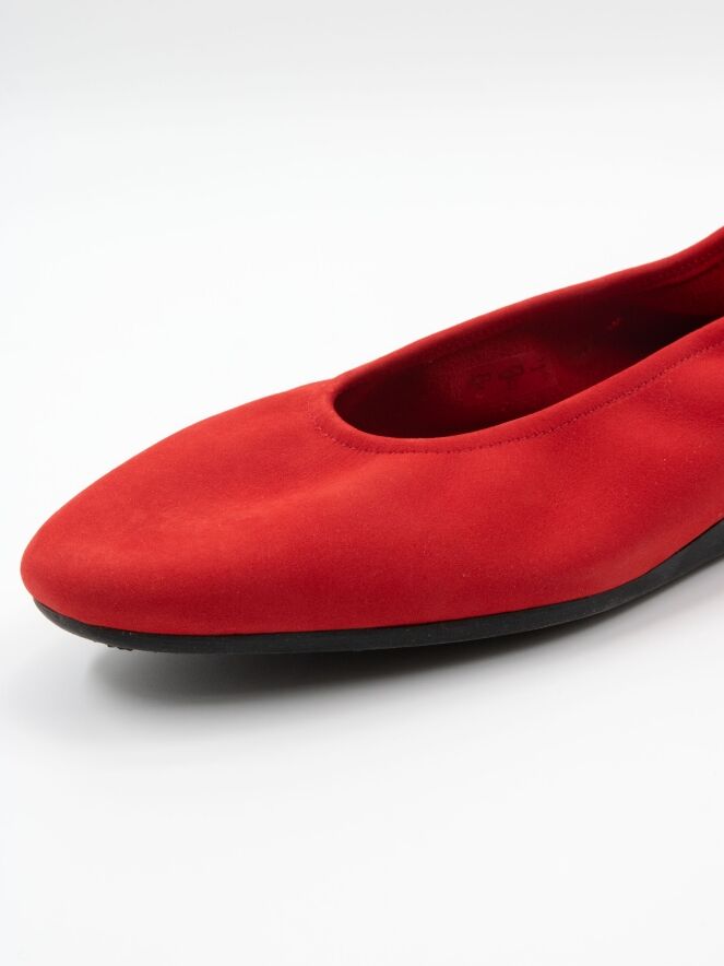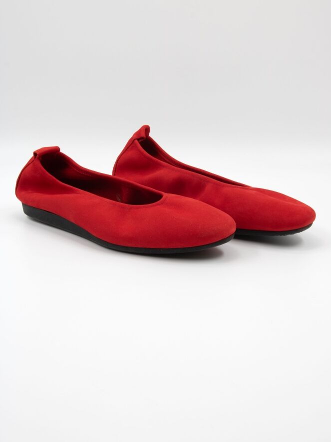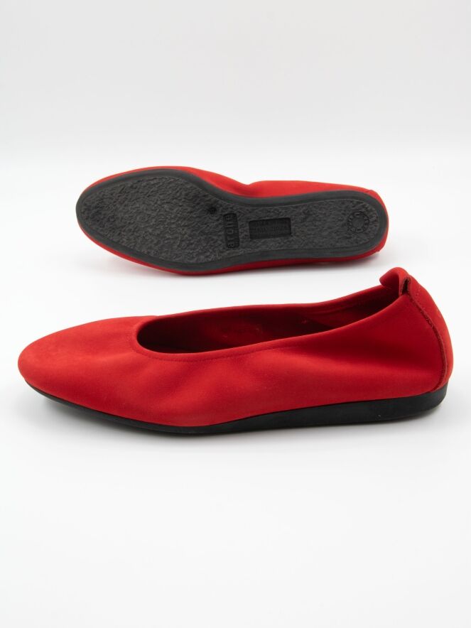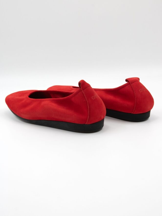 Le modèle Laius en rouge. Un modèle classique de la marque Arche. Cette ballerine est confectionnée en cuir de veau de haute qualité et dotée d’une semelle en latex. Le modèle est en couleur unie. Le bout de la ballerine est joliment arrondi. L'intérieur n'est pas doublé, ce qui assure souplesse et confort. L’arrière de la semelle est légèrement surélevé pour un confort accru.