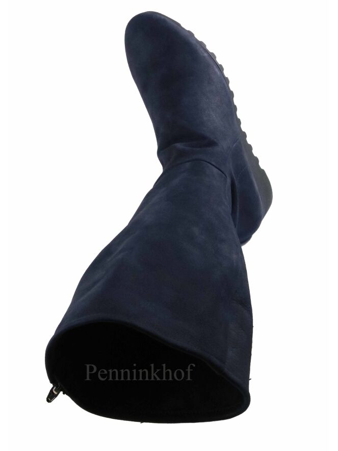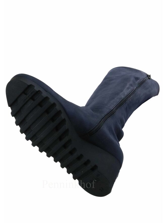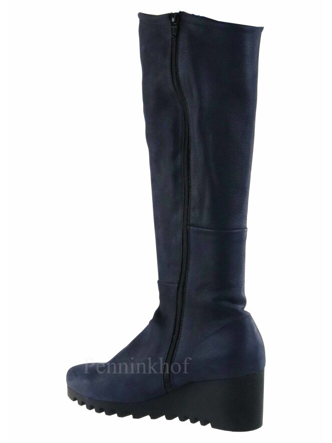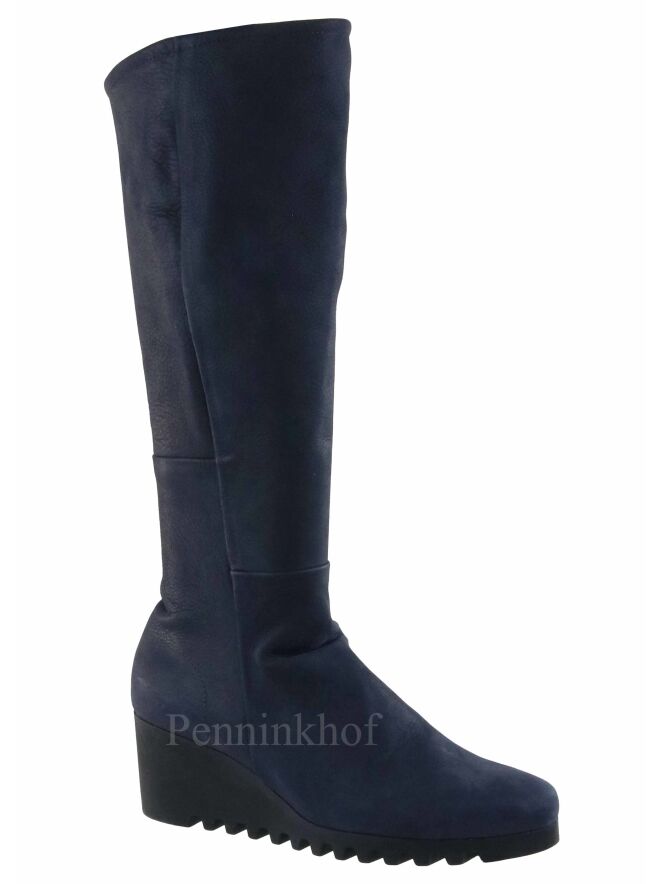Botte haute de la marque Arche, en cuir de couleur anthracite mélangée. La botte présente un talon compensé à semelle crantée en latex de la même couleur. L'intérieur est équipé d'un zip noir de fermeture sur toute la hauteur. Intérieur non doublé.