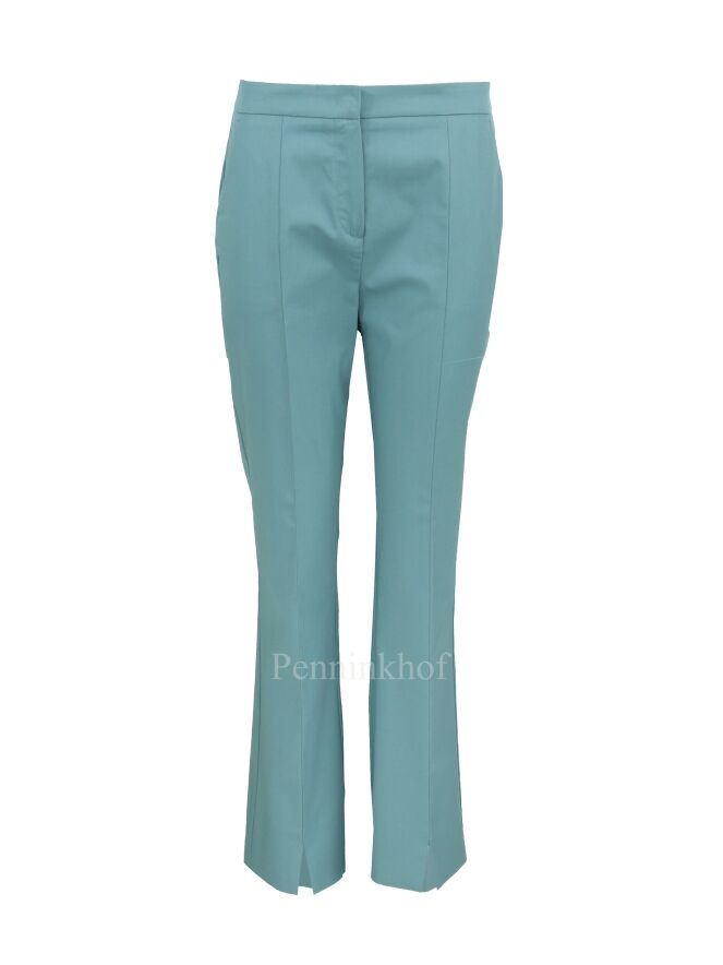 Pantalon de la marque Beatrice B., de couleur menthe foncée. Le bas des jambes légérement évasé, présente sur le devant une petite fente. Poches fendues latérales. Lavage à la main.