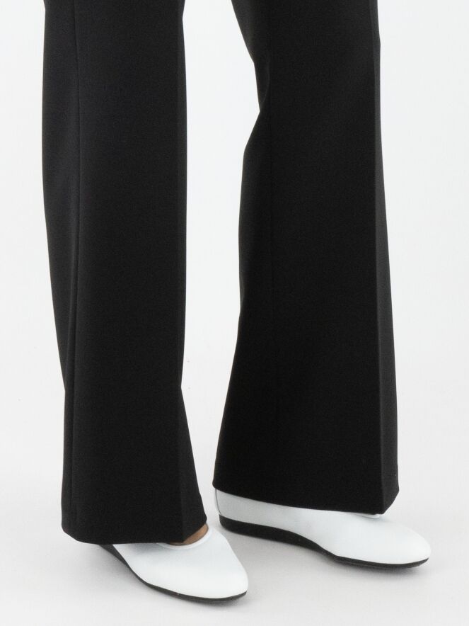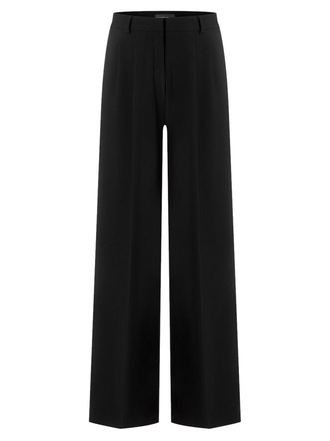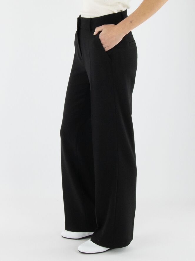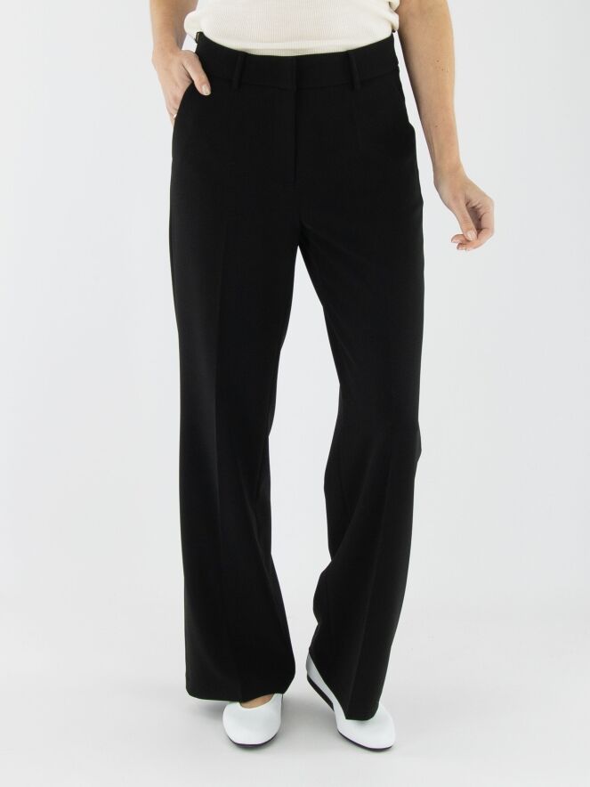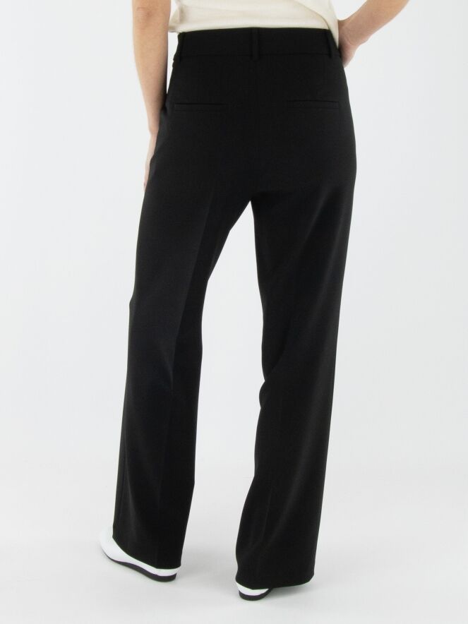 Un pantalon Cambio de couleur noire. Une pliure marquée traverse le centre des jambes droites. Le pantalon dispose de poches latérales et peut être lavé à 30 degrés.