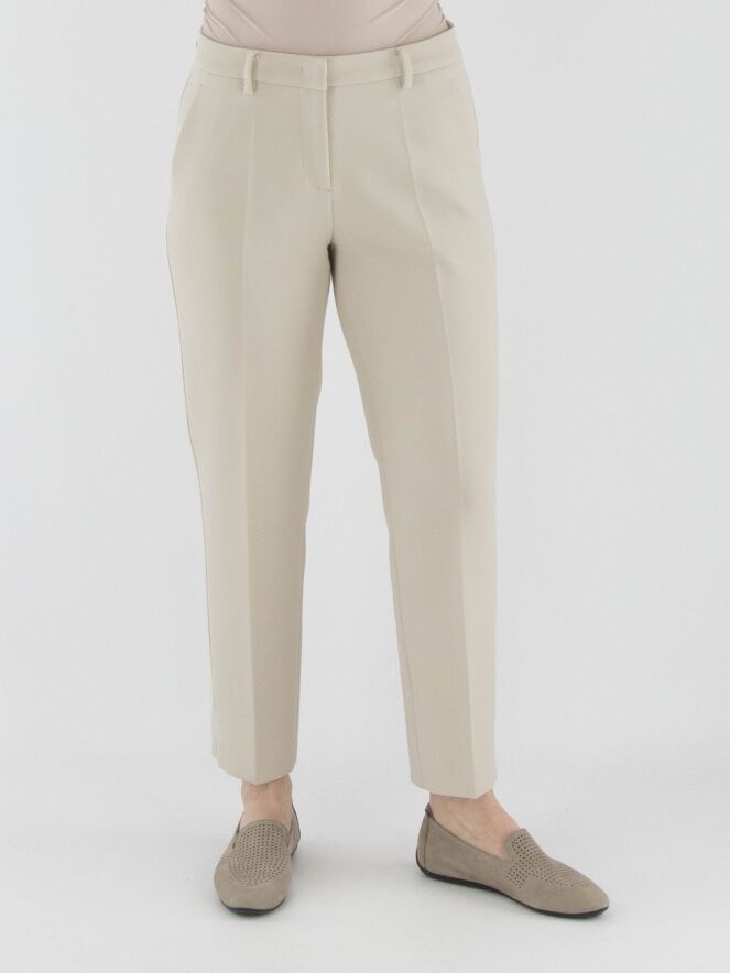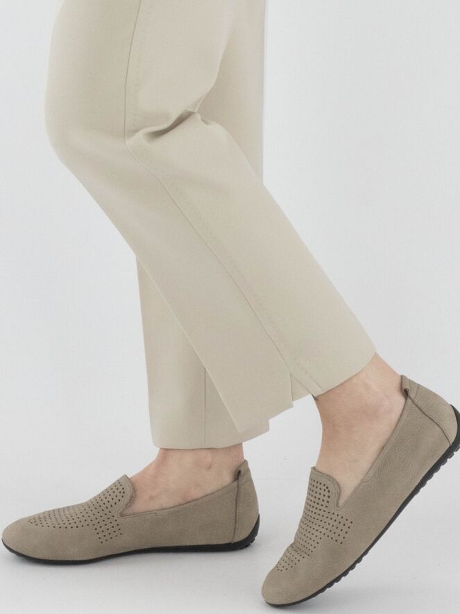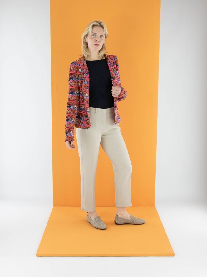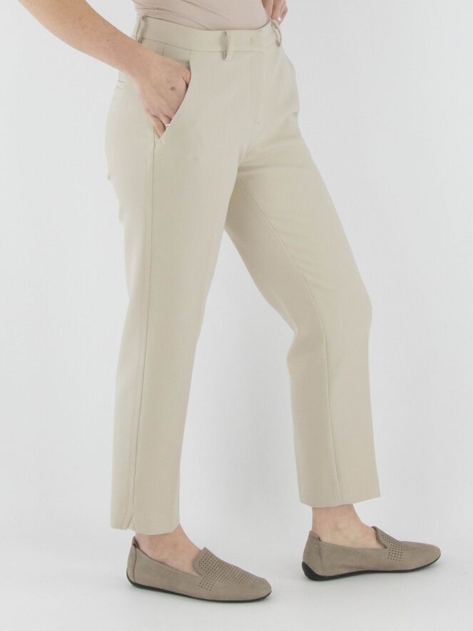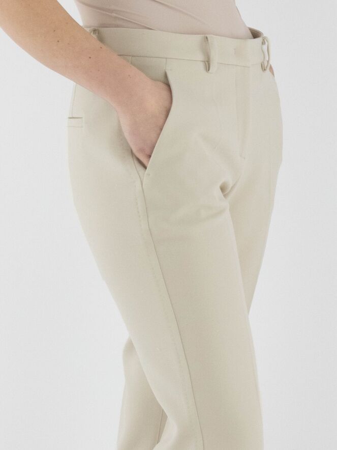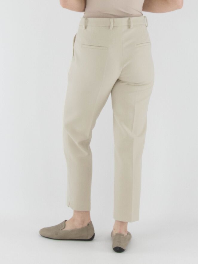Un pantalon Cambio de couleur sable. Le long des côtés, une couture décorative de la même couleur que le pantalon est présente. Le pantalon dispose de poches latérales et peut être lavé à 30 degrés.