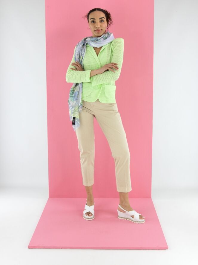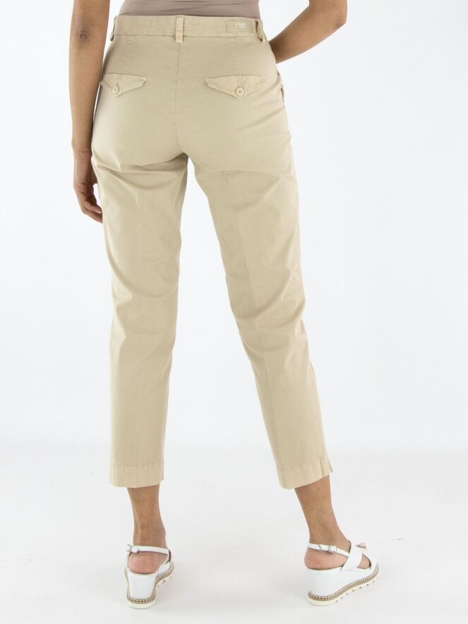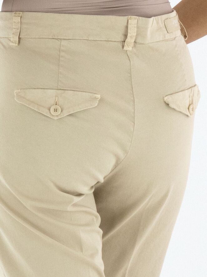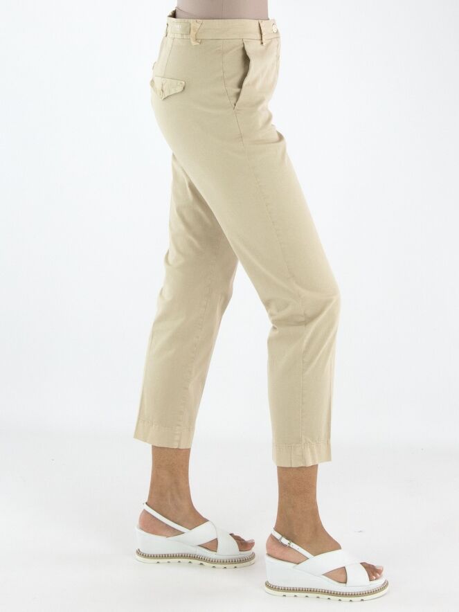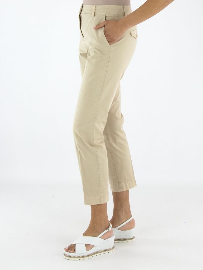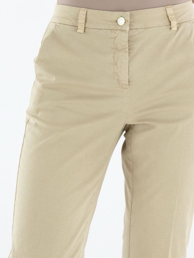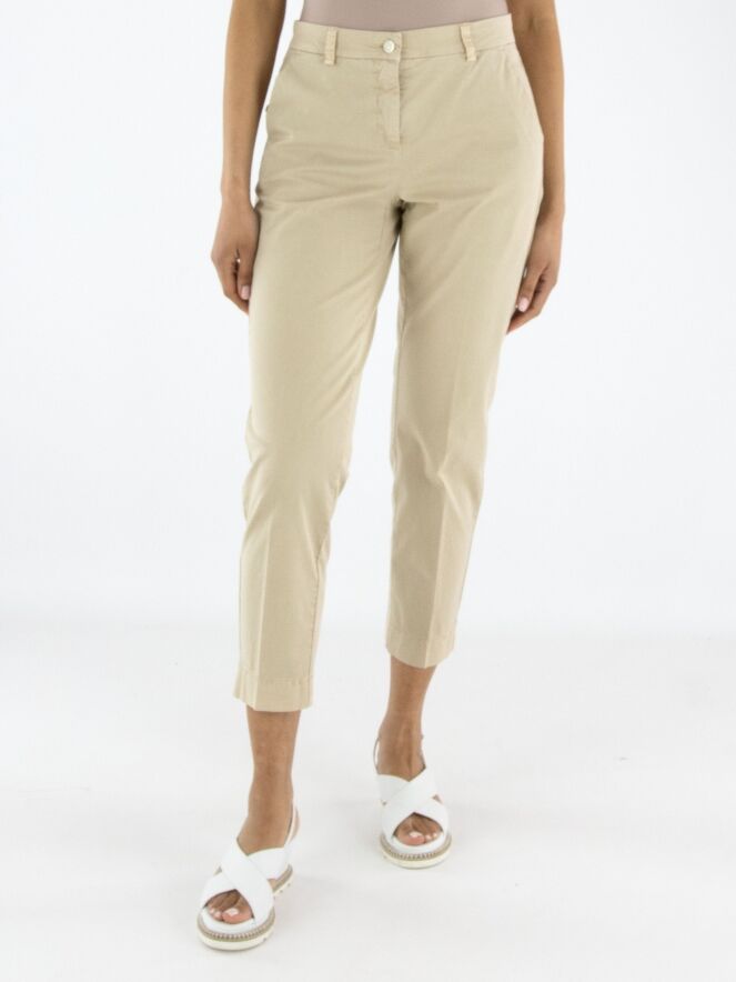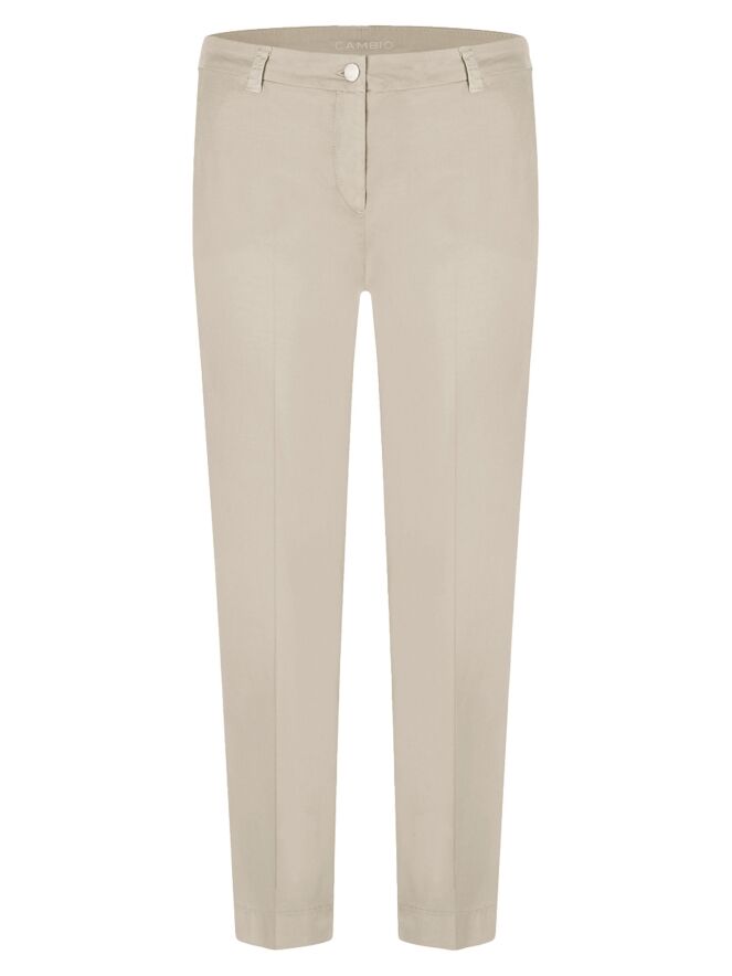 Un pantalon de Cambio en couleur sable. Ce pantalon possède des poches latérales et un pli repassé au centre des jambes. Ce pantalon peut être lavé à 30 degrés.