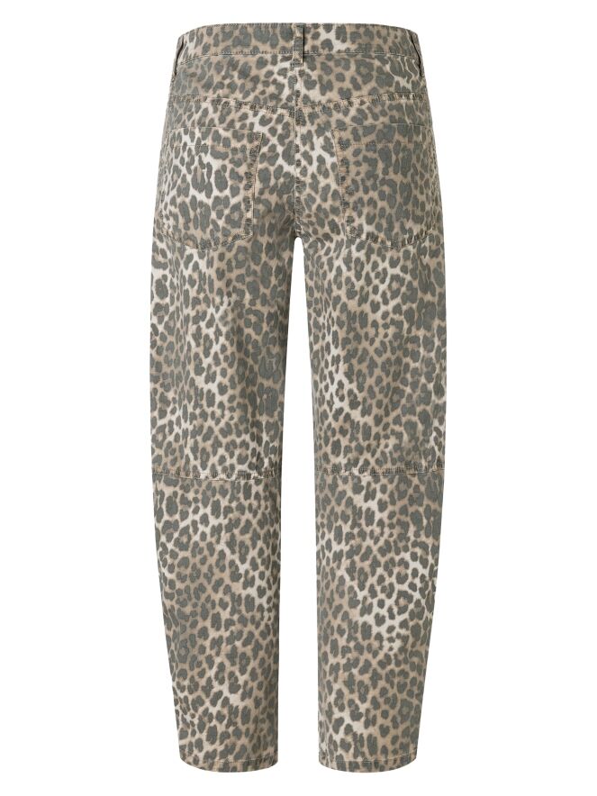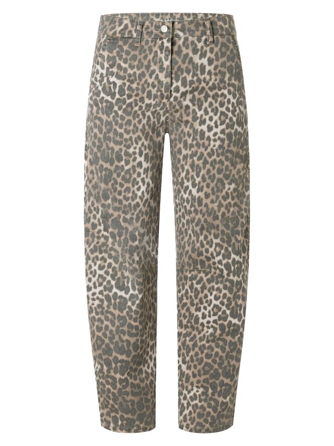 Un pantalon de la marque Cambio avec un imprimé léopard délavé. Le modèle est un 5 poches. Une pince est intégrée au niveau du genou. Ce jean peut être lavé à 30 degrés.