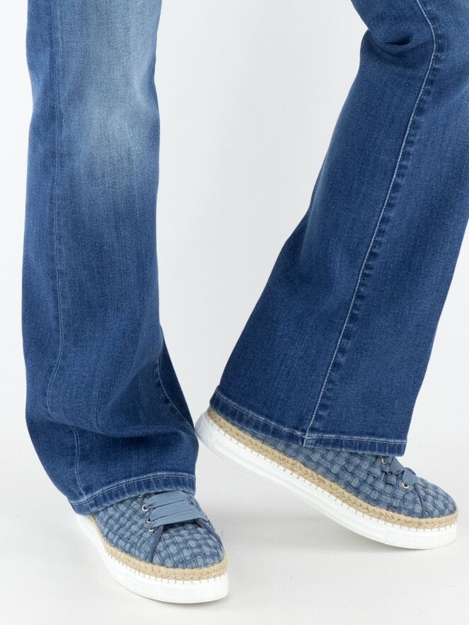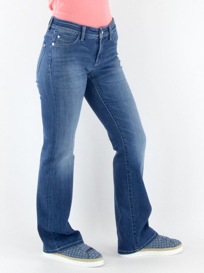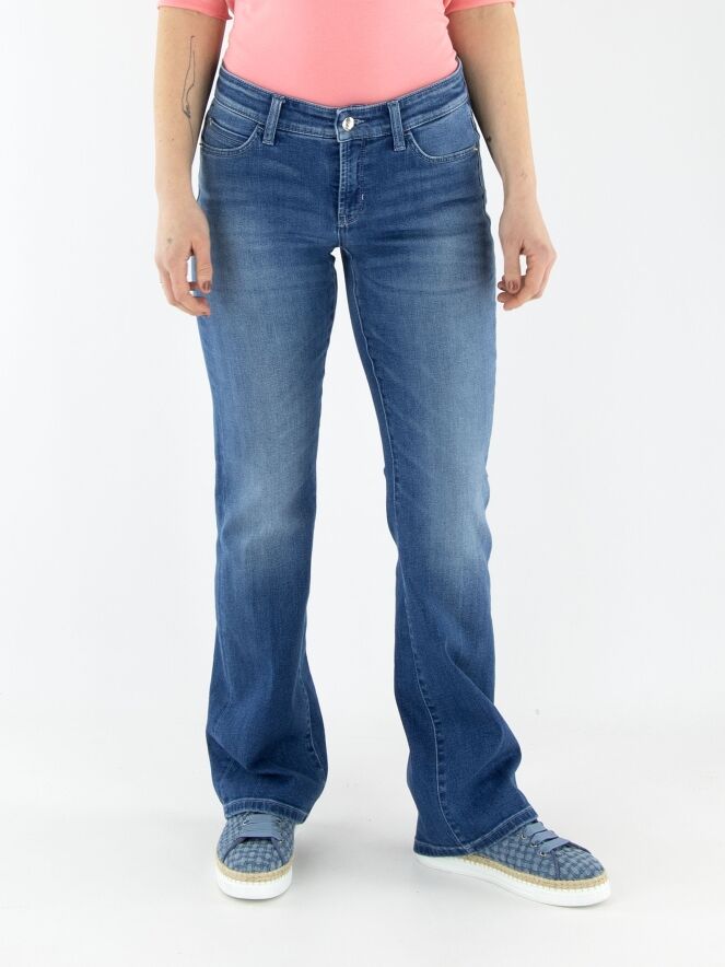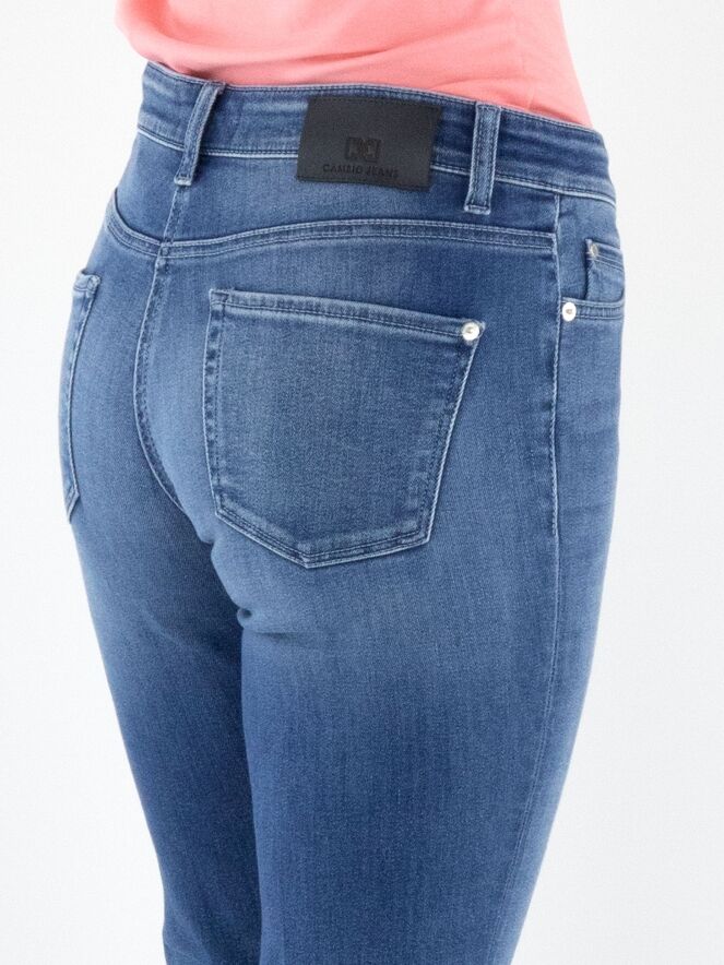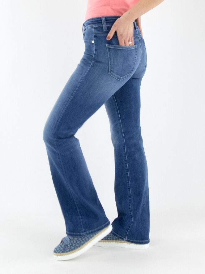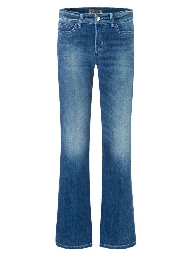 Un jean évasé lavé de Cambio de couleur denim basique. Le jean est conçu dans un modèle à 5 poches et peut être lavé à 30 degrés.