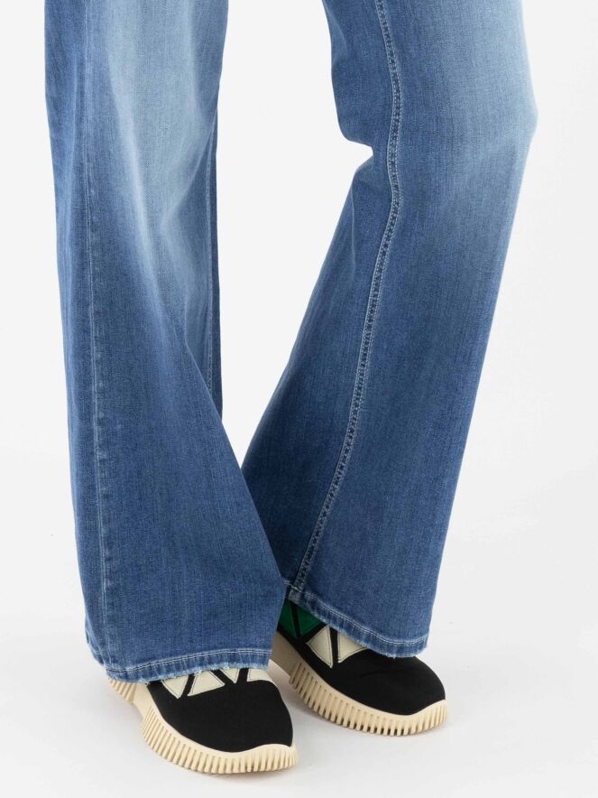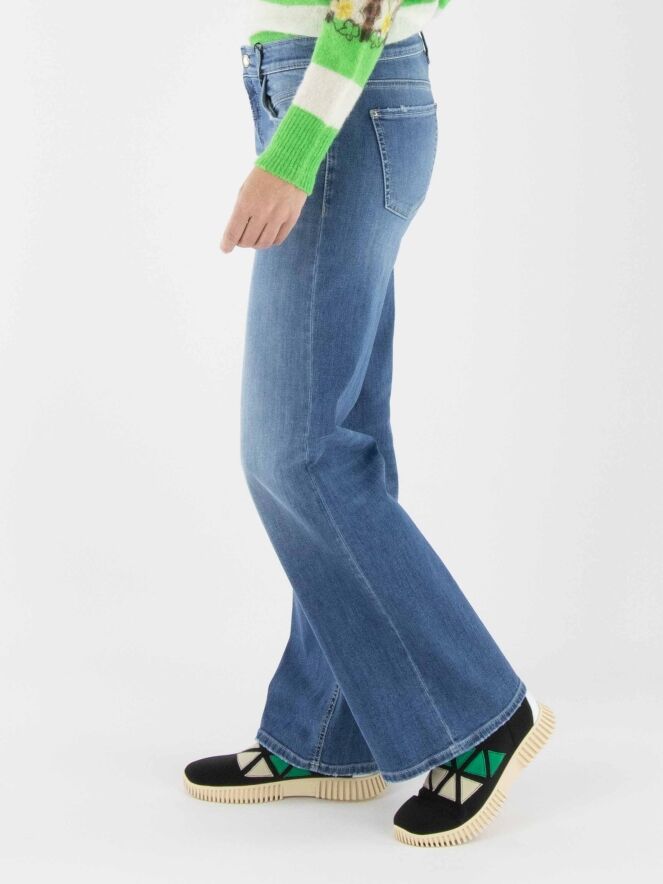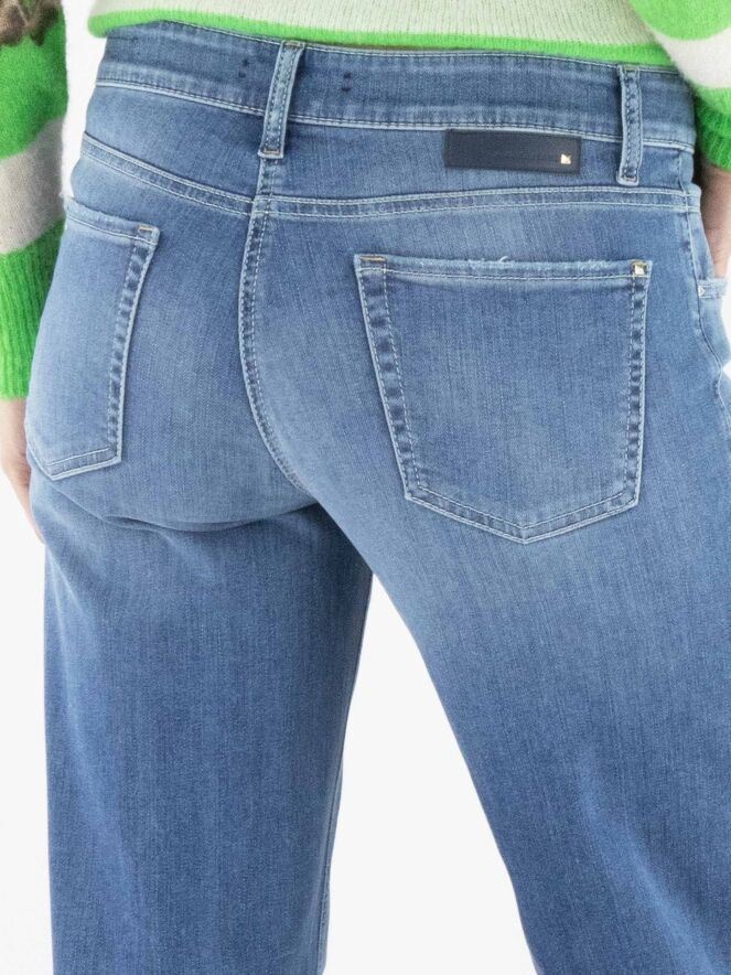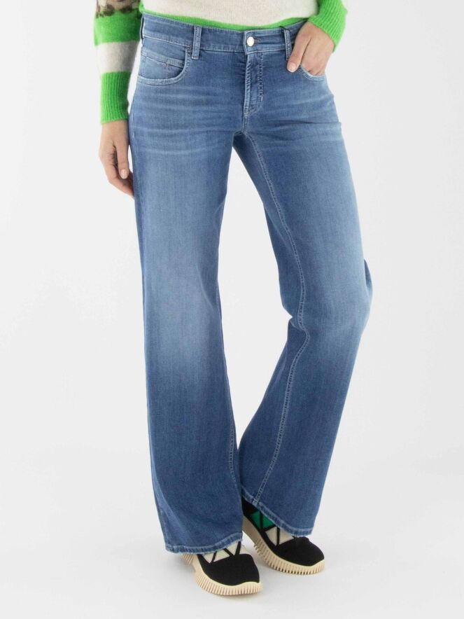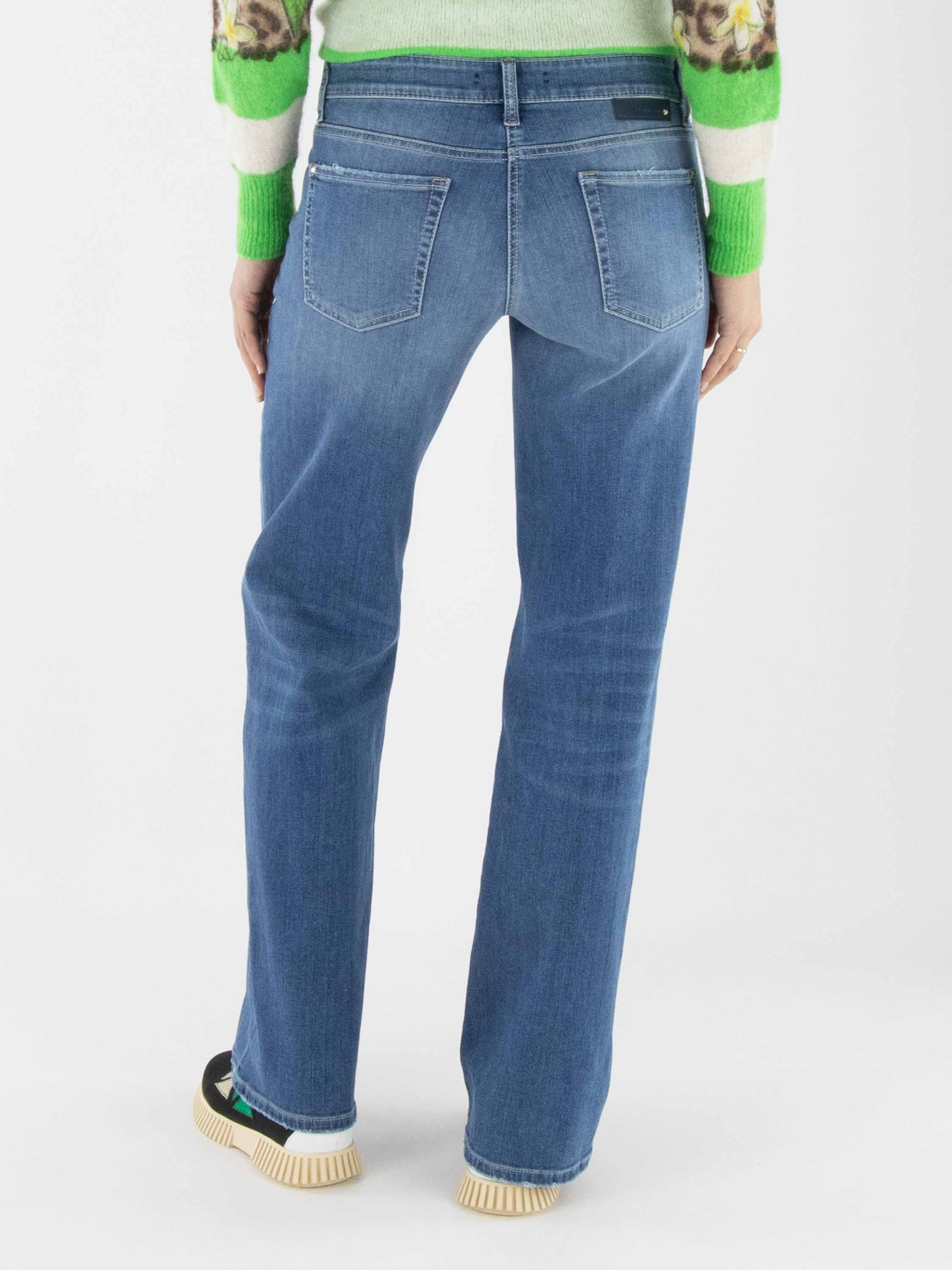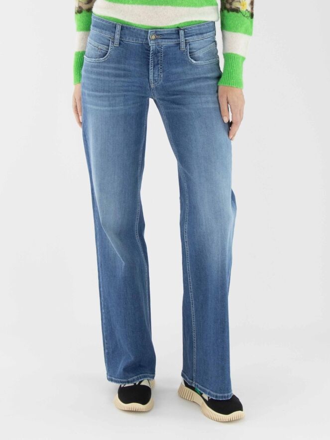 Un jean ample de Cambio de couleur denim classique. Le jean est conçu dans un modèle à 5 poches. L'ourlet des jambes présente une finition usée. Ce jean peut être lavé à 30 degrés.