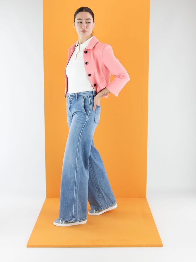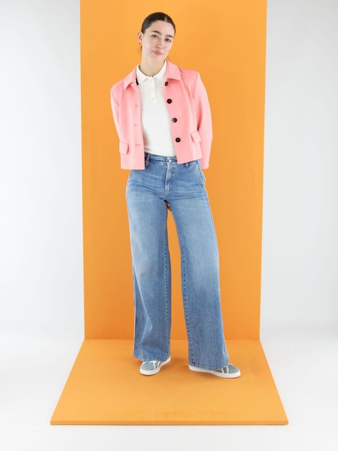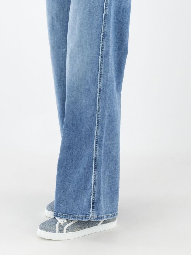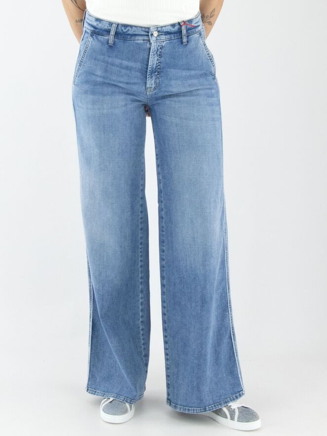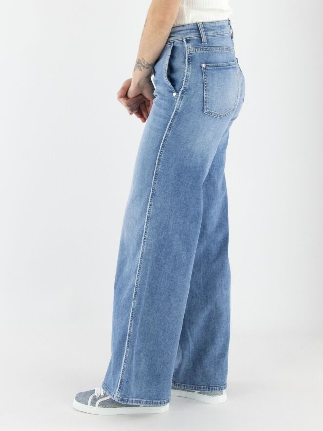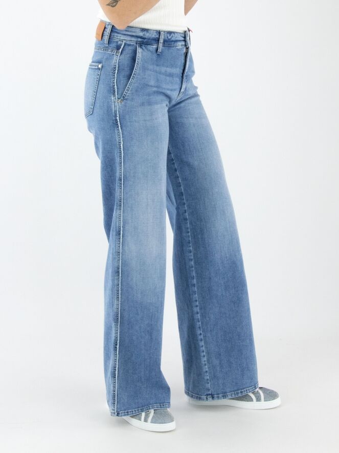 Un jean large de Cambio dans une teinte denim clair. Ce jean possède des poches latérales et peut être lavé à 30 degrés.