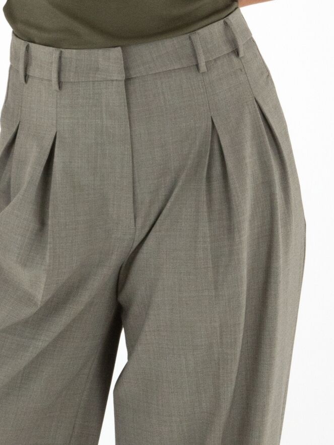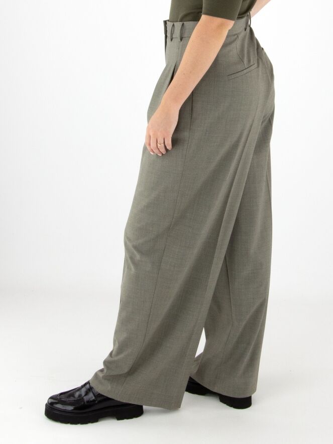 Pantalon à plis mélangé de la marque Cambio dans plusieurs nuances de gris. Le pantalon est doté de poches fendues et doit être lavé à la main.
