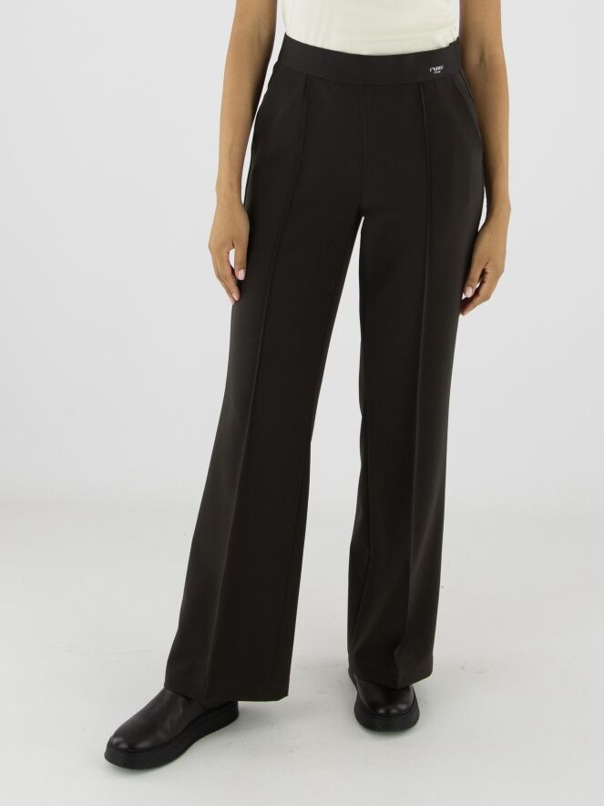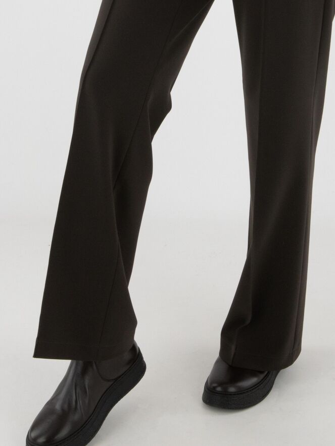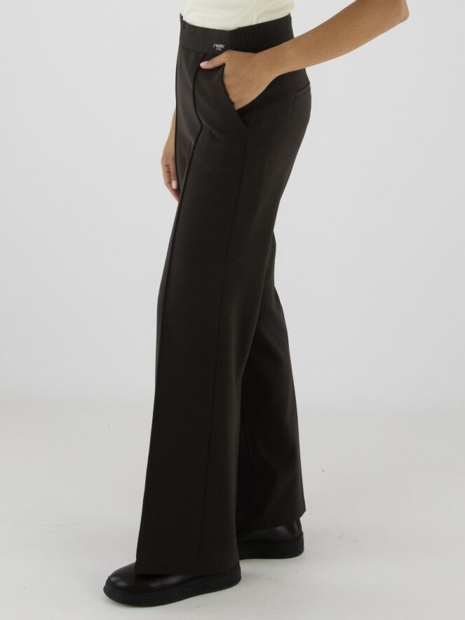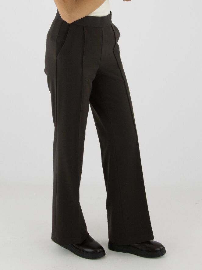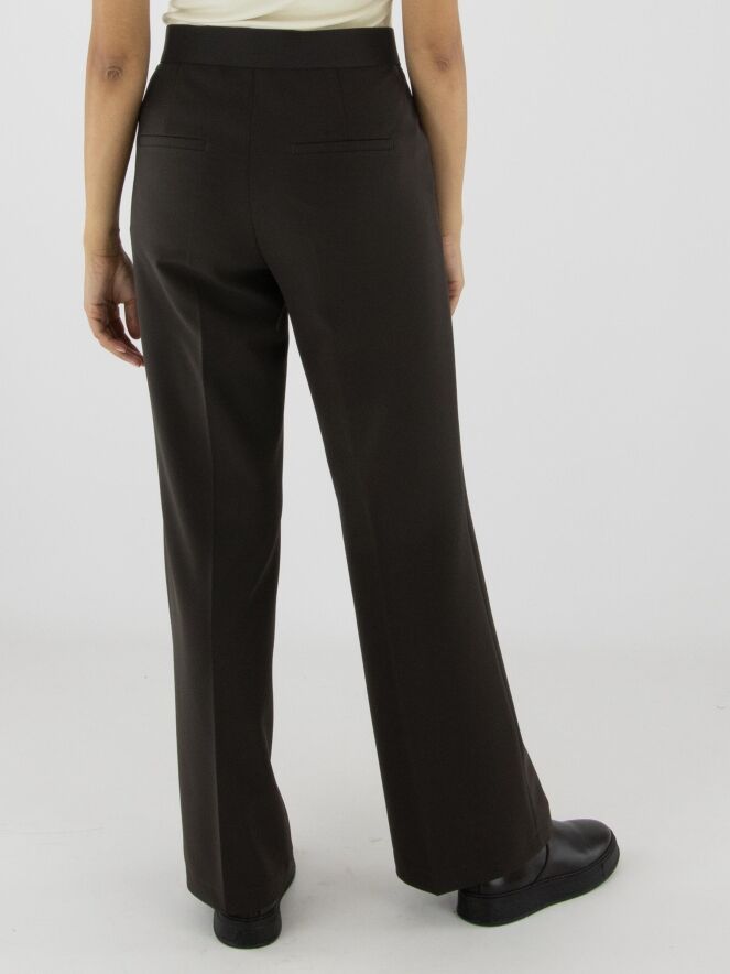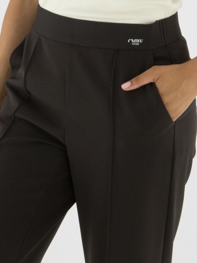 Pantalon de la marque Cambio en coloris brun moka. La taille est dotée d’une ceinture élastique assortie au pantalon. Les jambes sont coupées droites. Le pantalon est muni de poches italiennes et d’une couture inversée au centre des jambes. Ce pantalon doit être lavé à la main.