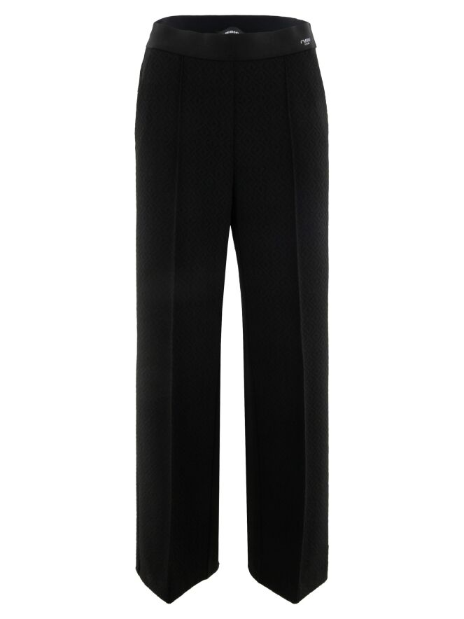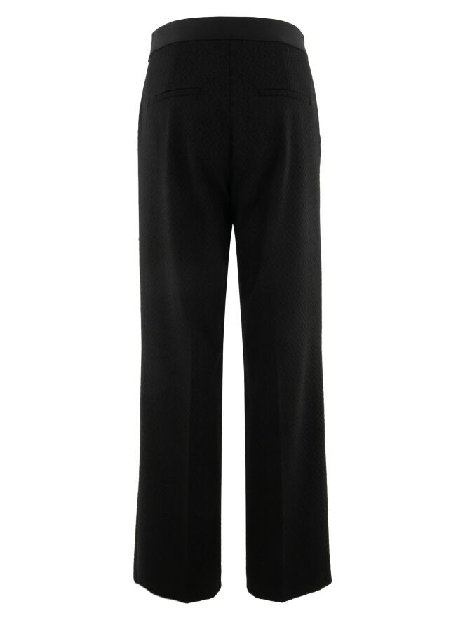 Un pantalon de Cambio en noir avec des détails scintillants. Il y a une bande élastique à la taille. Le pantalon a un motif à carreaux fins. Il y a une bande élastique à la taille. Ce pantalon a une coupe droite. Le pantalon a des poches latérales et une couture pressée au milieu des jambes. Il peut être lavé à 30 degrés.