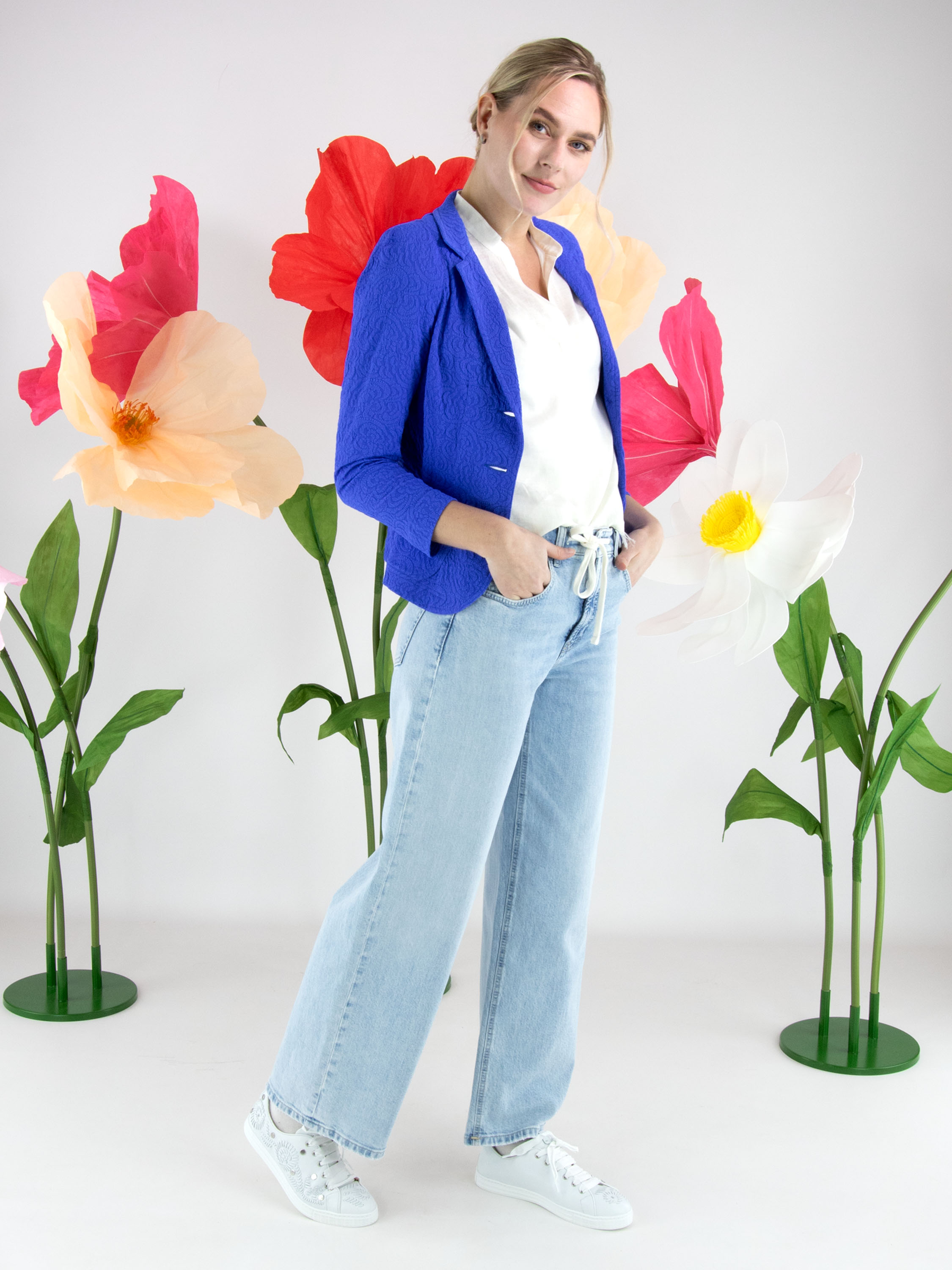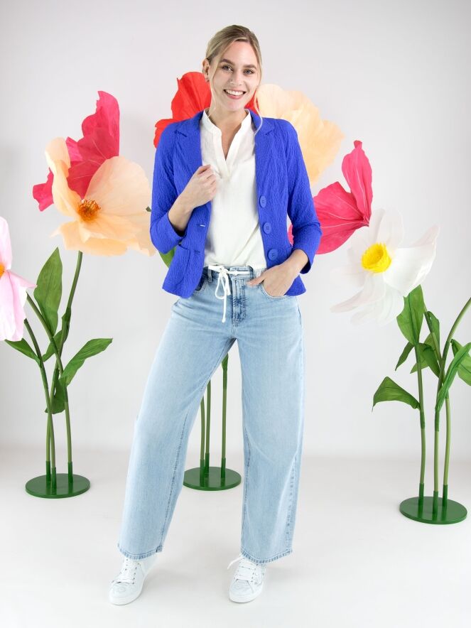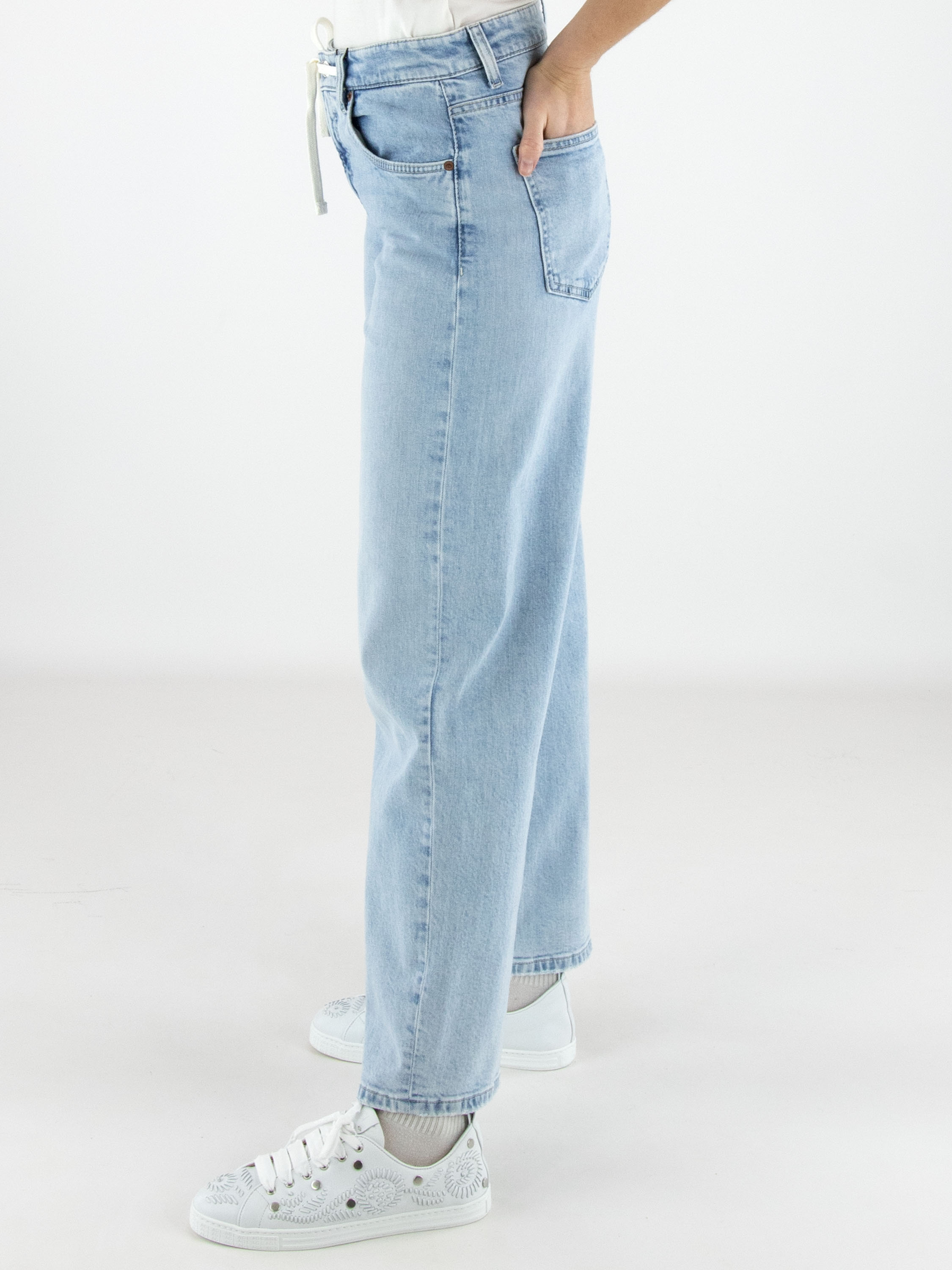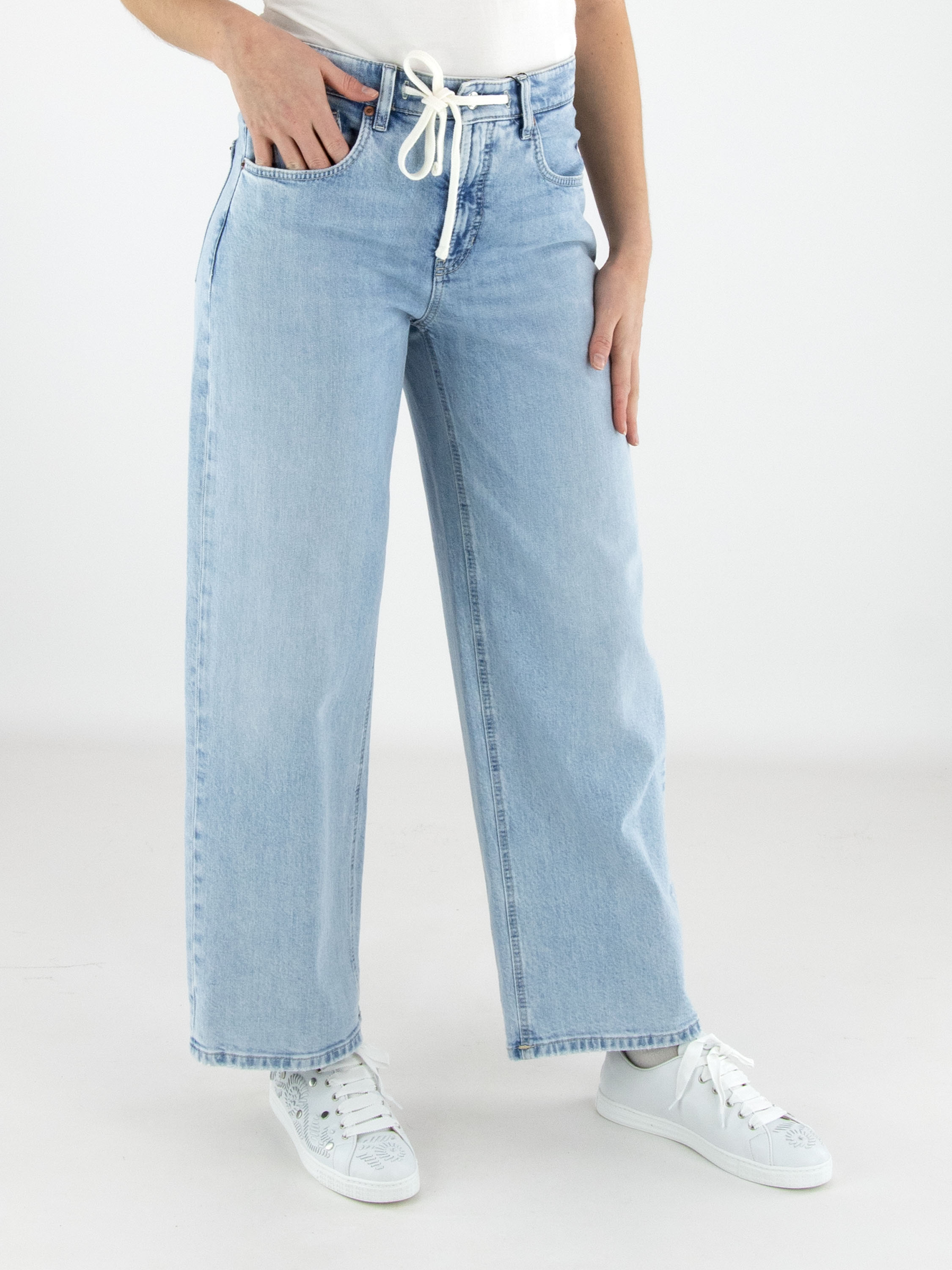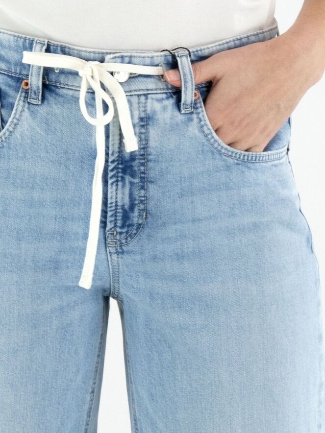 Jean délavé bleu clair de Cambio dans un modèle moderne à 5 poches. Un cordon blanc intégré à la ceinture tunnel apporte une touche sportive et confortable. Les poches aux bords arrondis ajoutent un détail raffiné au design. Ce jean de créateur peut être lavé à 30 degrés.