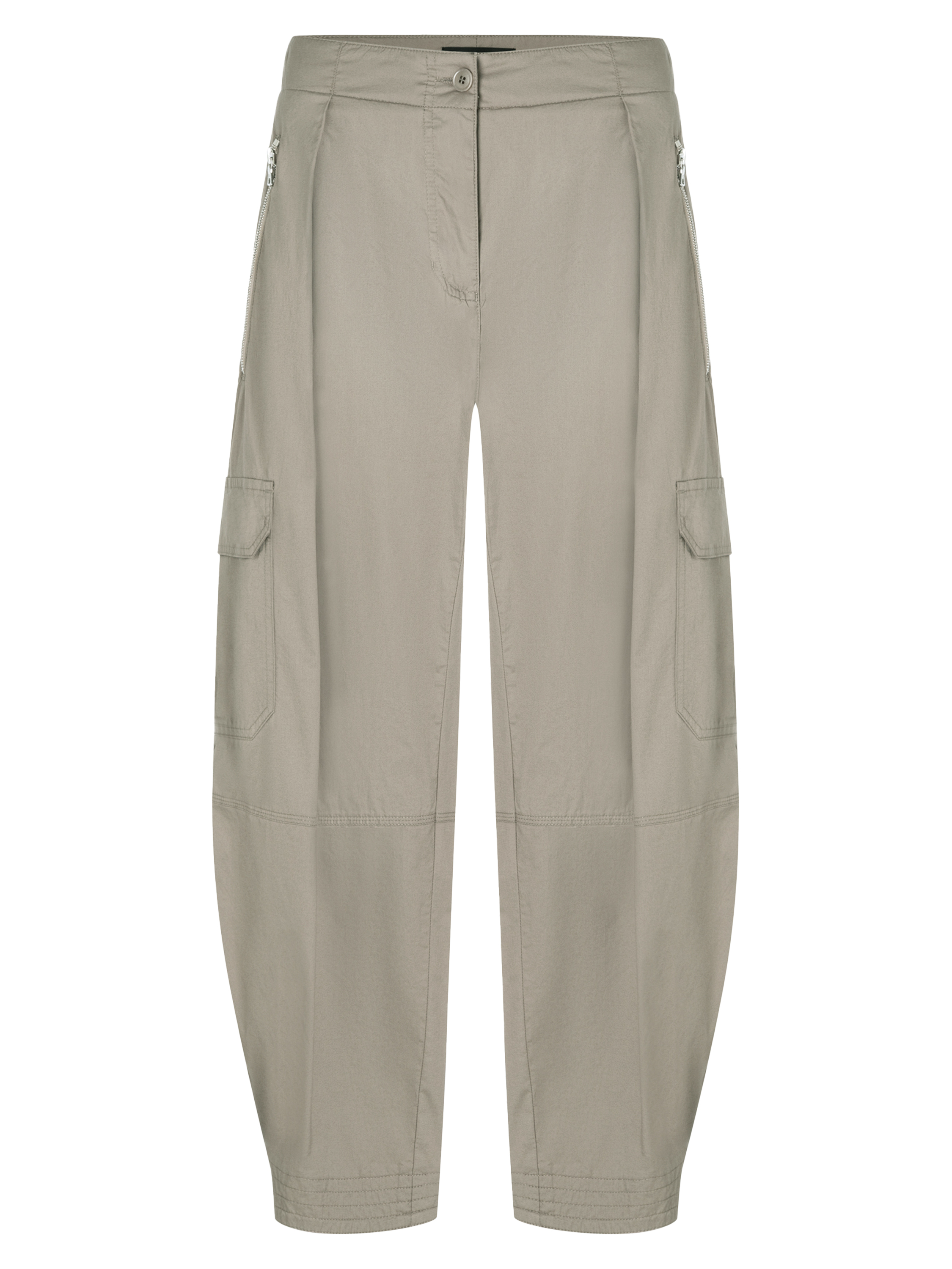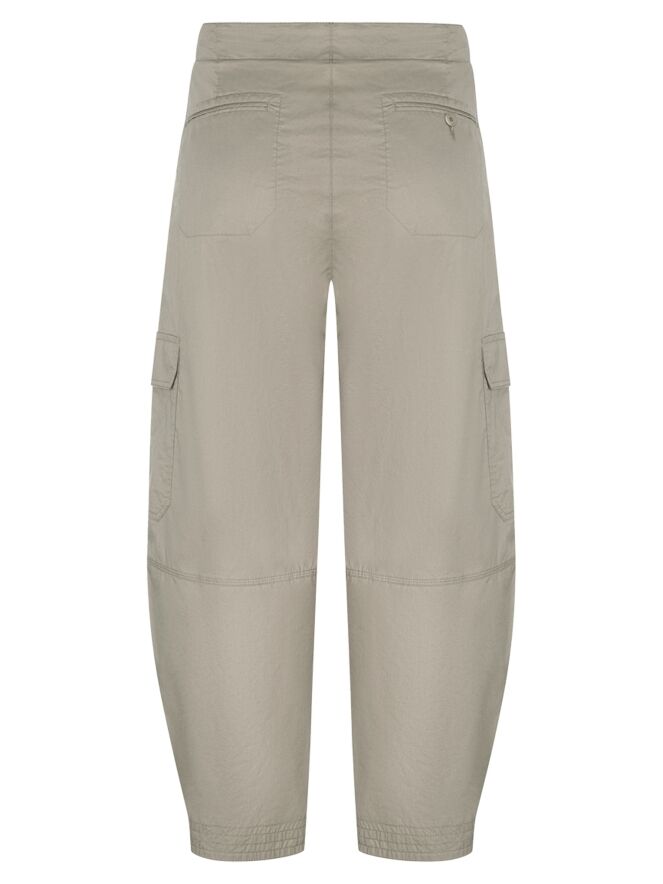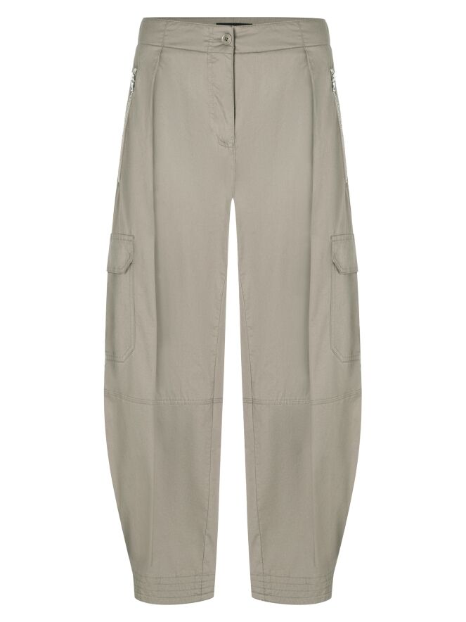 Pantalon cargo de Cambio en couleur taupe. Le pantalon est conçu dans un modèle à cinq poches avec un pli repassé au centre des jambes. En bas des jambes, il est doté d’un bouton-pression permettant de resserrer légèrement les jambes. Le pantalon possède des poches latérales et peut être lavé à la main.