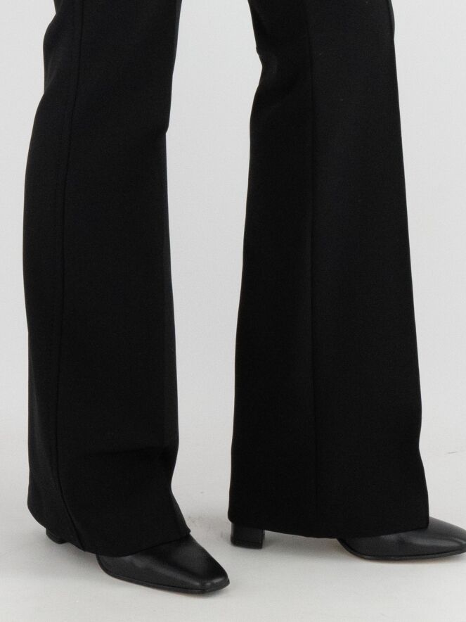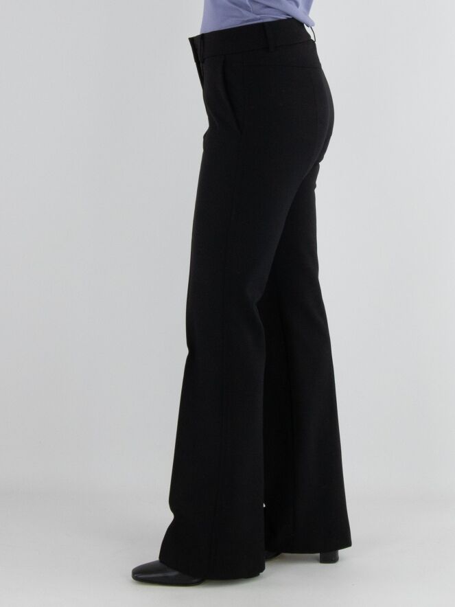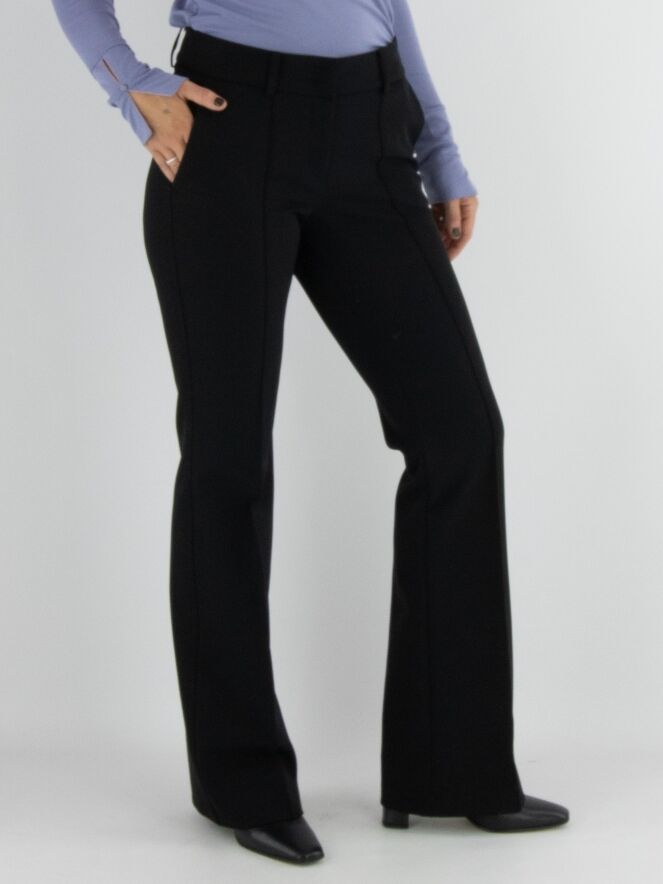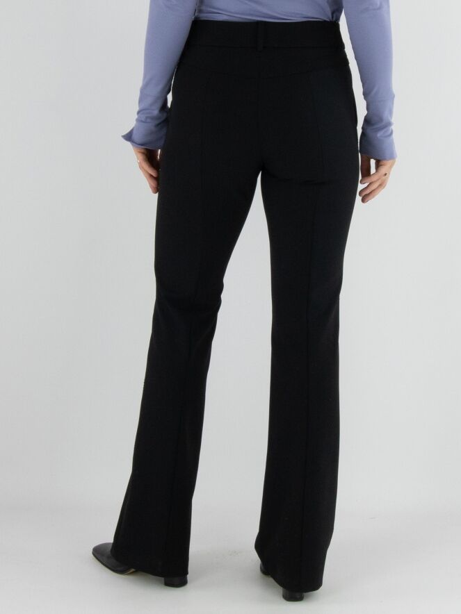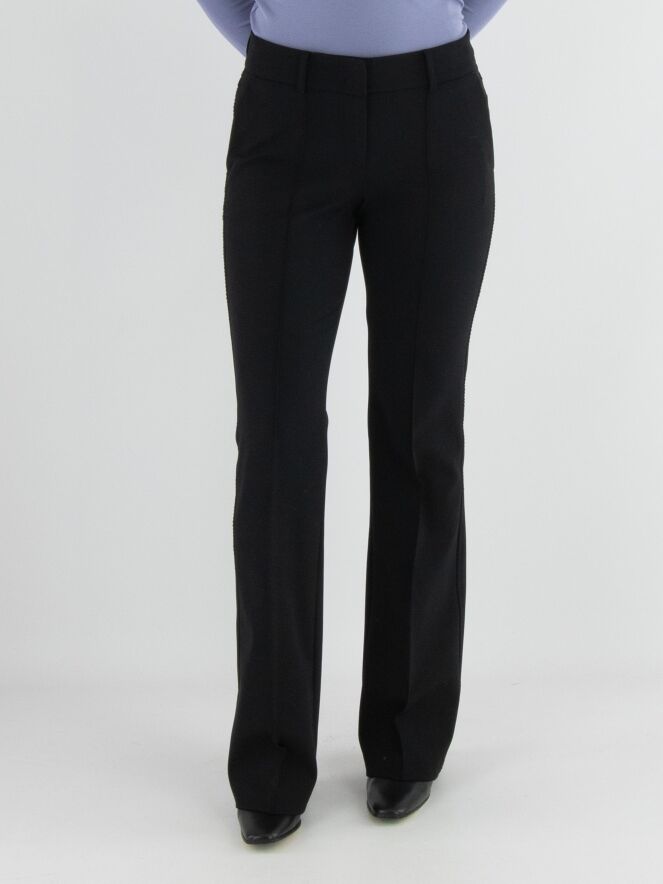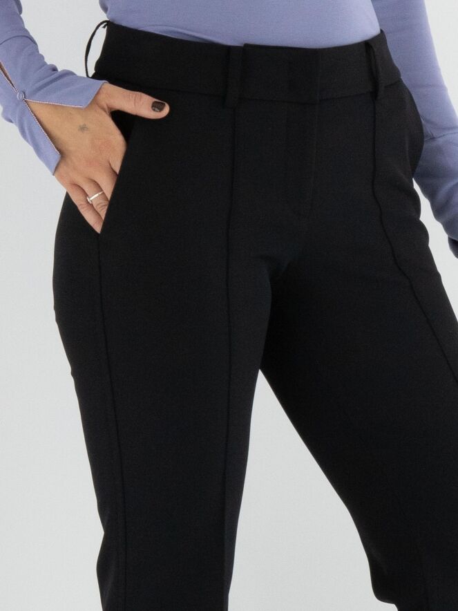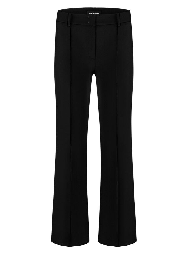 Pantalon de Cambio en noir. Une couture traverse le centre des jambes. Sur les côtés extérieurs, un fil décoratif apporte une touche élégante. Le pantalon possède des poches italiennes et peut être lavé à 30 degrés.
