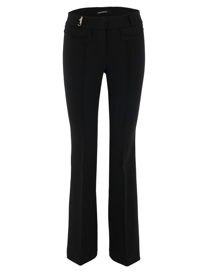 Un pantalon de Cambio de couleur noire. Une couture court au centre des jambes. Sous la ceinture, deux poches décoratives sont placées. Le pantalon possède des poches fendues et peut être lavé à 30 degrés.