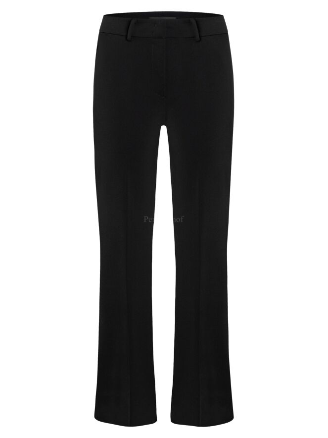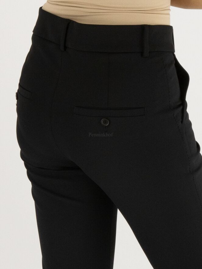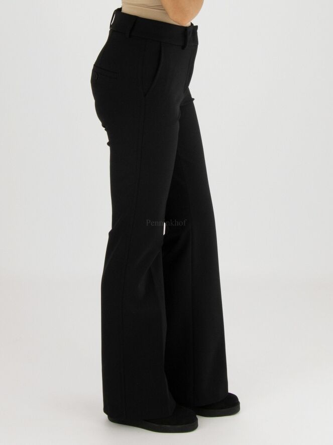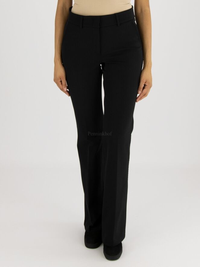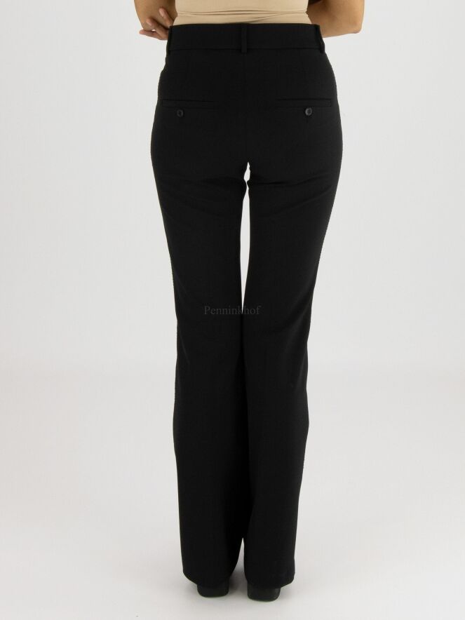 Pantalon à la jambe évasée de la marque Cambio, de couleur noire. La taille est élastiquée. Une couture centrale orne le milieu de la jambe. Lavage à la main.