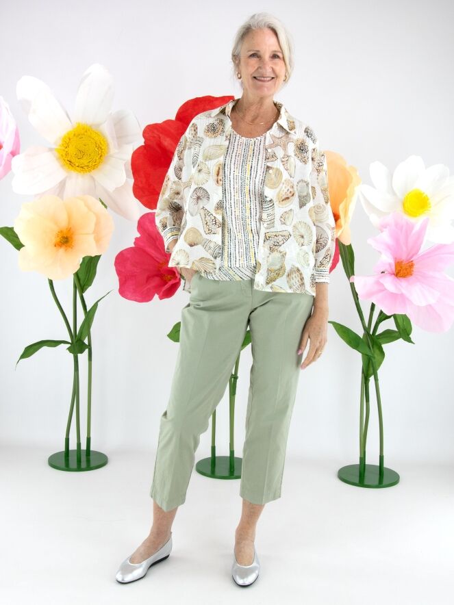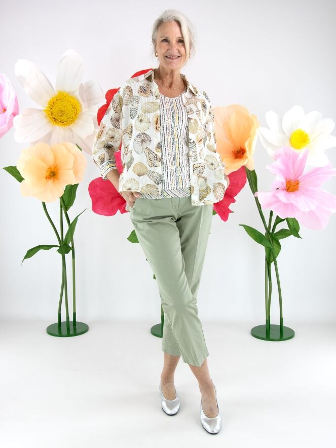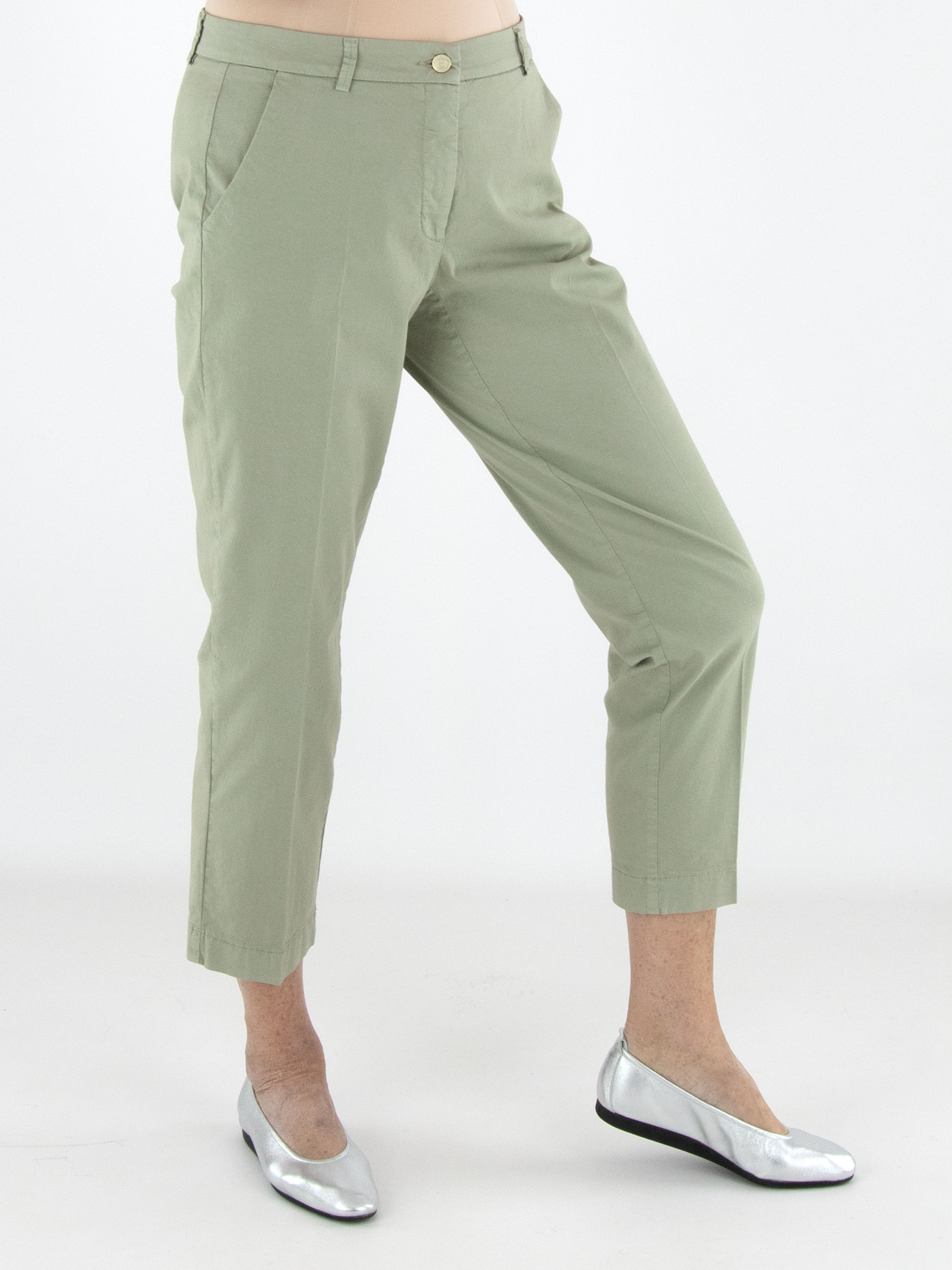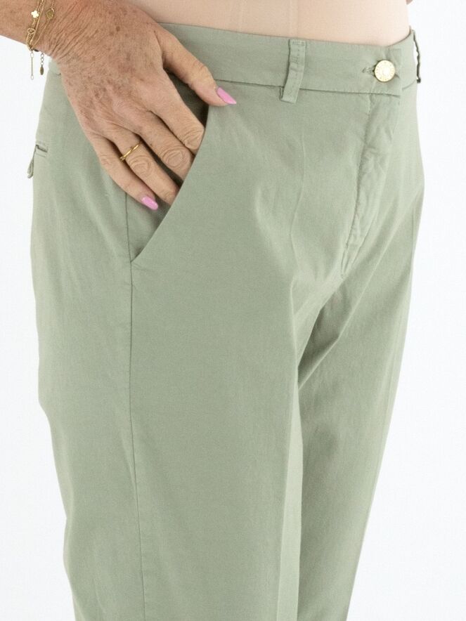 Pantalon de Cambio dans une douce teinte vert olive. Un pli marqué au centre des jambes apporte une allure raffinée et intemporelle. Doté de poches latérales, ce pantalon peut être lavé à 30 degrés.