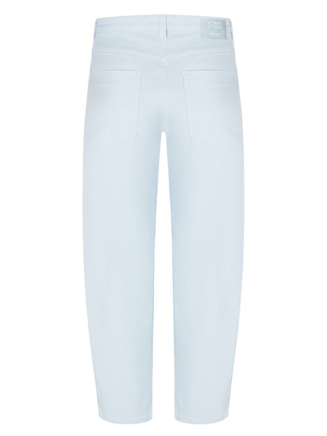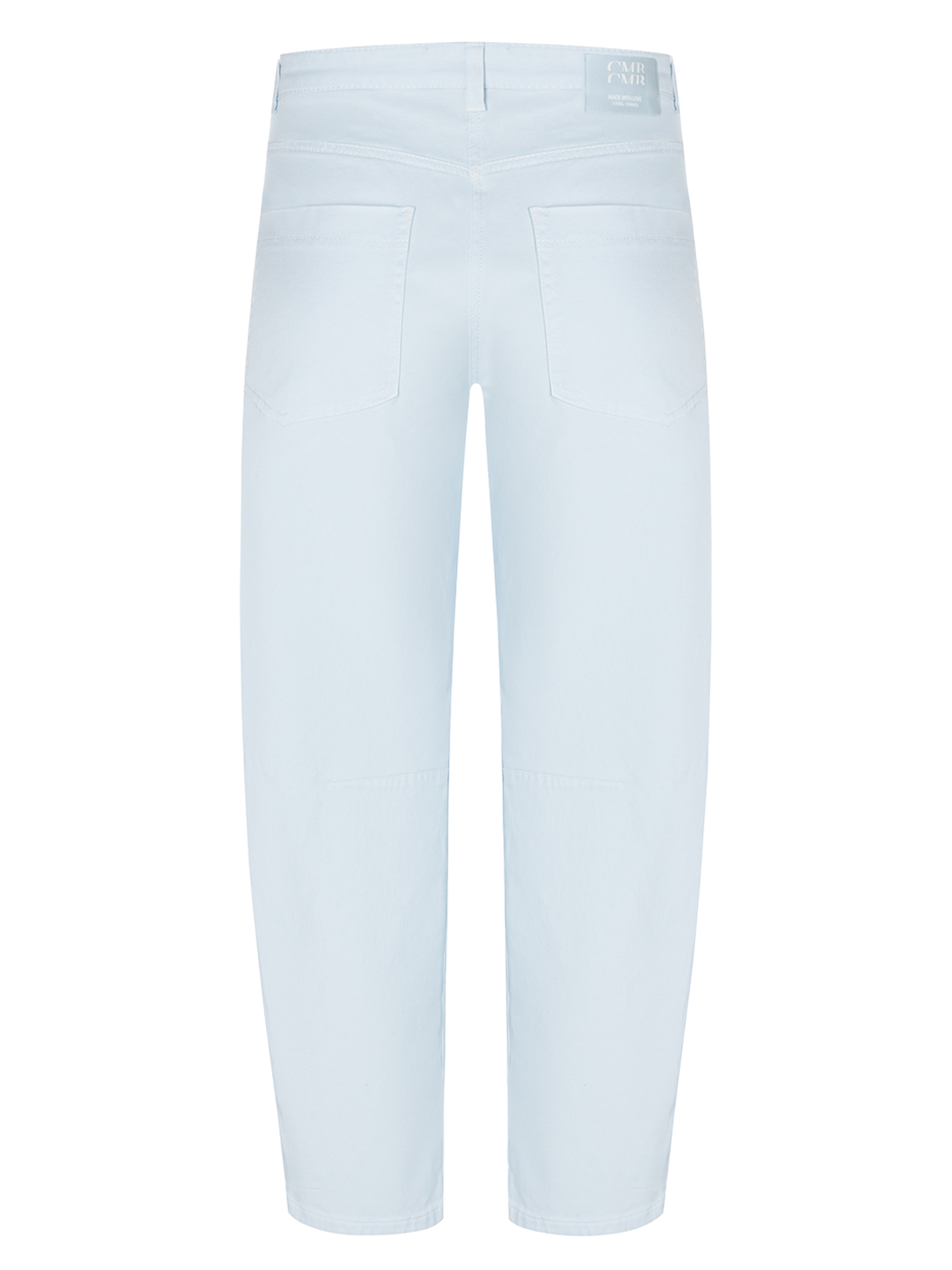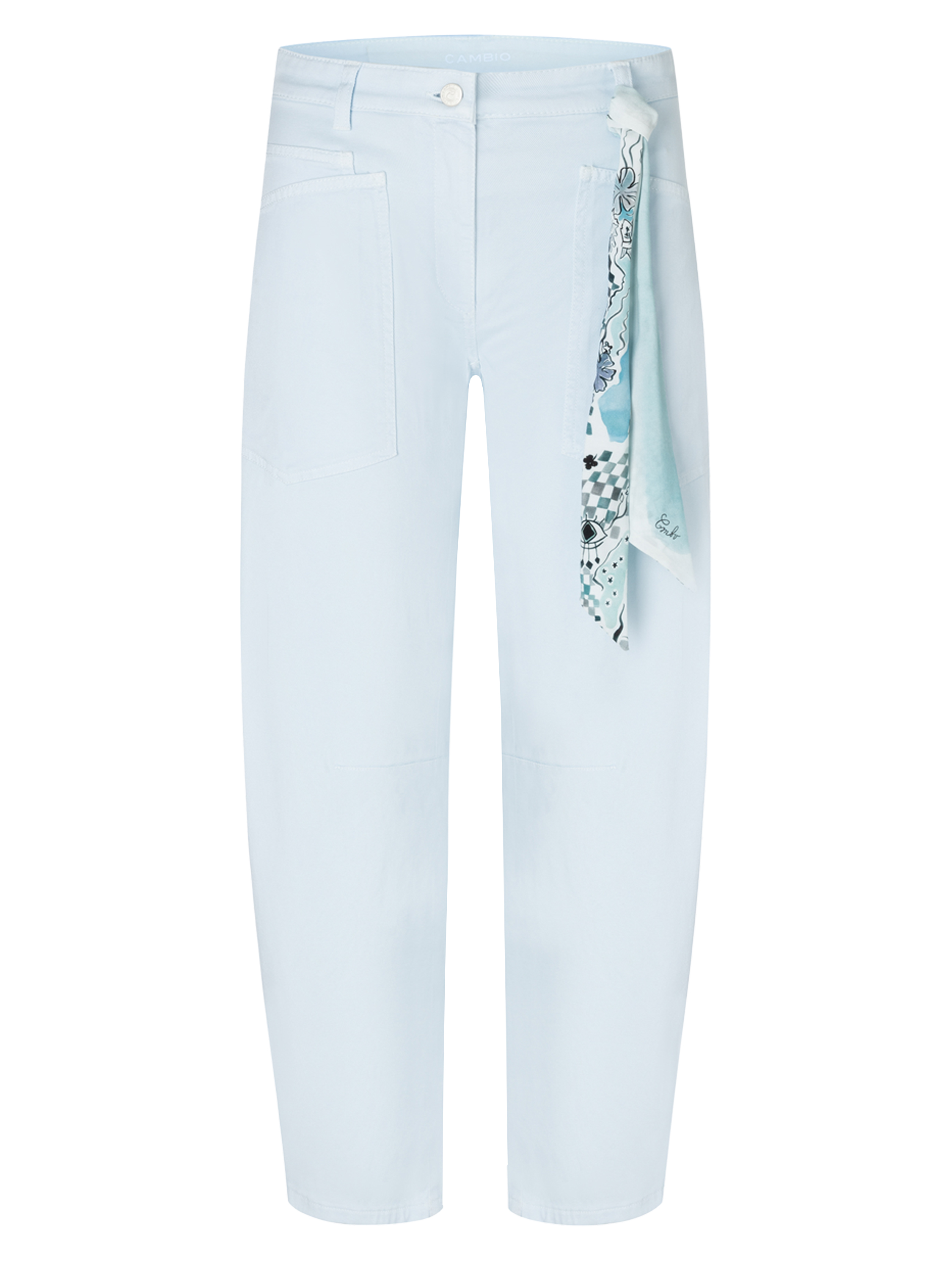 Un pantalon de Cambio dans une teinte bleu clair. Le pantalon est réalisé dans un modèle à 5 poches, avec des poches avant droites et profondes. Une couture est placée au niveau des genoux. Ce pantalon peut être lavé à 30 degrés.