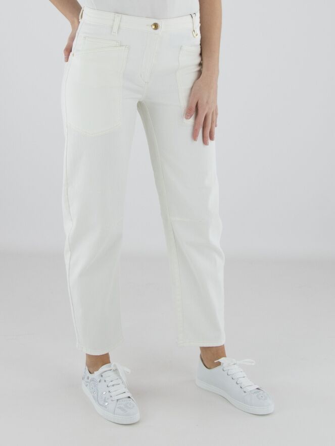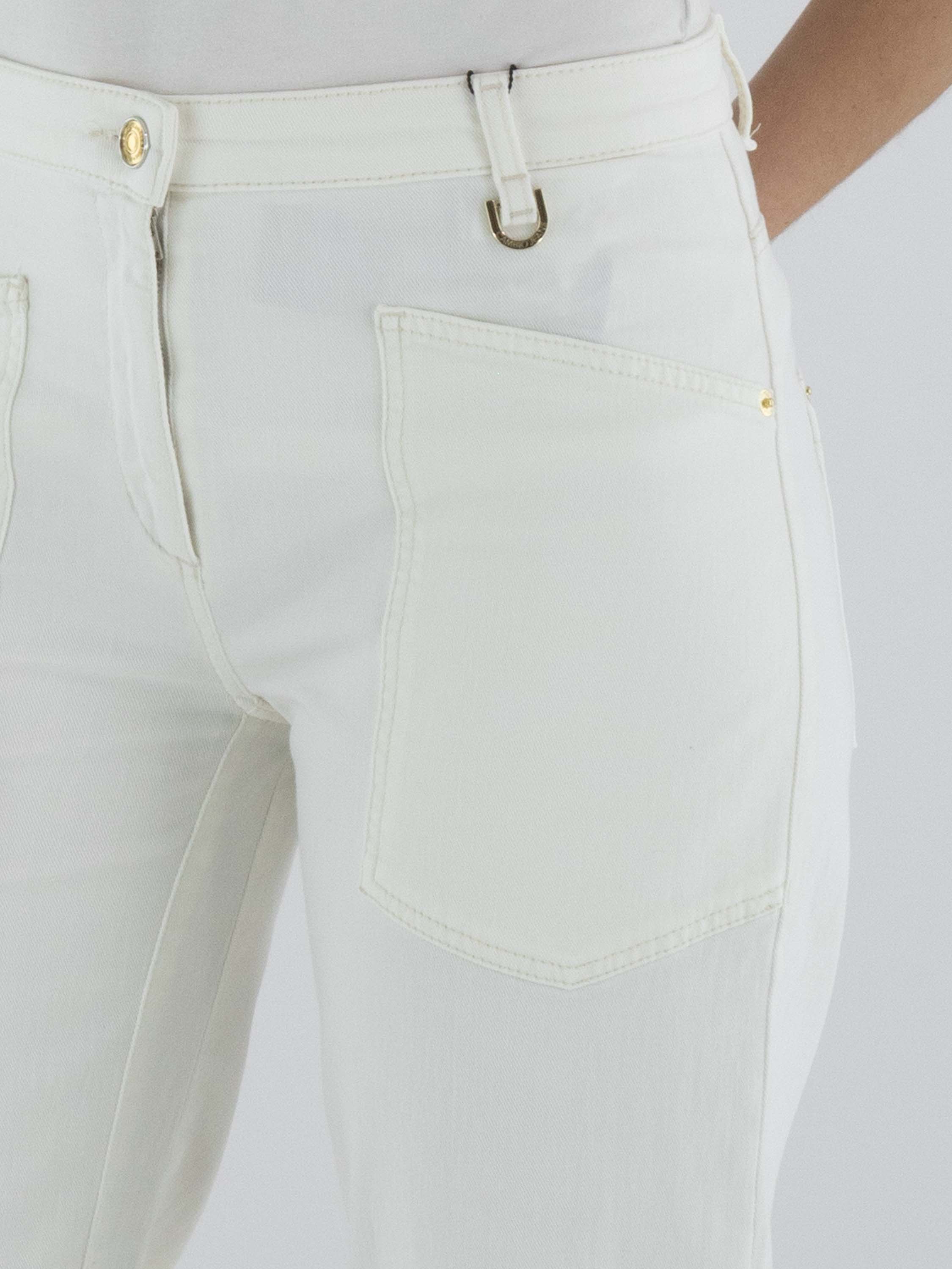 Jean de Cambio dans un modèle classique à 5 poches en blanc. Les poches avant larges et profondes apportent une allure contemporaine et confortable. Une courte couture de pince au niveau des genoux souligne subtilement la silhouette. Ce jean de créateur exclusif peut être lavé à 30 degrés.