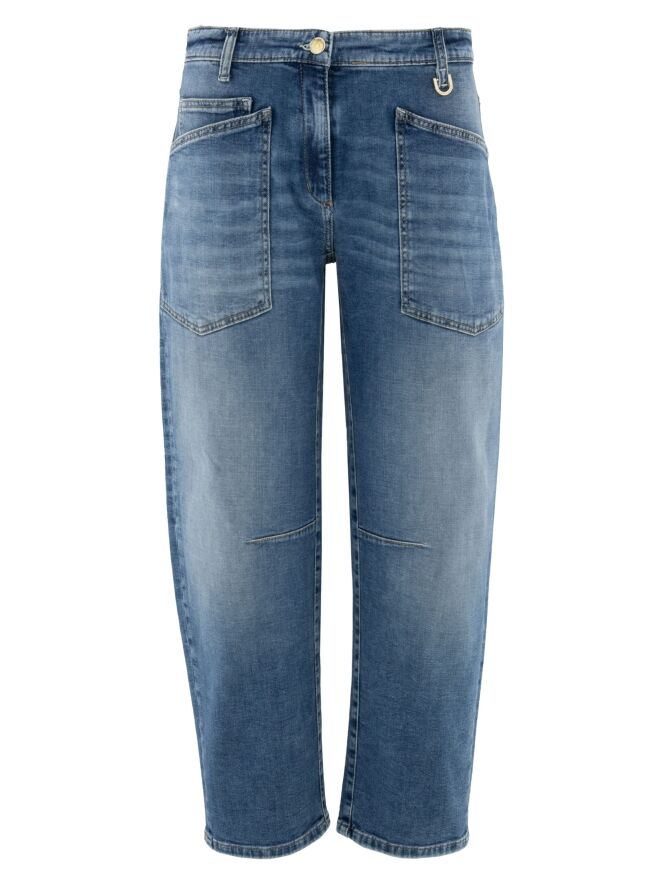Jean de Cambio dans une teinte denim classique. Ce modèle à 5 poches présente des poches légèrement abaissées, apportant une allure moderne et décontractée. Au niveau des genoux, une couture de pince à l’intérieur des jambes structure subtilement la silhouette. Ce jean peut être lavé à 30 degrés.