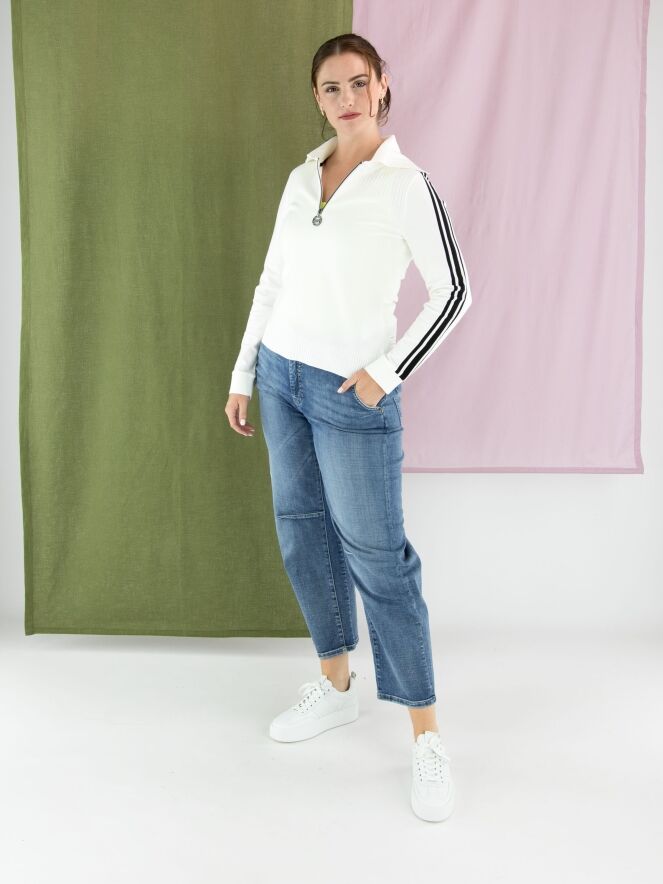Jean effet usé de la marque Cambio dans une teinte denim claire. Ce modèle est conçu dans une coupe 5 poches classique avec poches fendues. Les poches arrière sont légèrement abaissées. Une couture de forme est placée au niveau des genoux. Ce jean peut être lavé à 30 degrés.