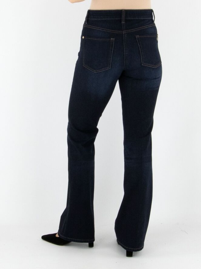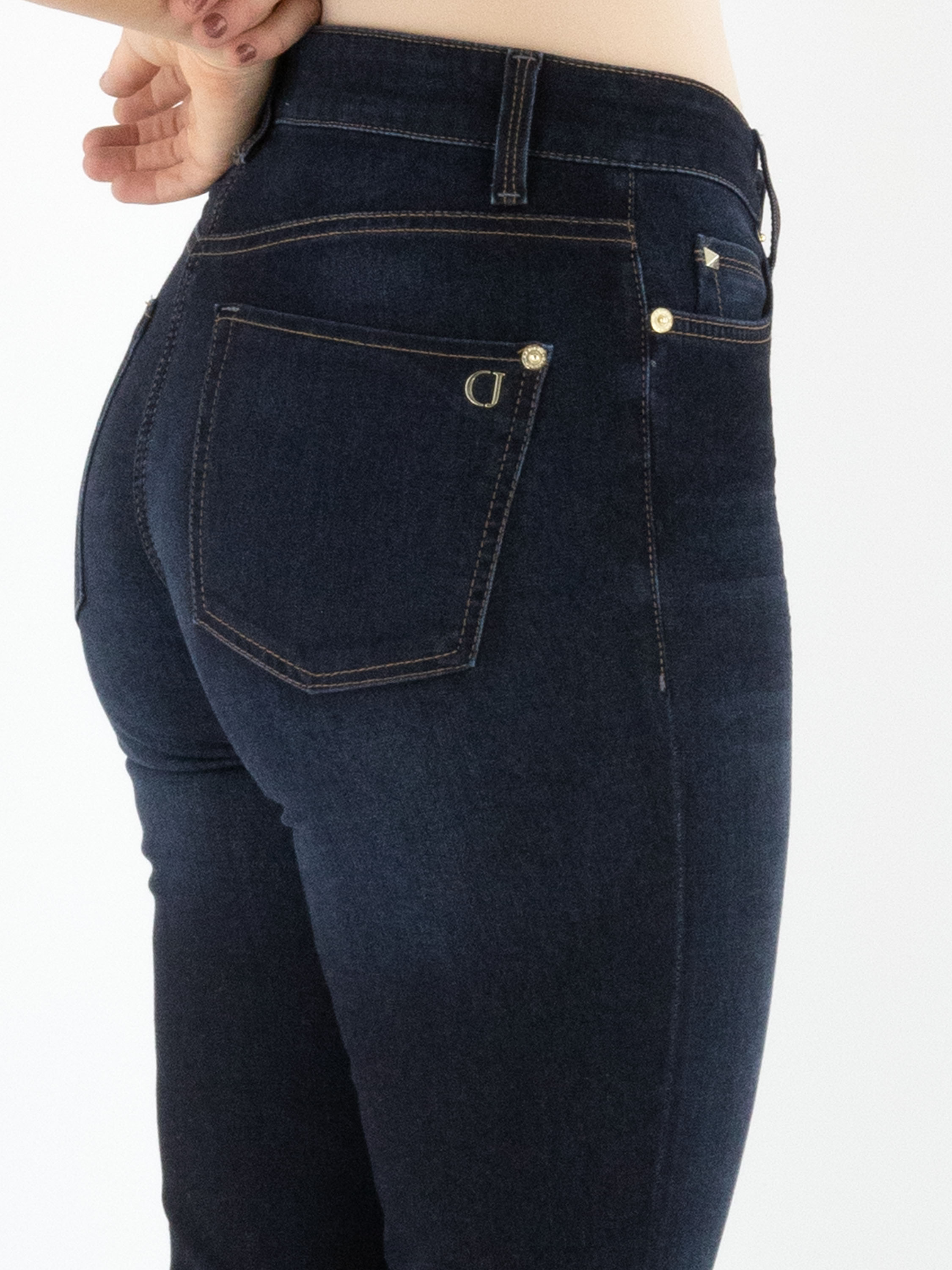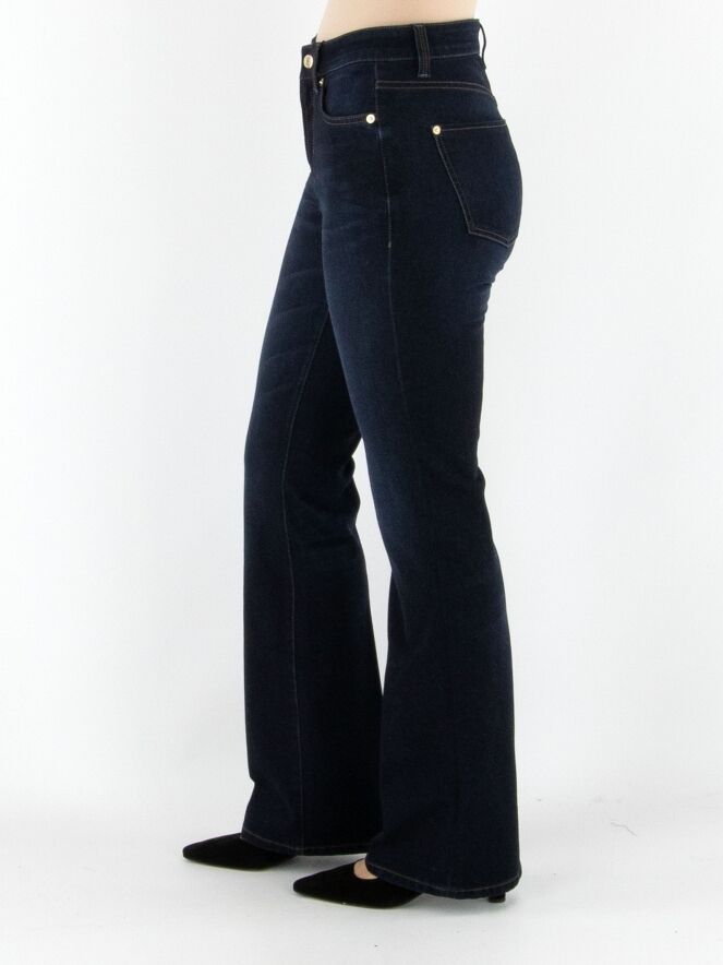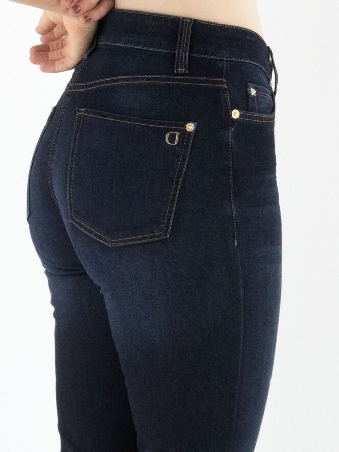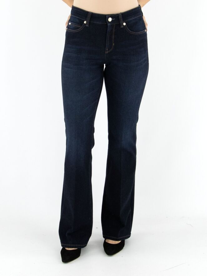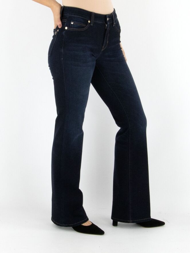 Un jean évasé en denim foncé de Cambio. Ce modèle adopte une coupe classique à 5 poches et peut être lavé à 30 degrés.