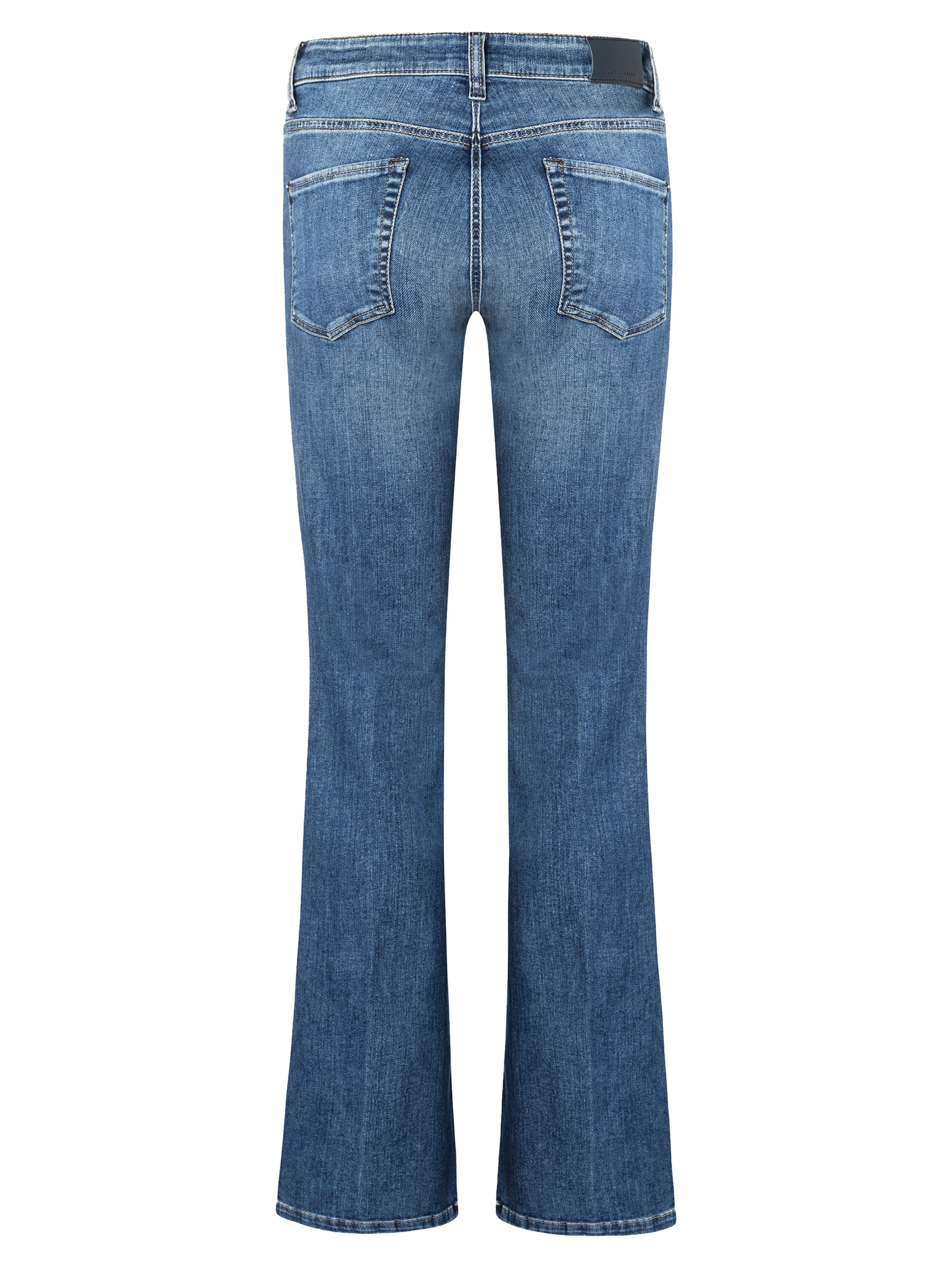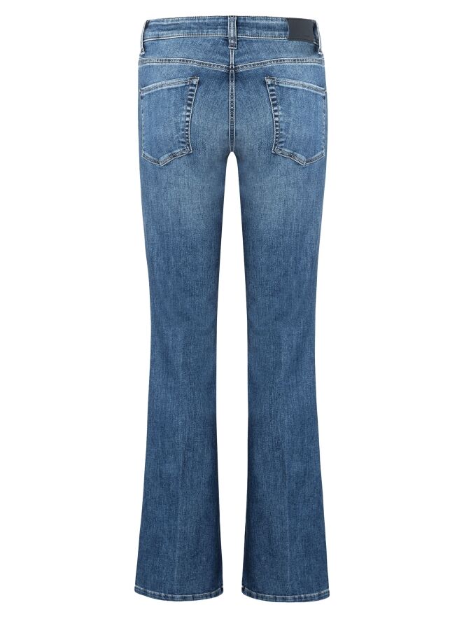 Un jean évasé de Cambio en modèle 5 poches. Le jean présente un effet usé. Les coutures sont de couleur cognac. Ce jean peut être lavé à 30 degrés.