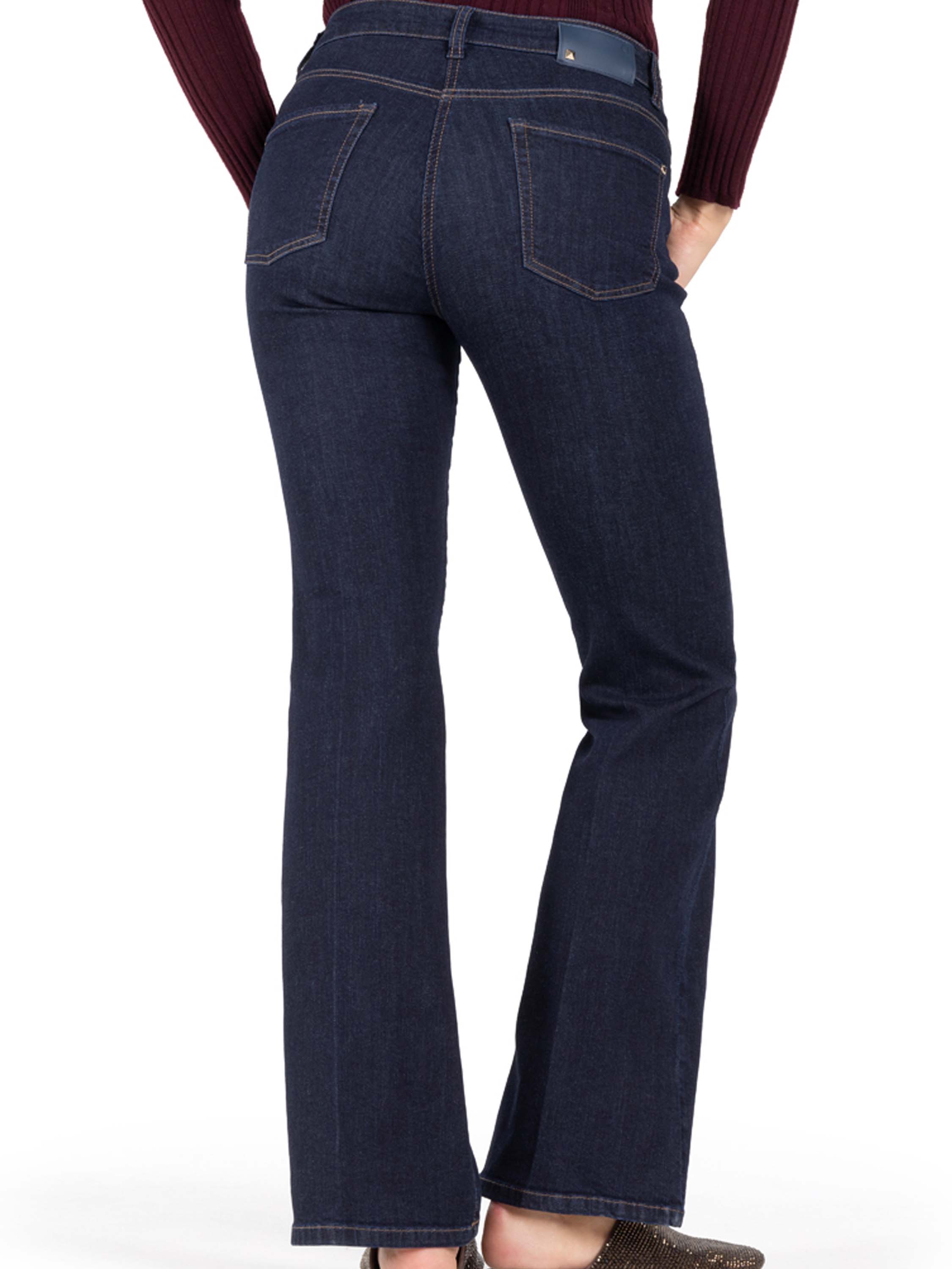 Un jean évasé de Cambio dans une teinte denim foncé. Le modèle est conçu dans une coupe 5 poches classique et peut être lavé à 30 degrés.