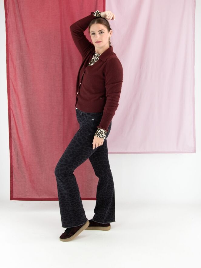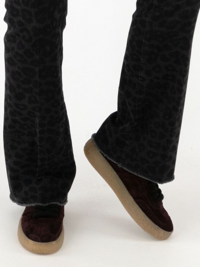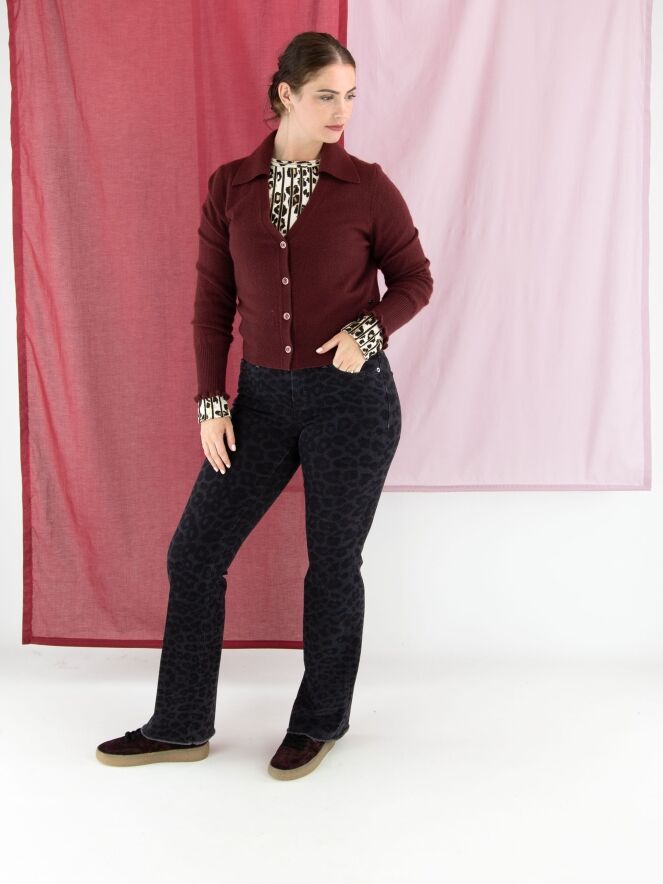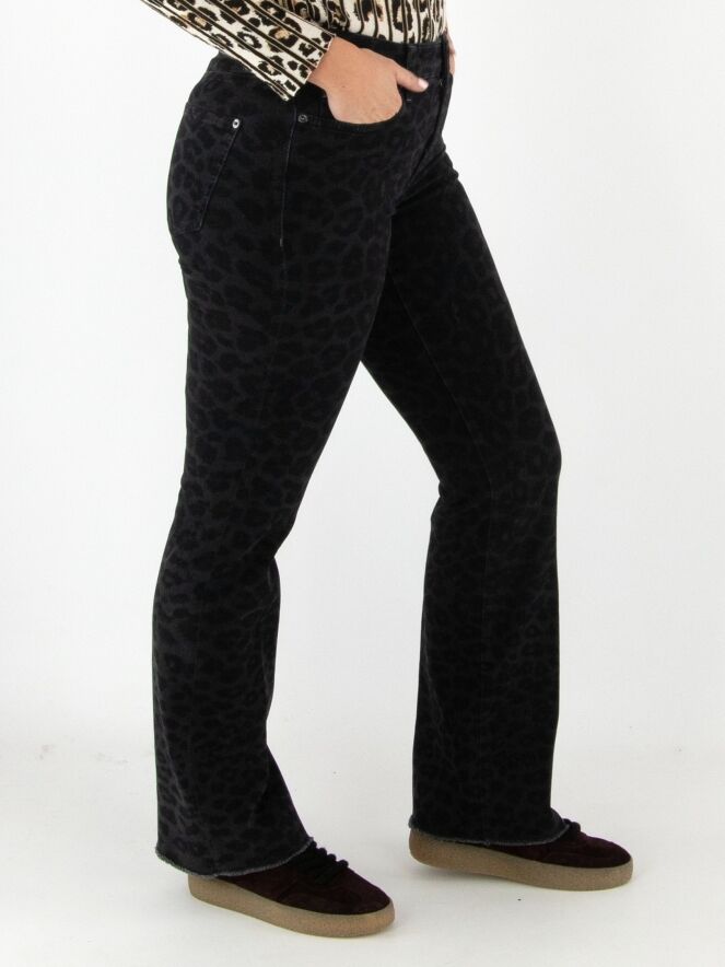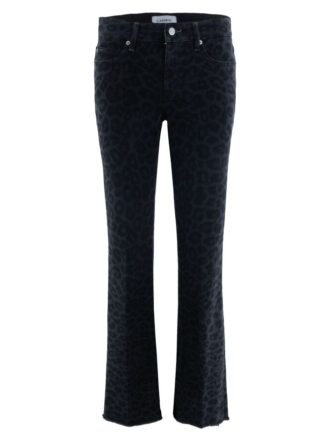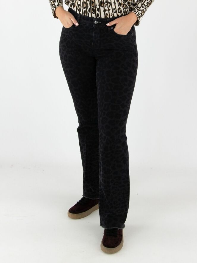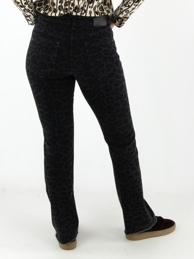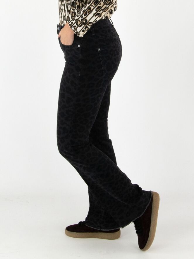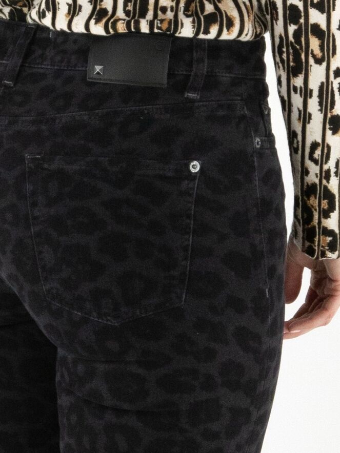 Jean Cambio avec un imprimé léopard dans différentes nuances de gris et de noir. Ce modèle à cinq poches peut être lavé à 30 degrés.