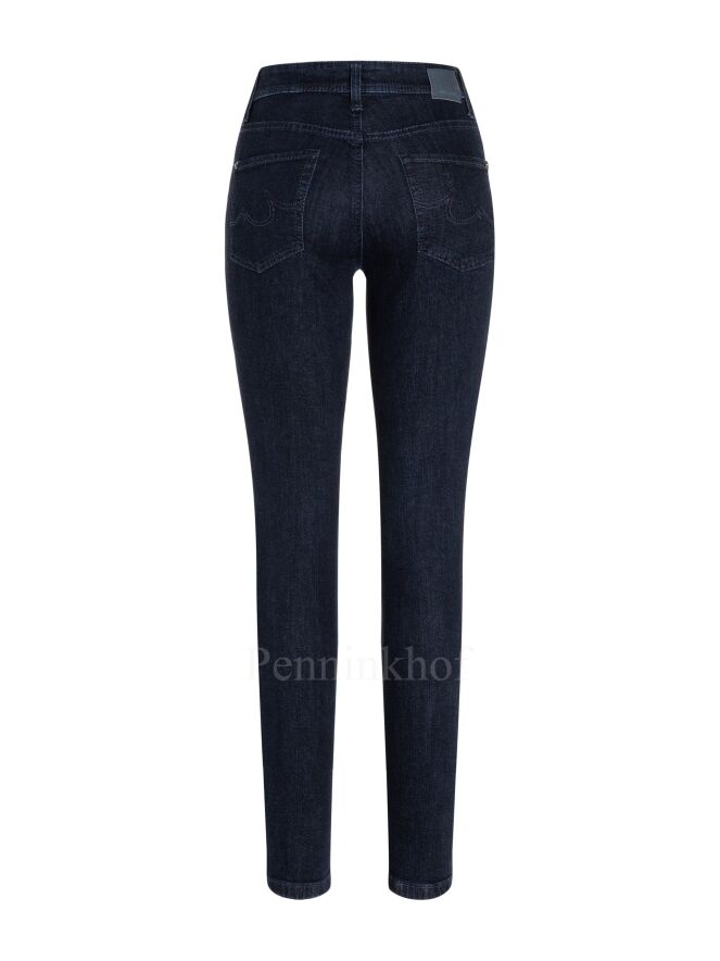 Jean de la marque Cambio, de couleur bleu foncé. Modèle à 5 poches. Lavage à 30 degrés.
