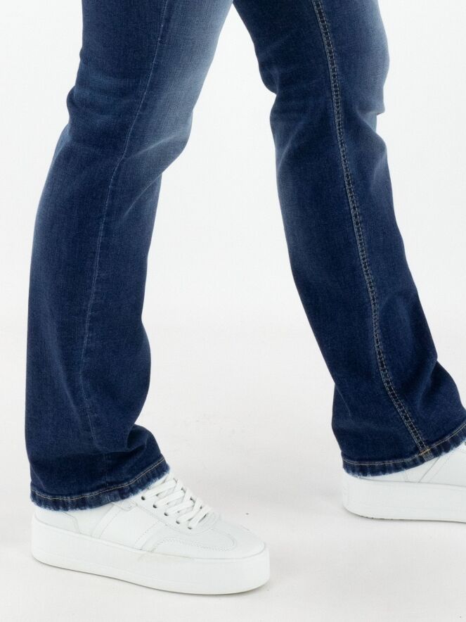 Un jean stonewashed effet used de Cambio dans une teinte denim classique. Conçu dans une coupe 5 poches, il présente des ourlets délicatement effilochés qui apportent une allure moderne et décontractée. Ce jean peut être lavé à 30 degrés.