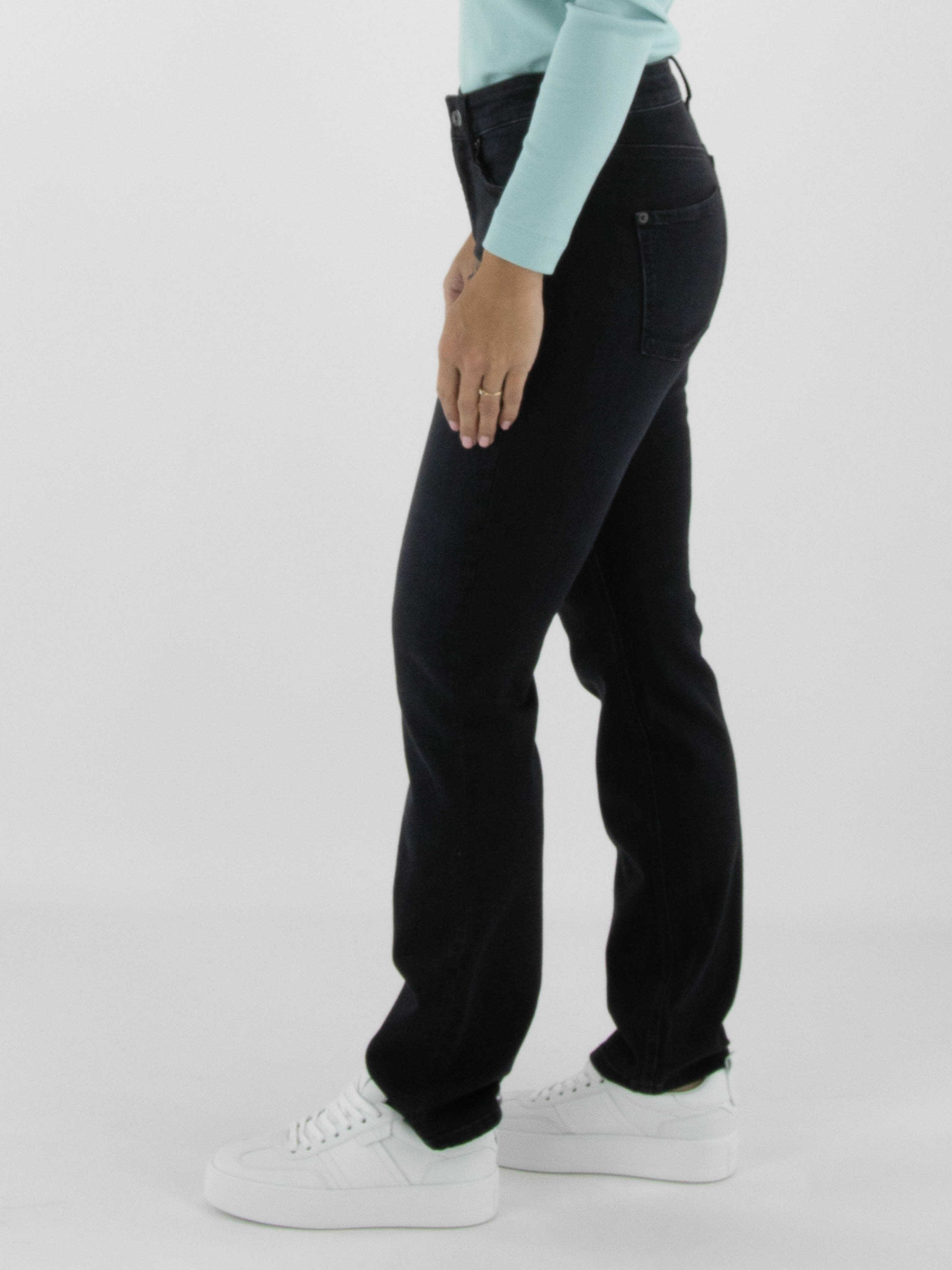 Un jean de Cambio en noir. Ce modèle adopte une coupe classique à 5 poches et peut être lavé à 30 degrés.
