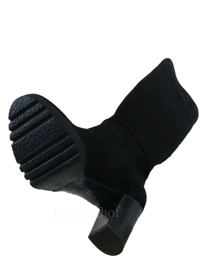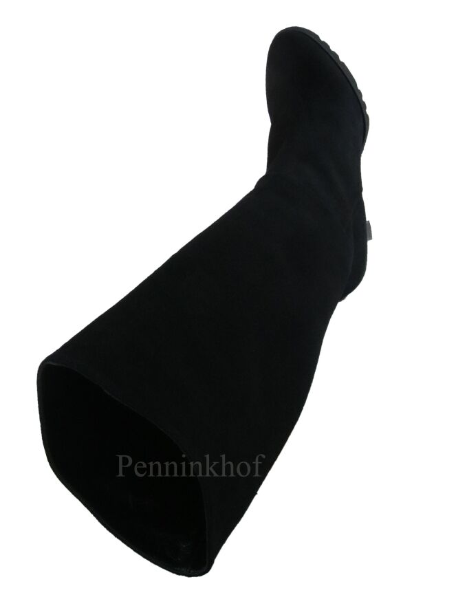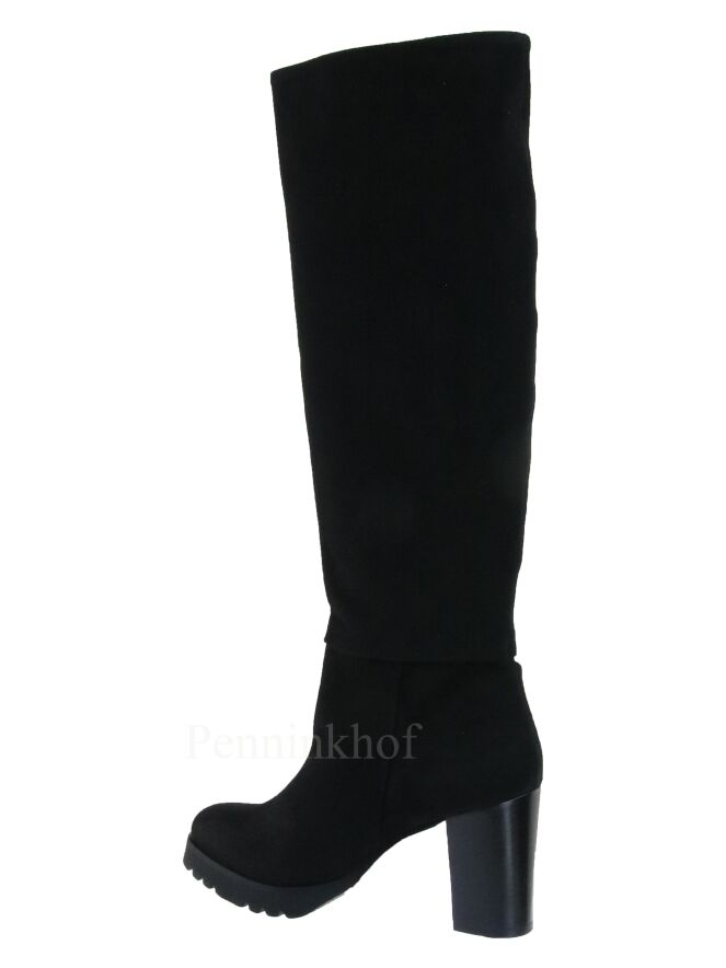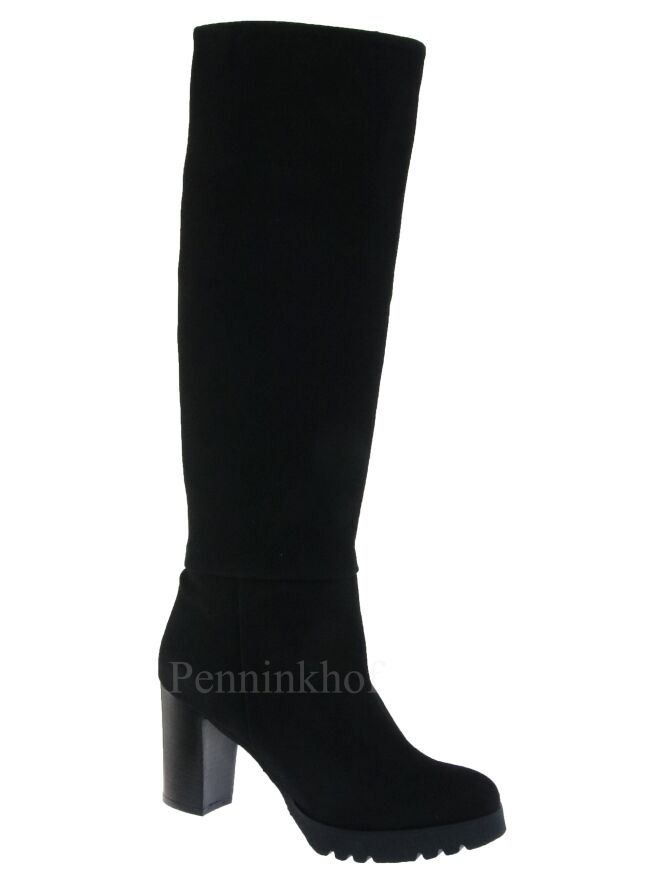 Botte haute de luxe de la marque Cervone, de couleur noire. La botte présente une semelle compensée crantée et un talon carré élégant. Une couture horizontale orne la botte à hauteur de la cheville. Intérieur doublé e cuir.