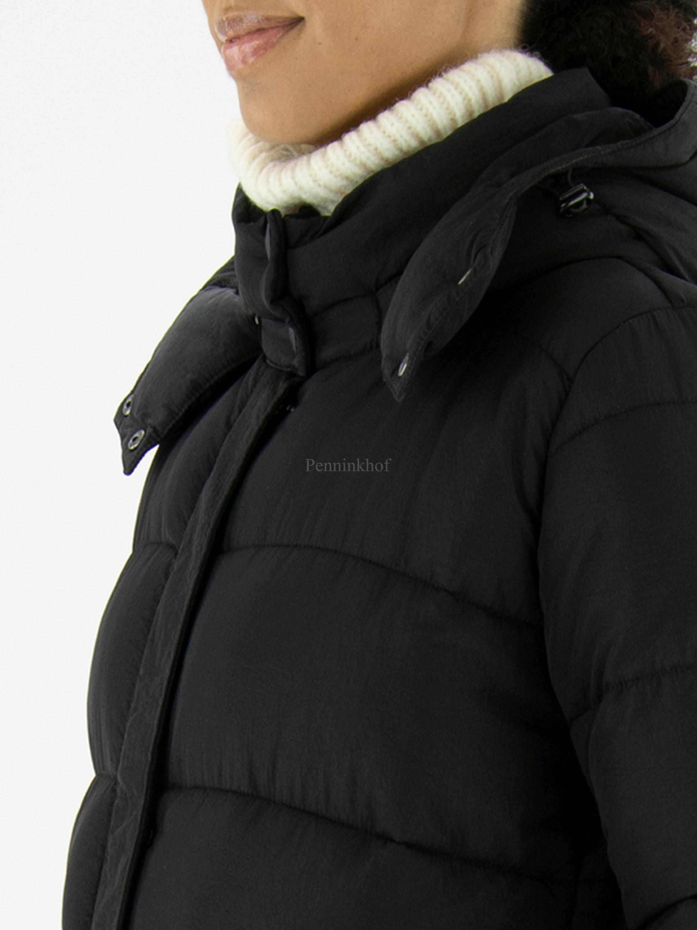 Une doudoune amidonnée de Fuchs Schmitt en noir. La doudoune est dotée d'une capuche amovible et peut être lavée à 30 degrés.