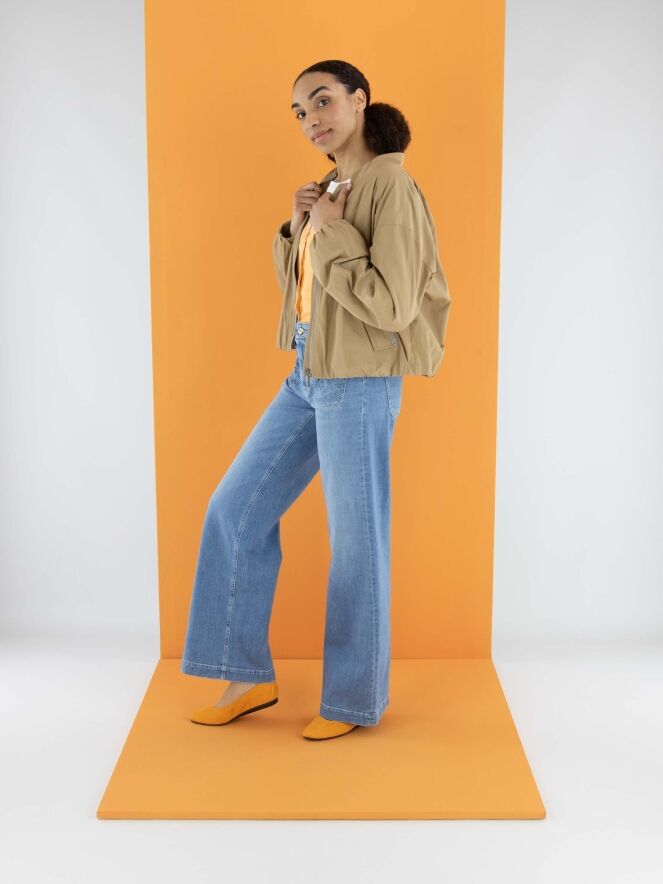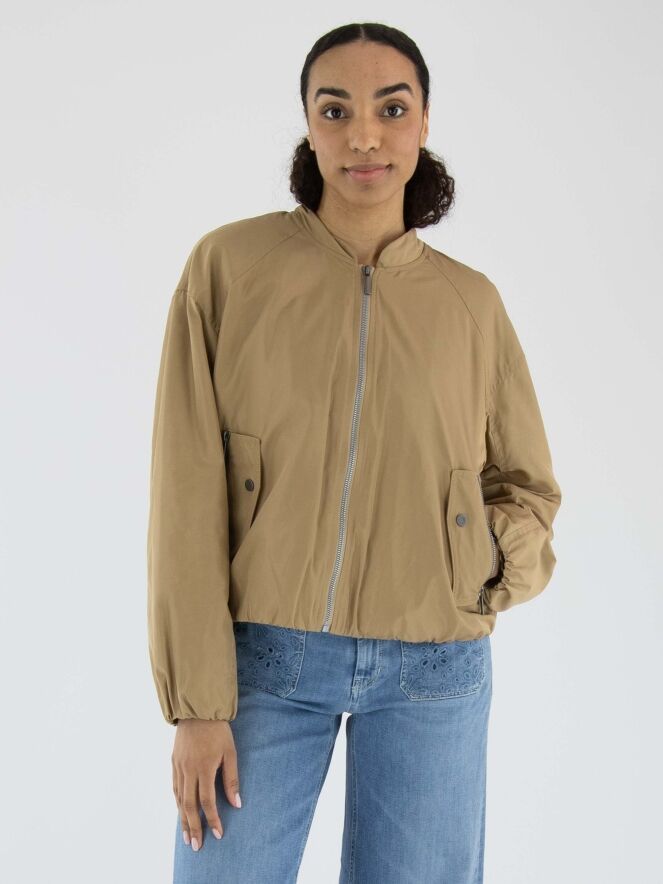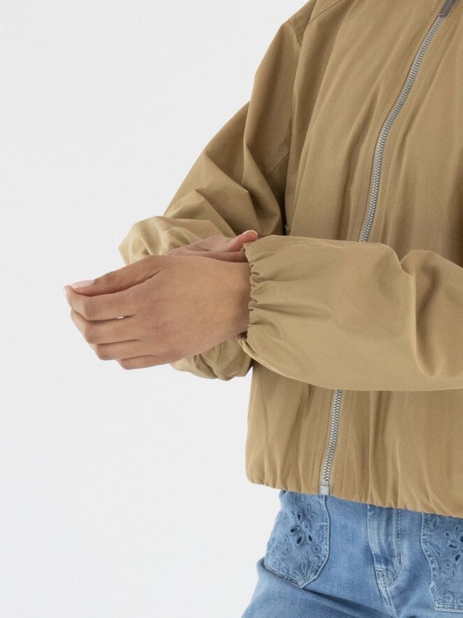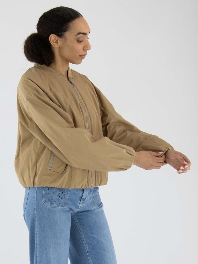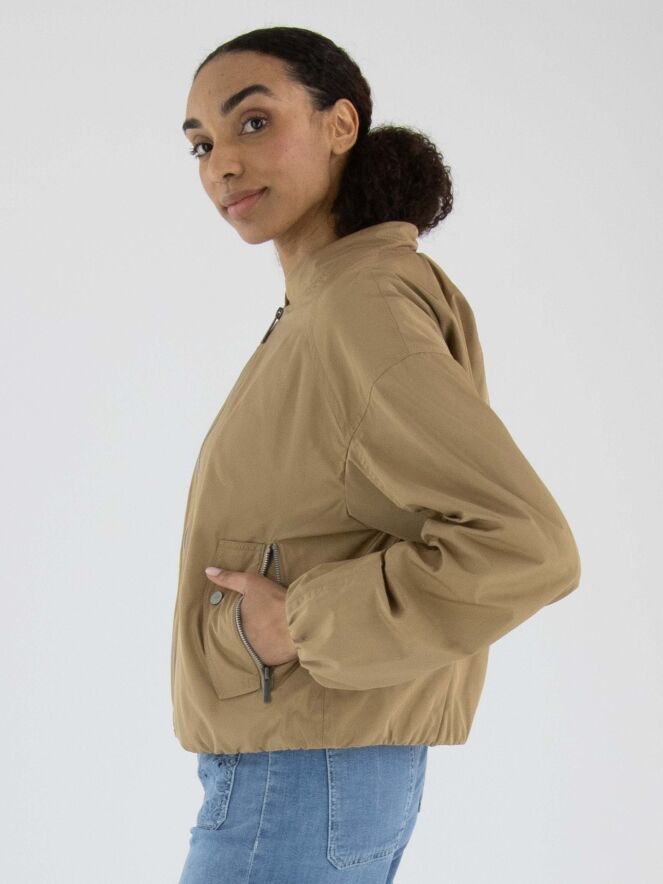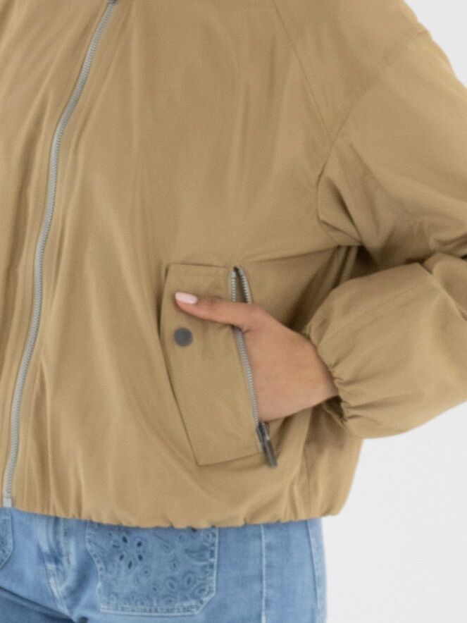 Un manteau court de Fuchs Schmitt en couleur camel. La fermeture éclair et les fermetures des poches sont en gris clair. Les poches sont dotées d’un rabat décoratif avec un bouton-pression. Un bord élastique est présent en bas du manteau et aux extrémités des manches longues. Ce manteau peut être lavé à 30 degrés.
