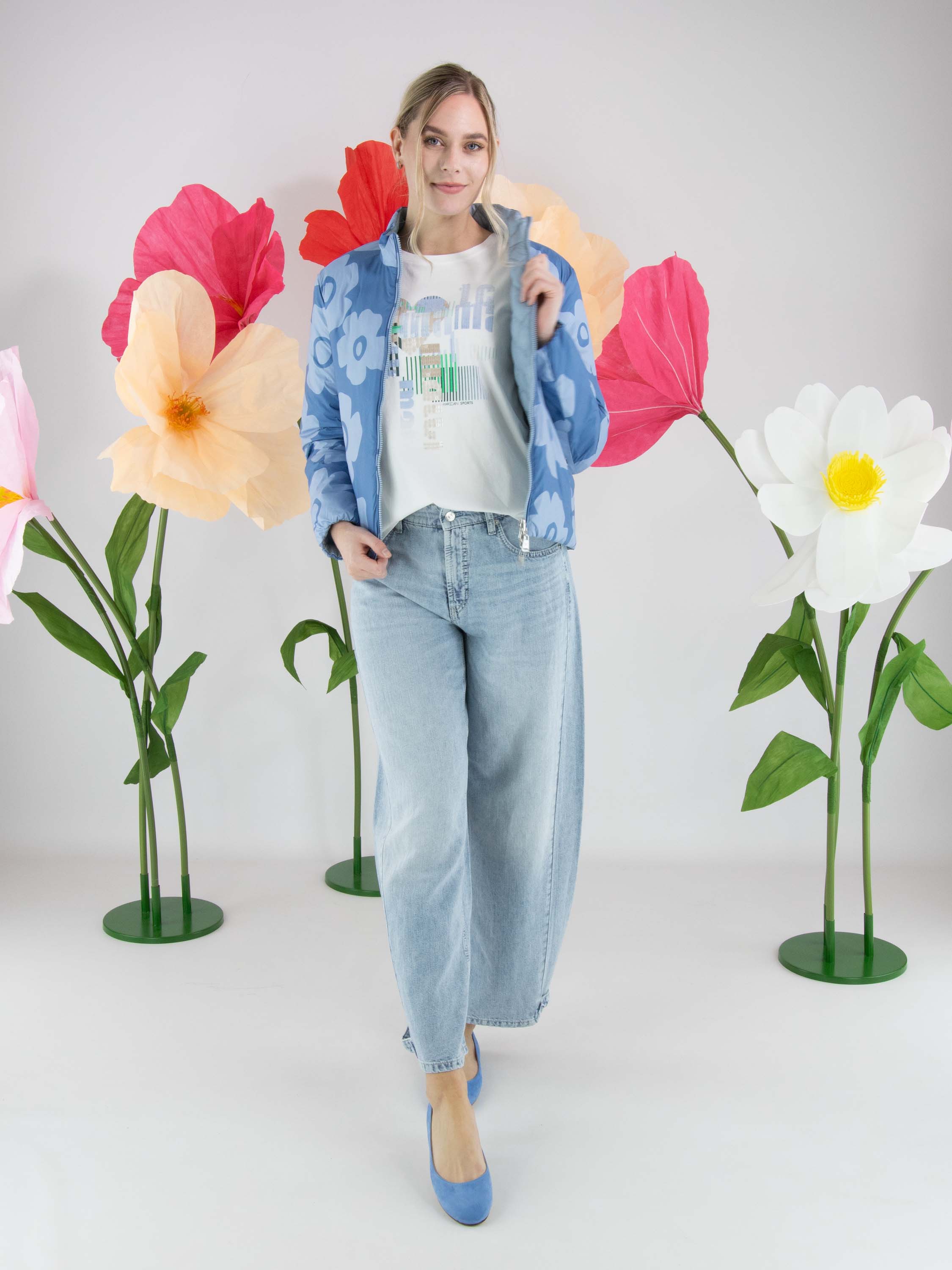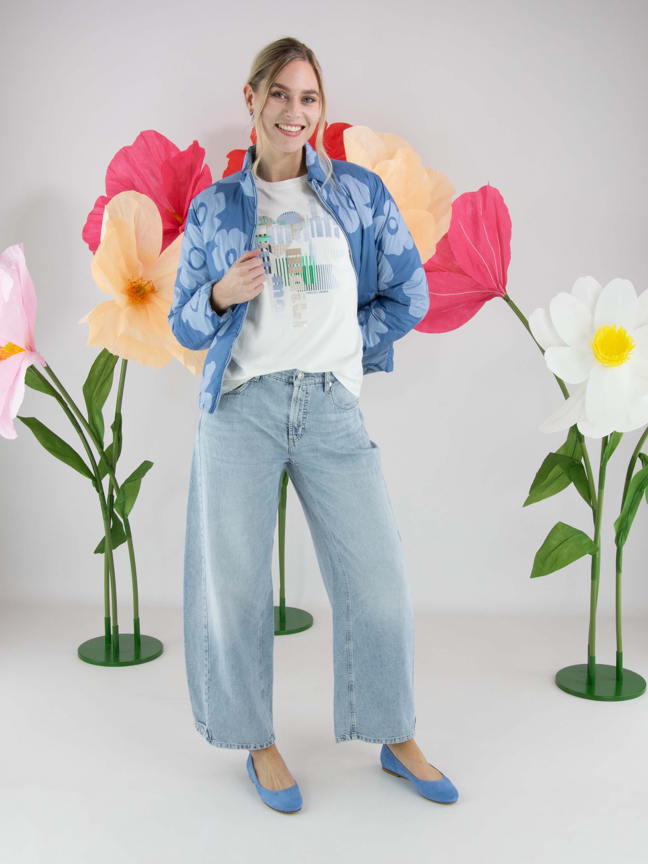 Manteau de Fuchs Schmitt avec un imprimé floral raffiné dans deux nuances de bleu. Doté d’une fermeture zippée et de poches latérales pratiques, il offre une allure confortable et contemporaine. Ce manteau féminin exclusif peut être lavé à 30 degrés.