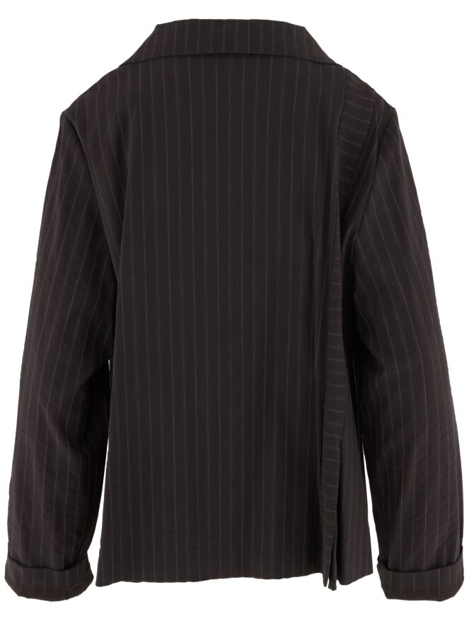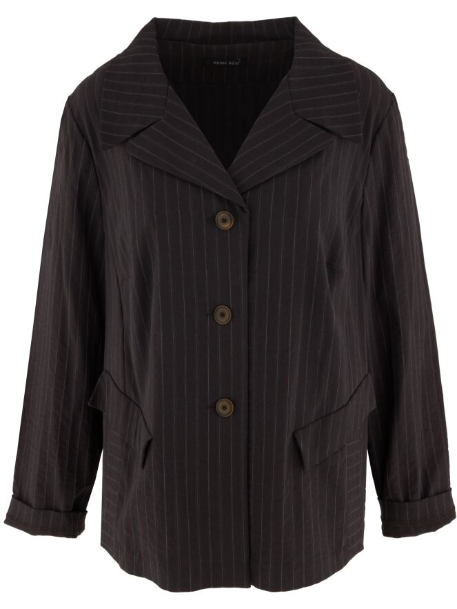Un blazer de Heide Ost dans un motif à rayures tennis avec les couleurs marron moka et gris clair. Le blazer possède une fermeture à 3 boutons. À l'avant, il y a des rabats décoratifs pour des fausses poches. Ce blazer peut être lavé à 30 degrés.