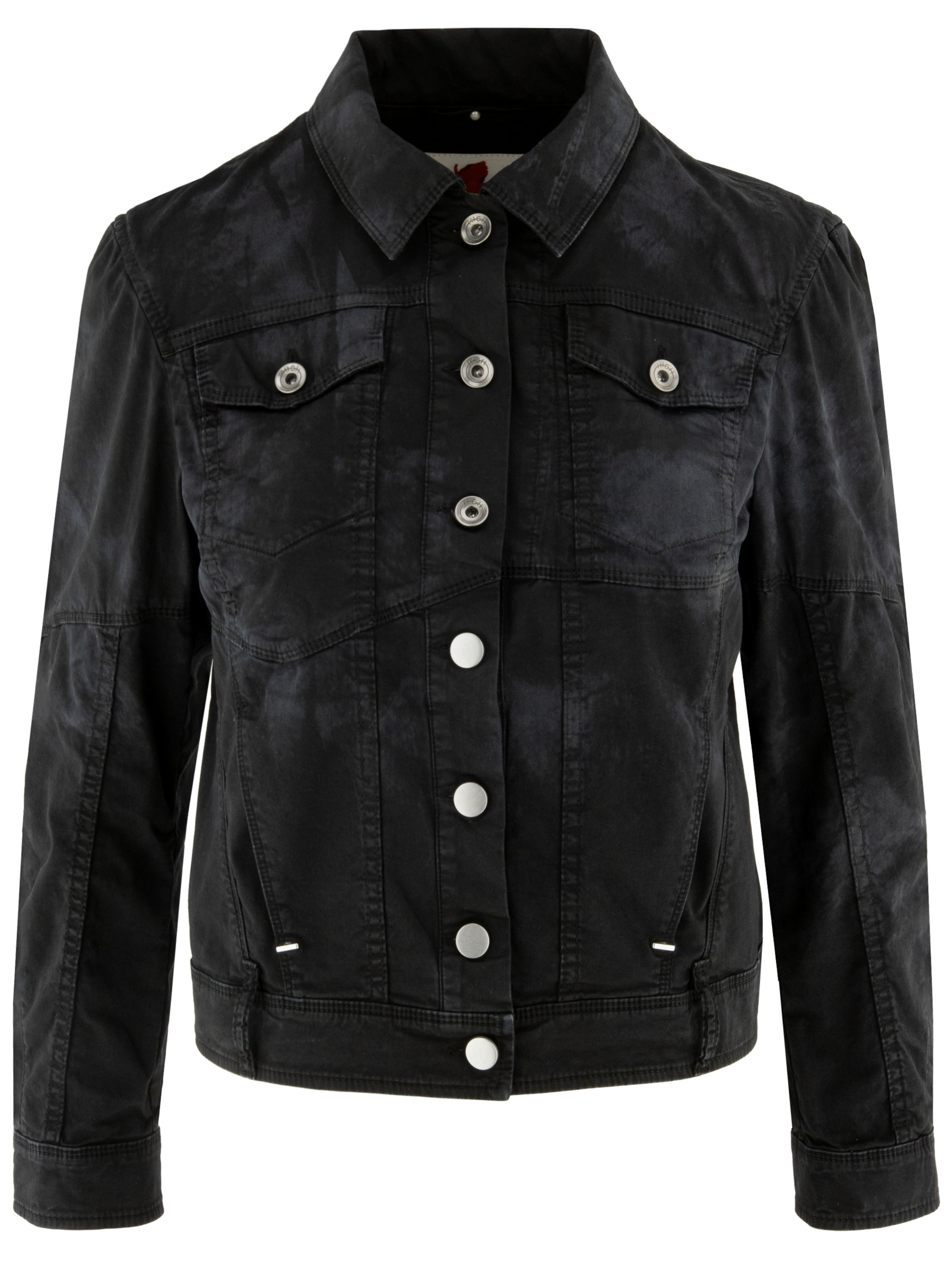 Blazer court en denim de High avec un imprimé moucheté ton sur ton dans plusieurs nuances de noir. Le blazer se ferme par des boutons et possède des poches latérales à hauteur de taille. Son design contemporain lui confère une allure à la fois décontractée et raffinée. Ce blazer peut être lavé à 30 degrés.