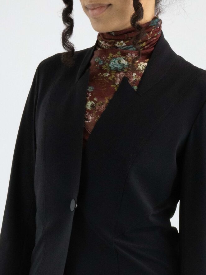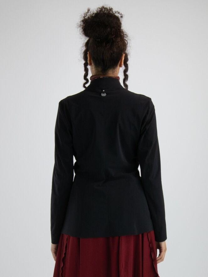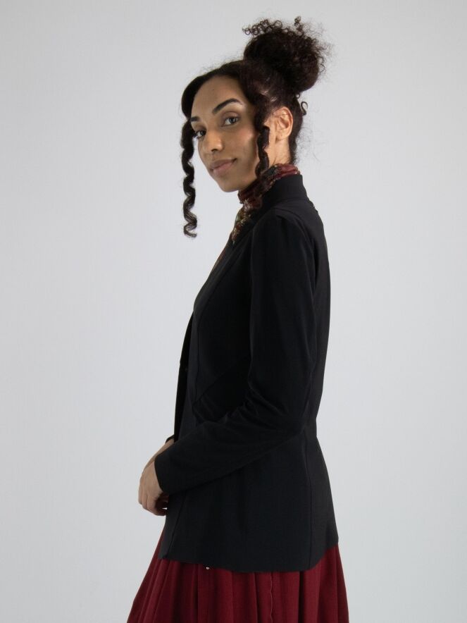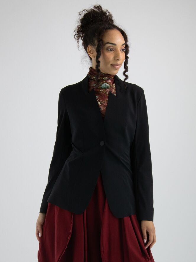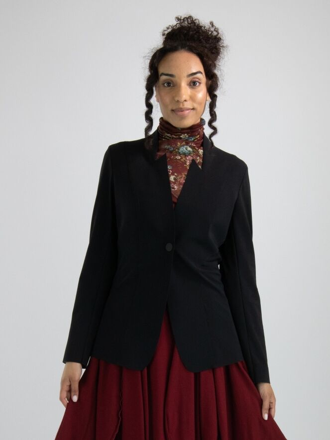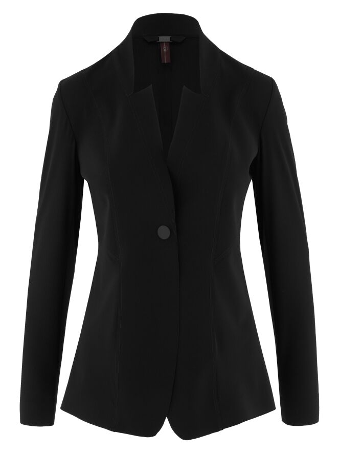 Un blazer de luxe de High en noir. Le blazer est légèrement cintré, possède une fermeture avec un bouton-pression unique et est non doublé. Ce blazer peut être lavé à la main.
