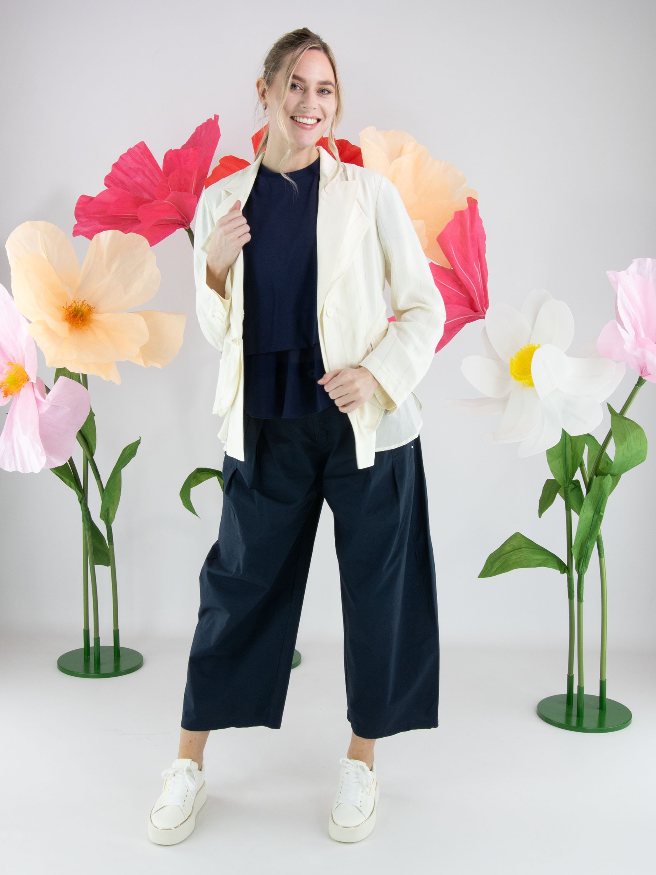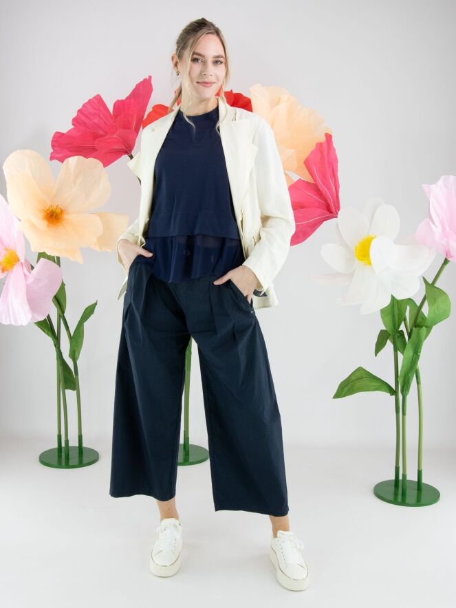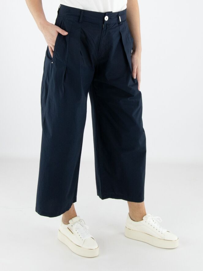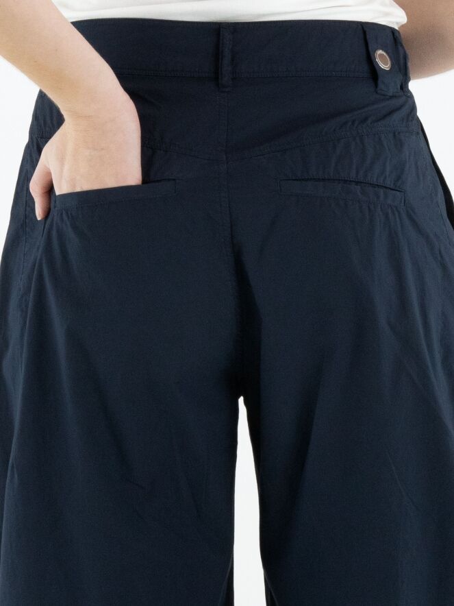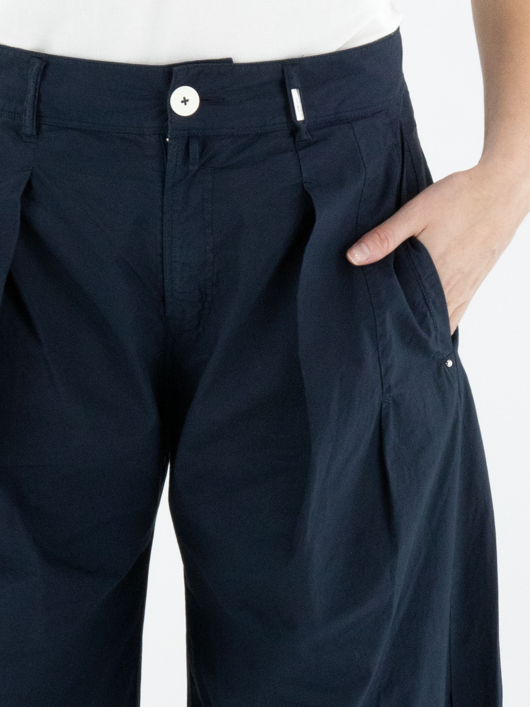 Pantalon de High en coton estival de couleur bleu marine. Des plis partant de la taille offrent une allure élégante et légère. Doté de poches latérales, ce pantalon de créateur exclusif peut être lavé à 30 degrés.